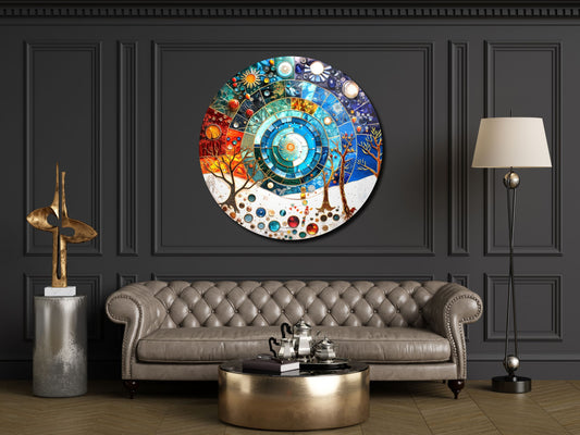 Dört Mevsim Spiral Evren Cam Tablo – Dekoratif Soyut Duvar Tablosu