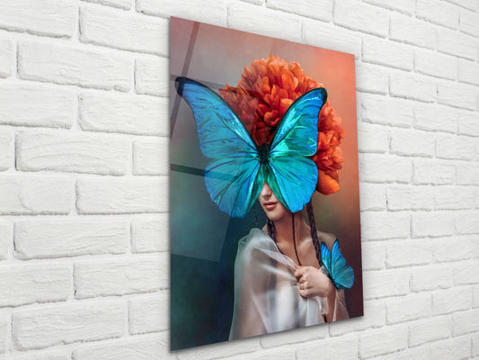Mavi Kelebekli Kadın Portresi-Dekoratif Tablo - Modern Ev ve Ofis Dekoru
