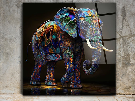 Vitray Desenli Renkli Fil Cam Tablo-Dekoratif Tablo - Modern Ev ve Ofis Dekoru