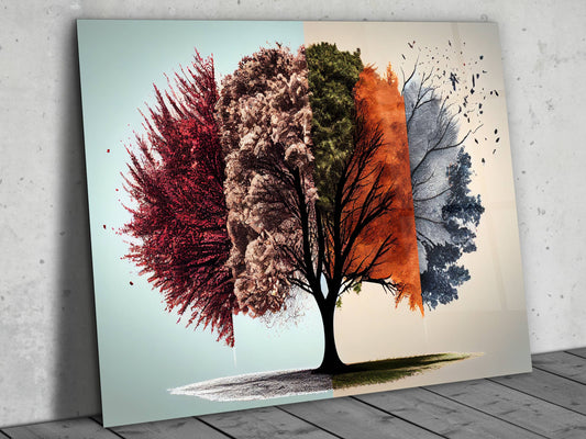 4 Mevsim Ağaç Cam Tablo - Dekoratif Tablo
