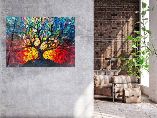Hayat Ağacı Vitray Cam Tablo - Ağaç Duvar Tablosu - Ev Ofis Duvar Dekoru