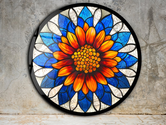 Çiçek Cam Tablo – Vitray Desen Tablo - Yuvarlak Cam Duvar Dekoru
