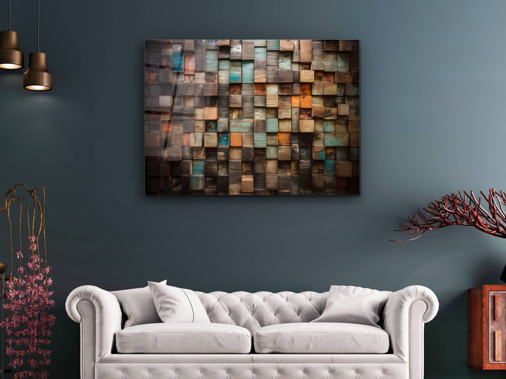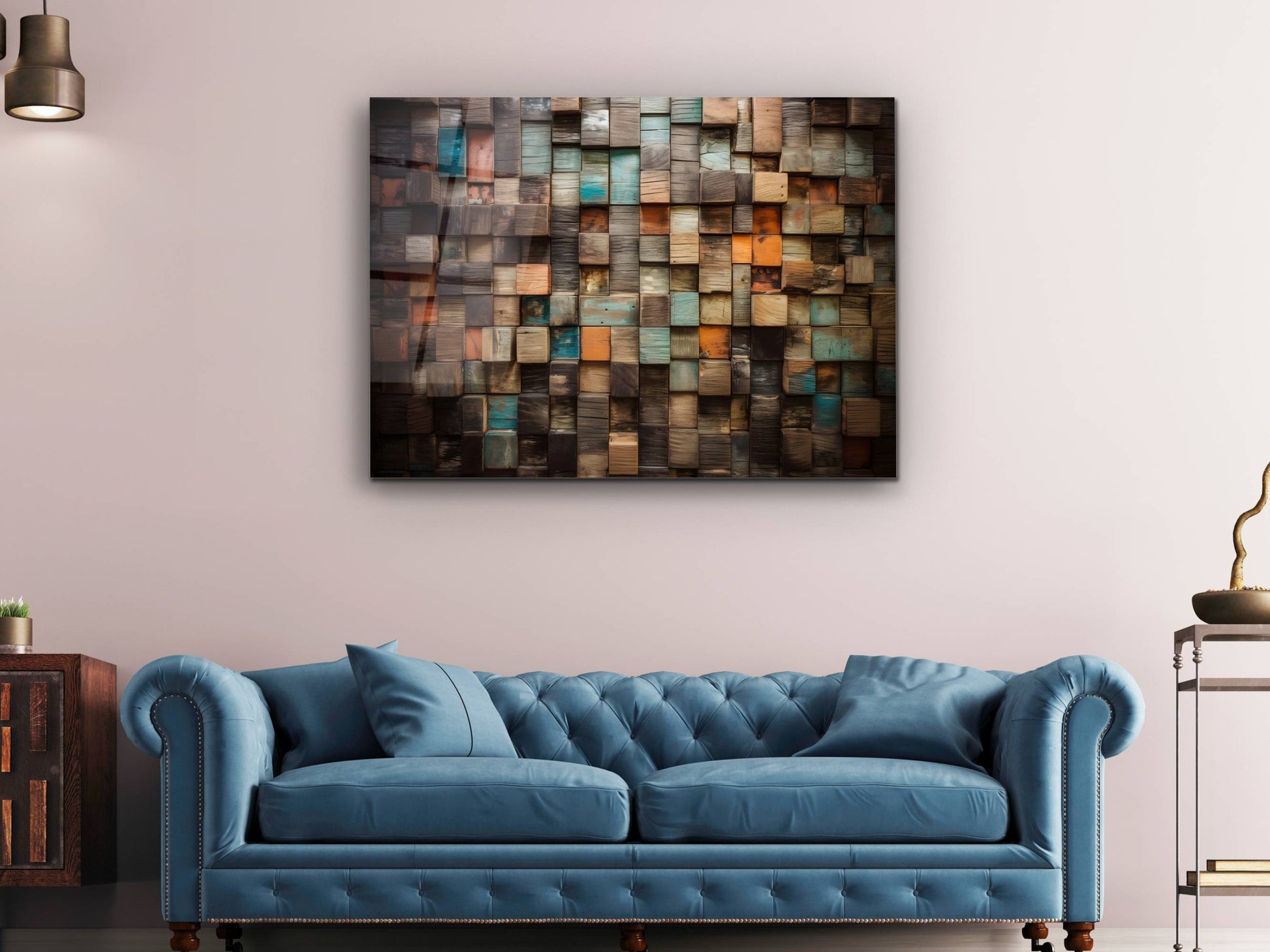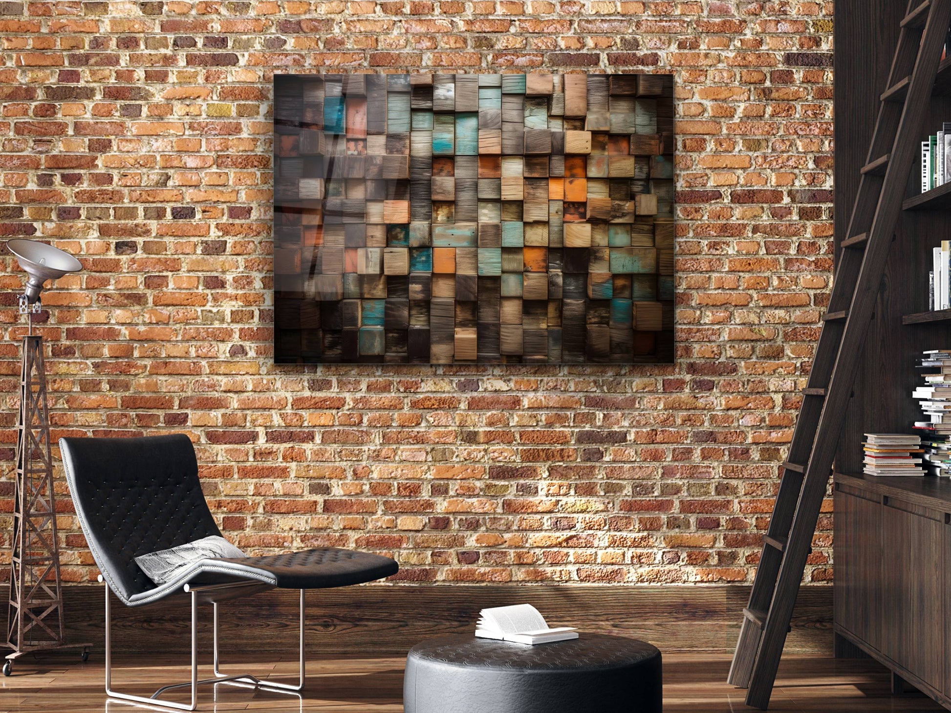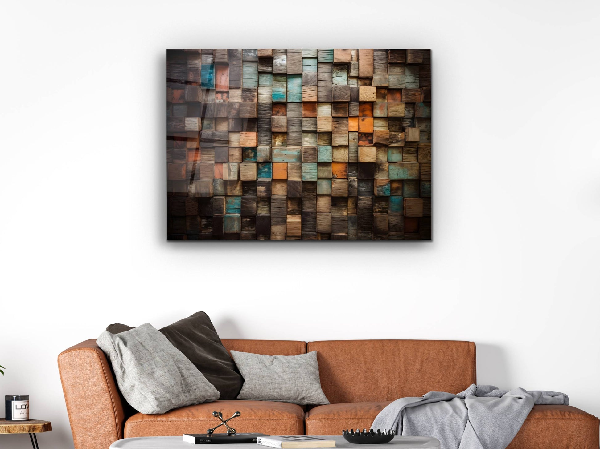 3D Efektli Renkli Ahşap Desenli Cam Tablo - Modern Geometrik Duvar Dekoru