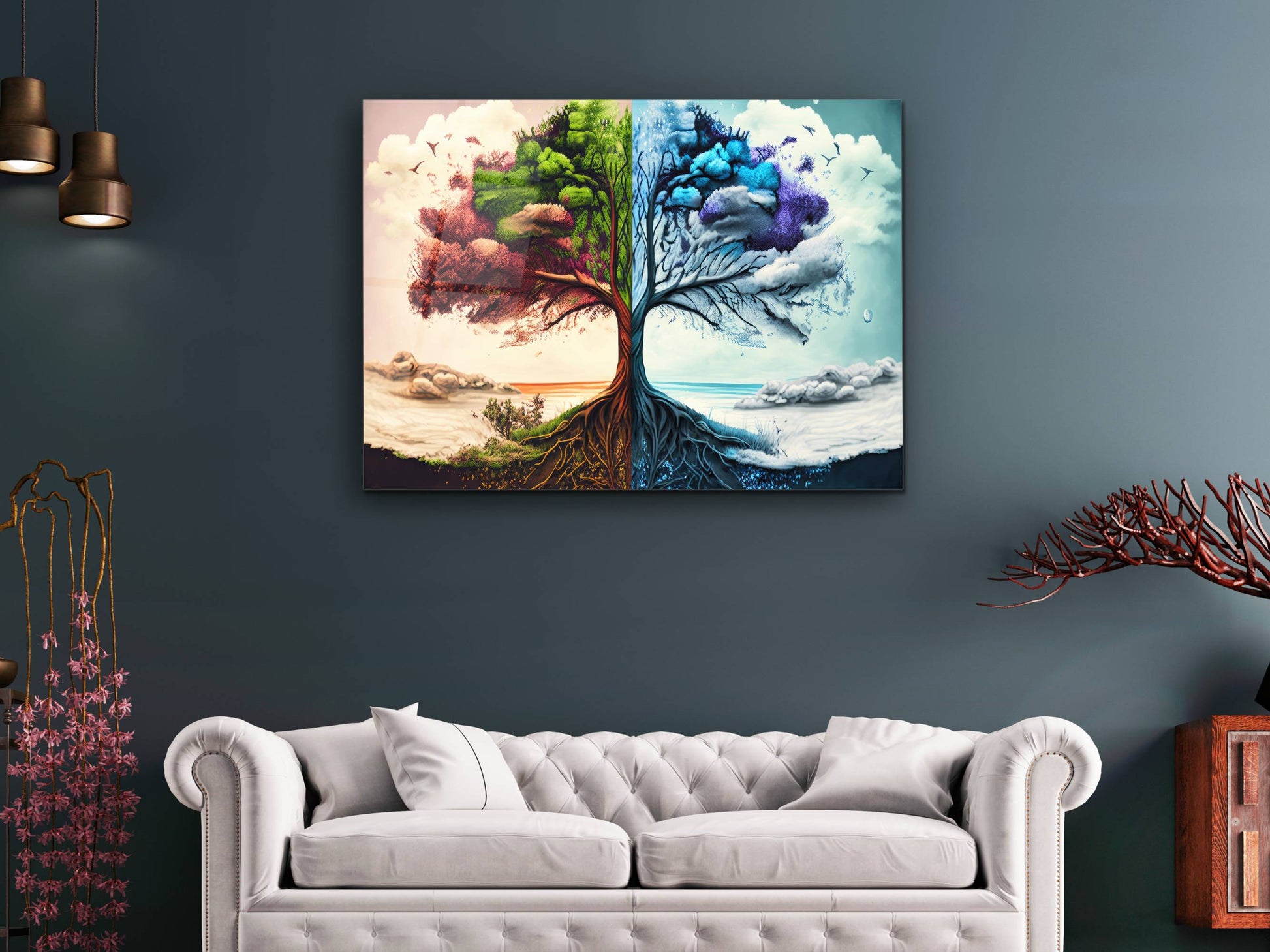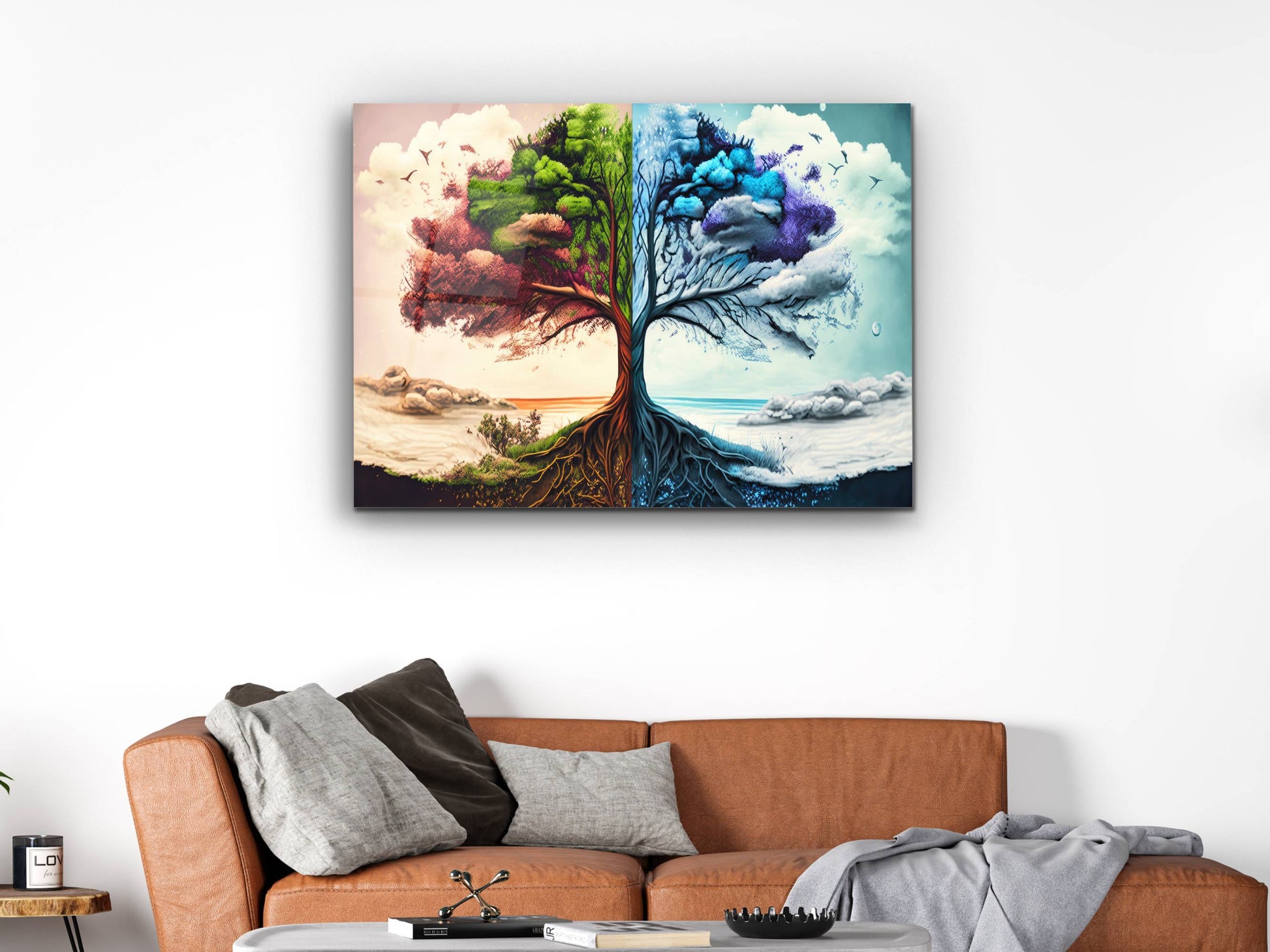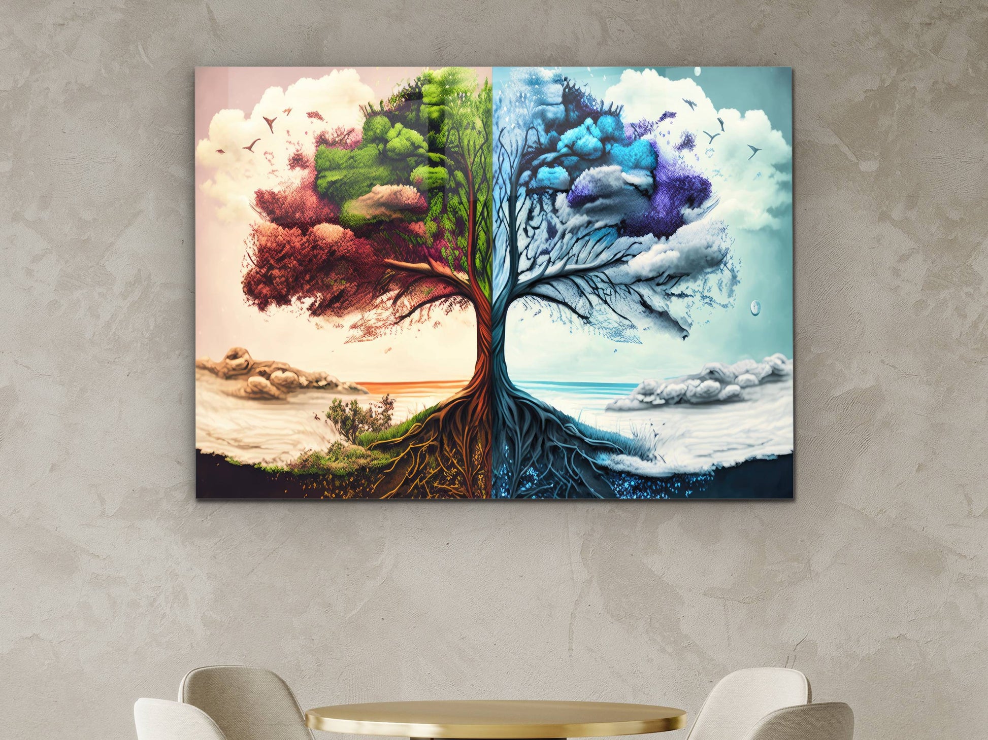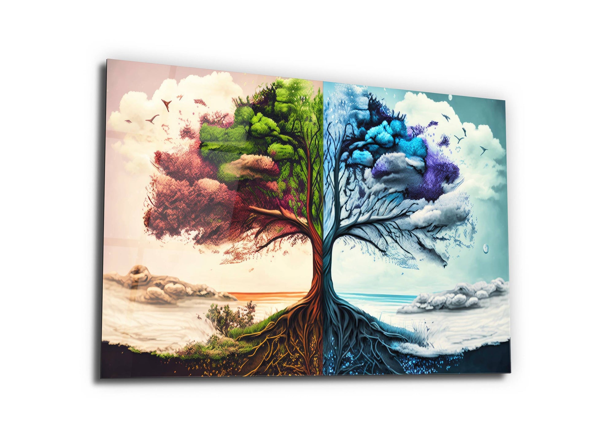 4 Mevsim Ağaç Cam Tablo - Dekoratif Tablo