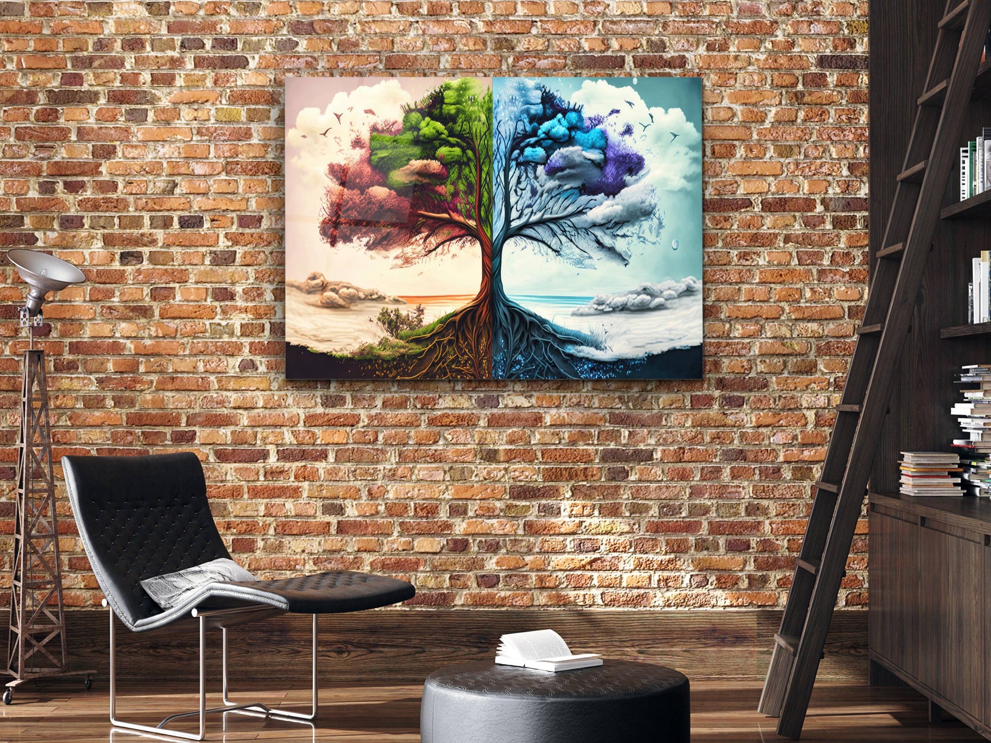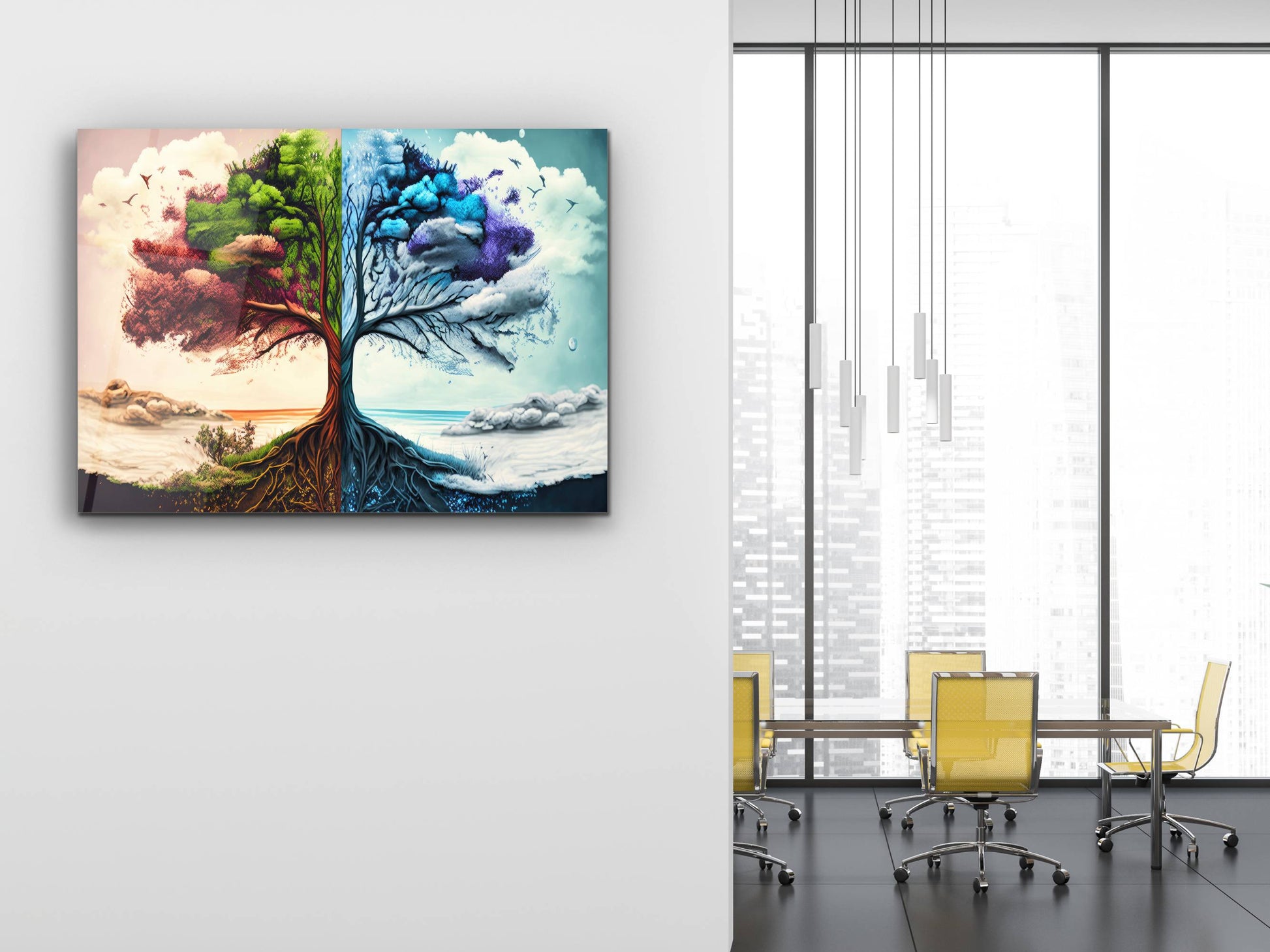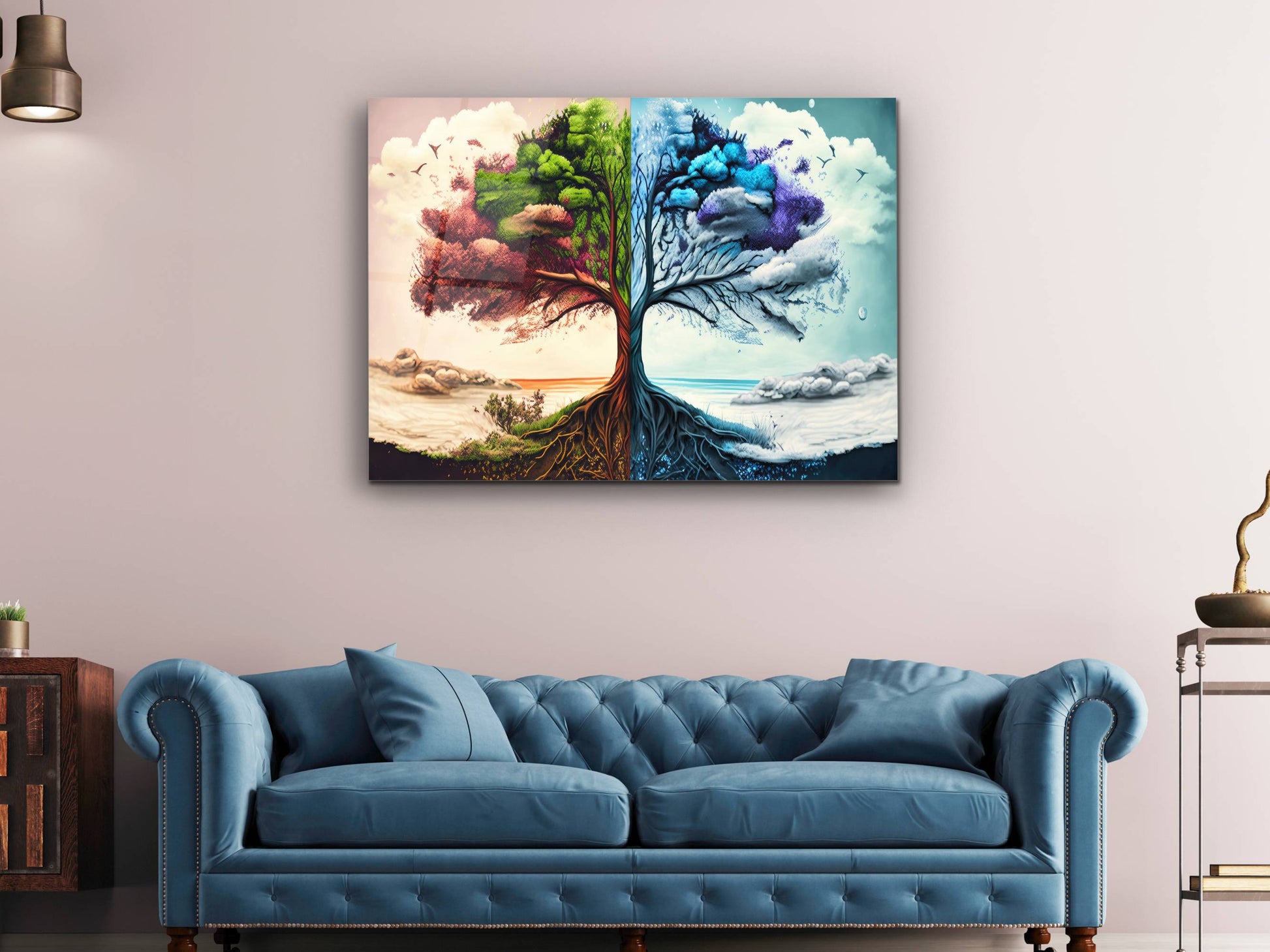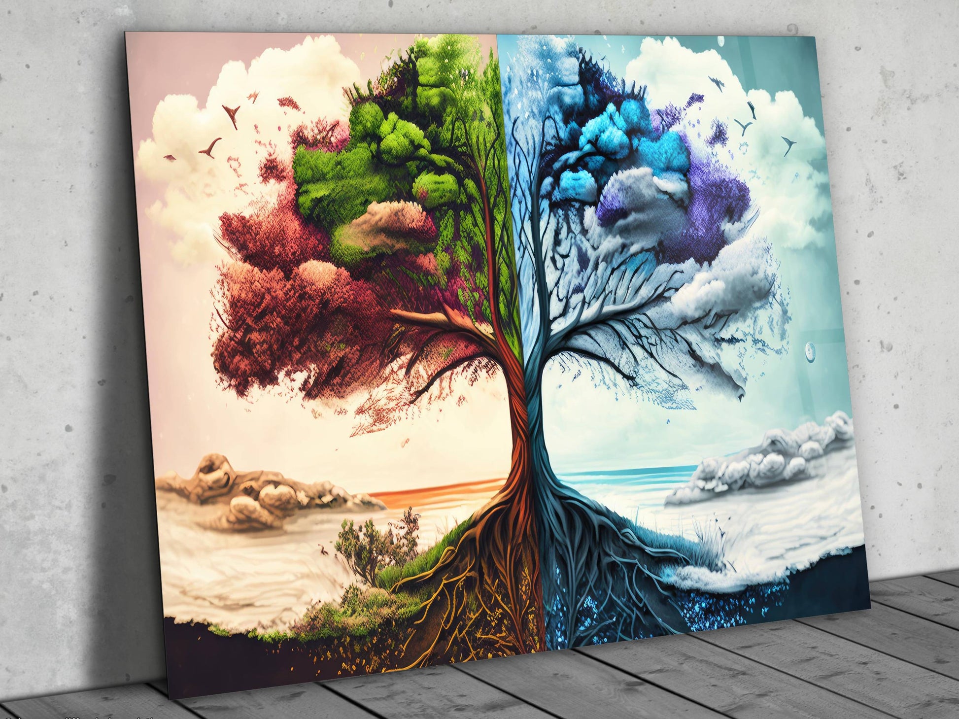 4 Mevsim Ağaç Cam Tablo - Dekoratif Tablo