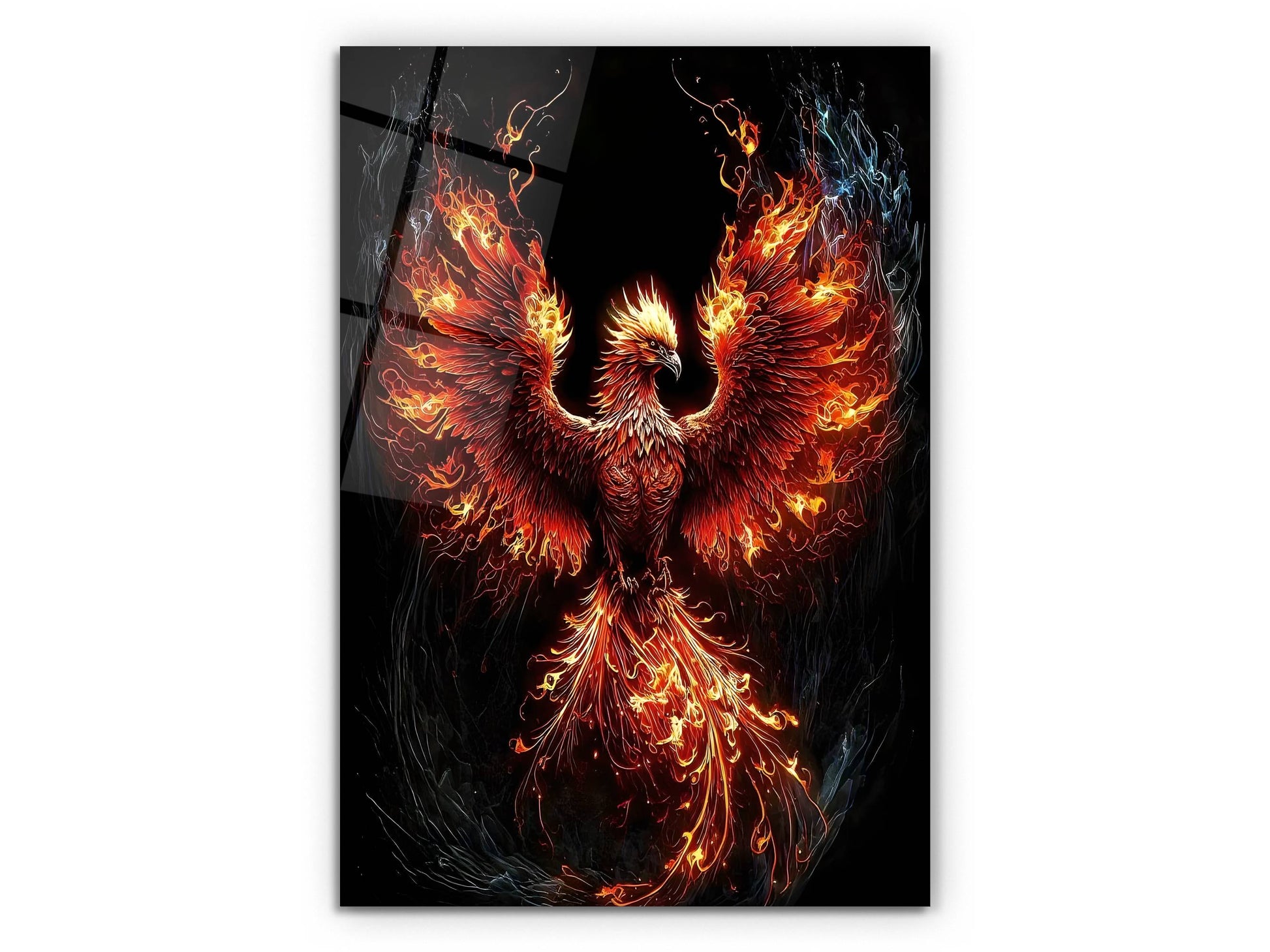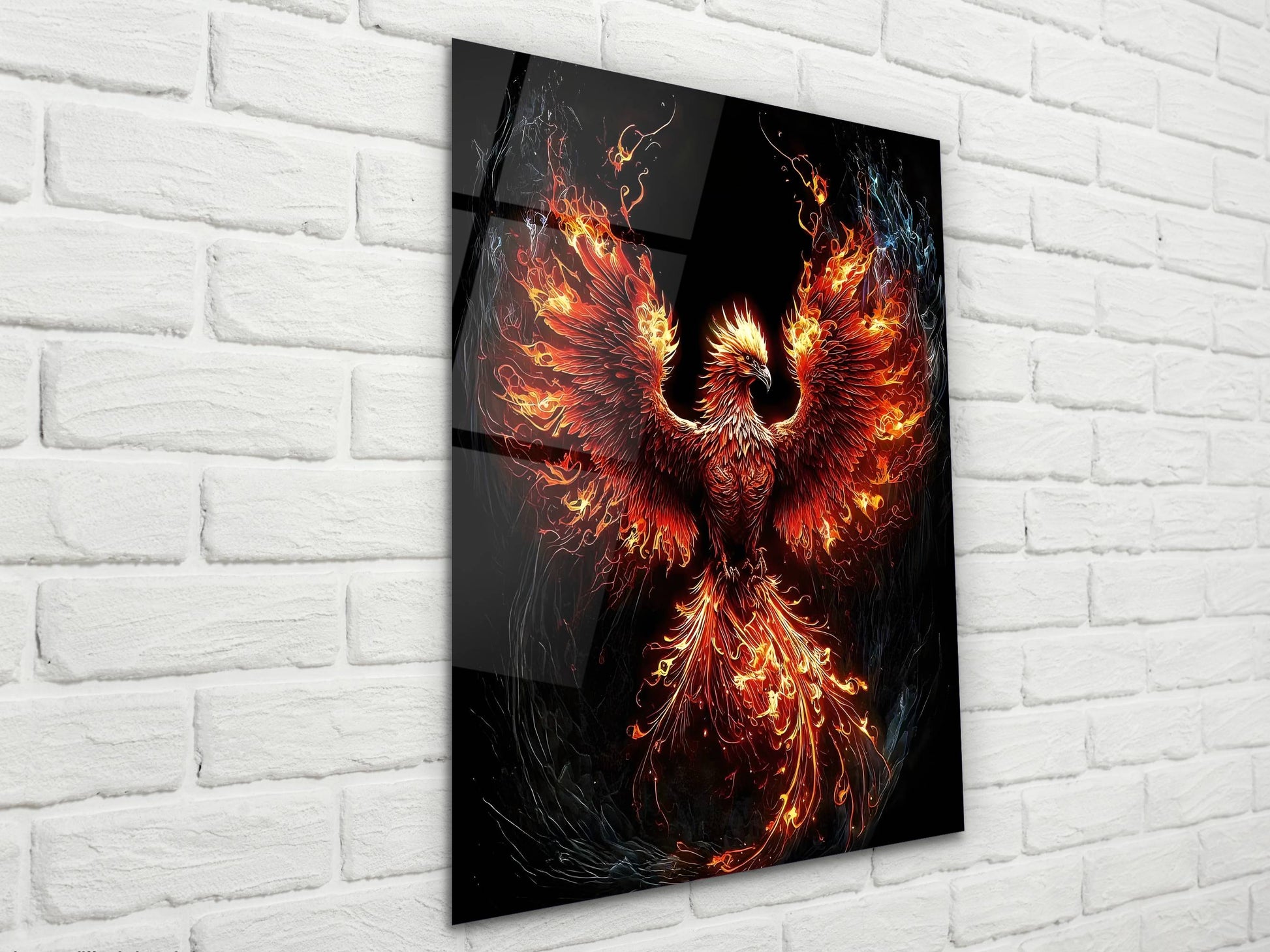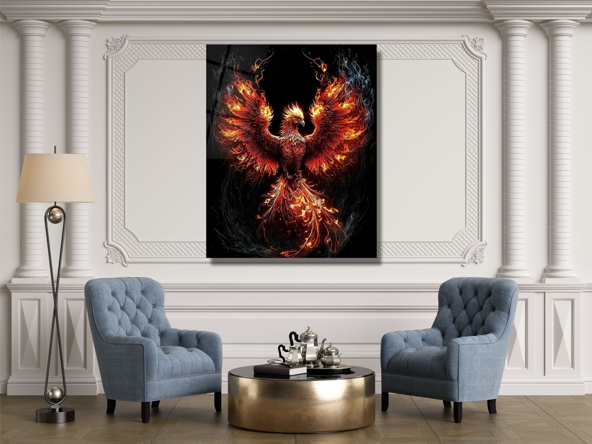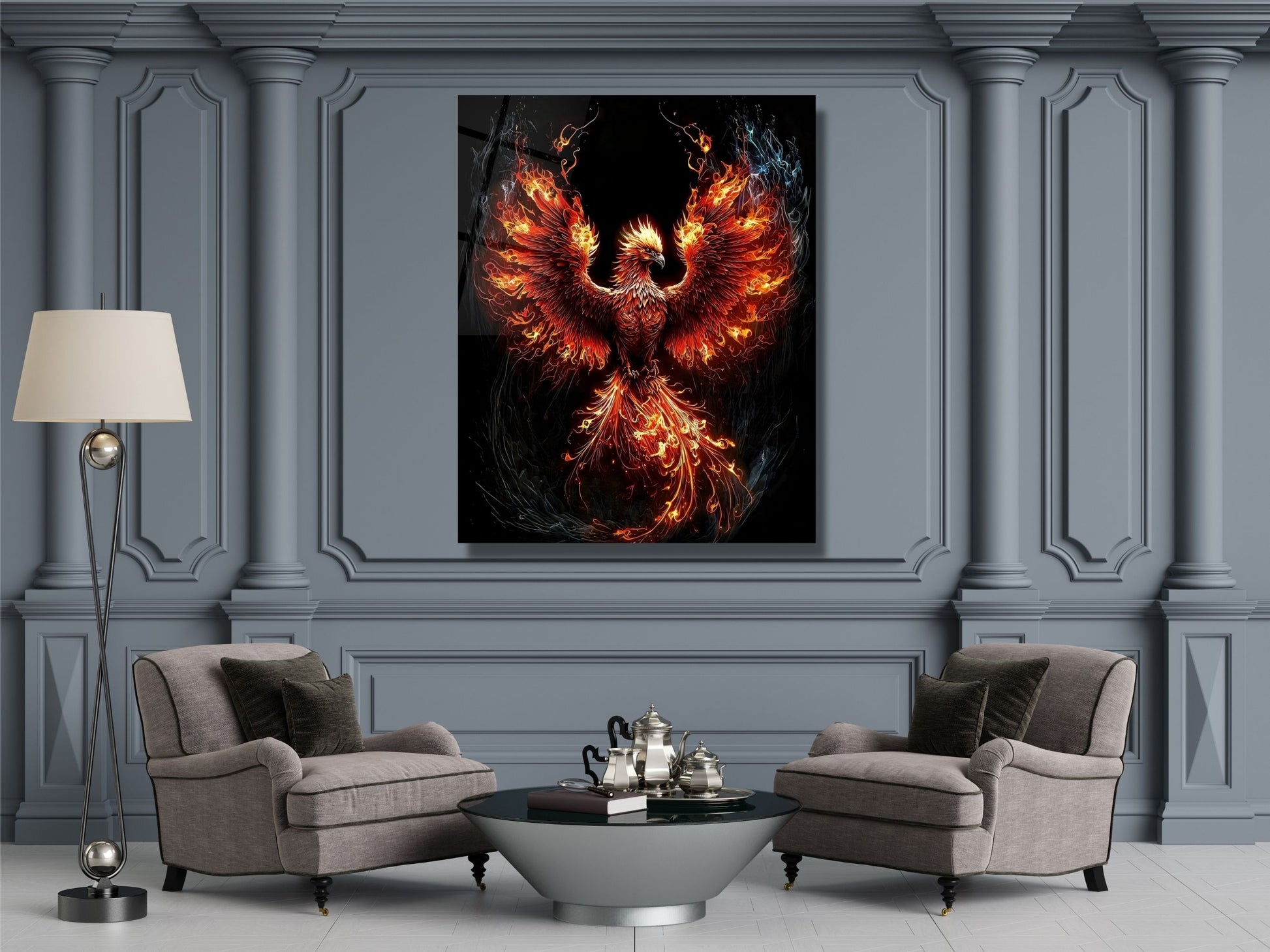 Anka Kuşu Cam Tablo - Ev ve Ofis Duvar Dekoru - Yeniden Doğuşun Sembolü