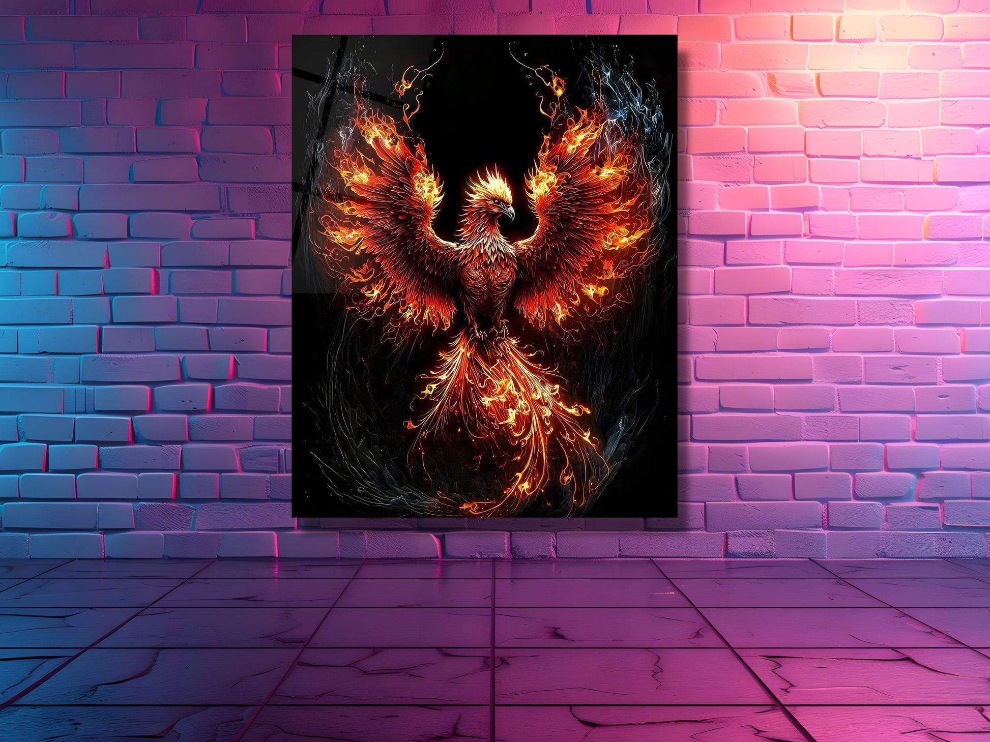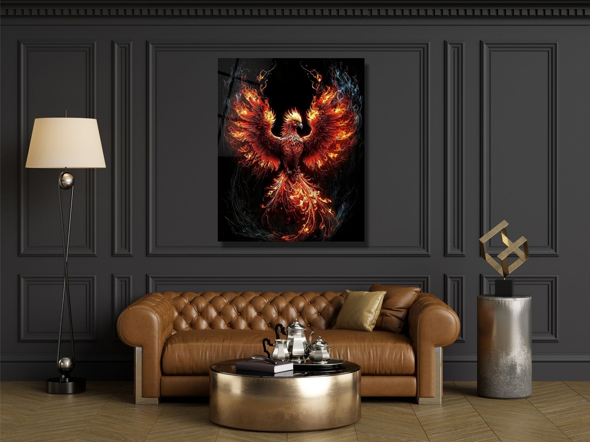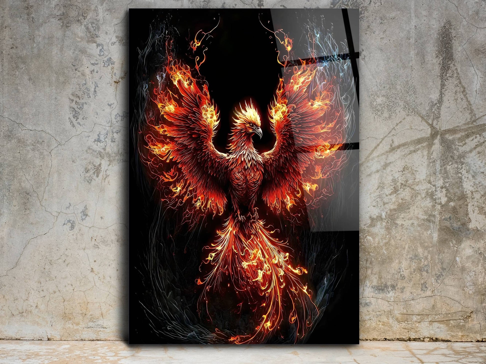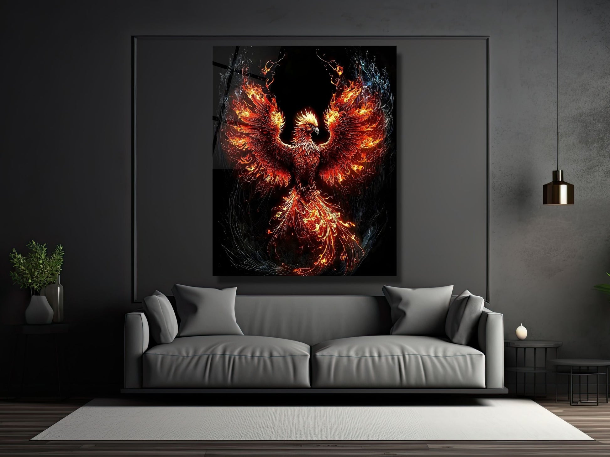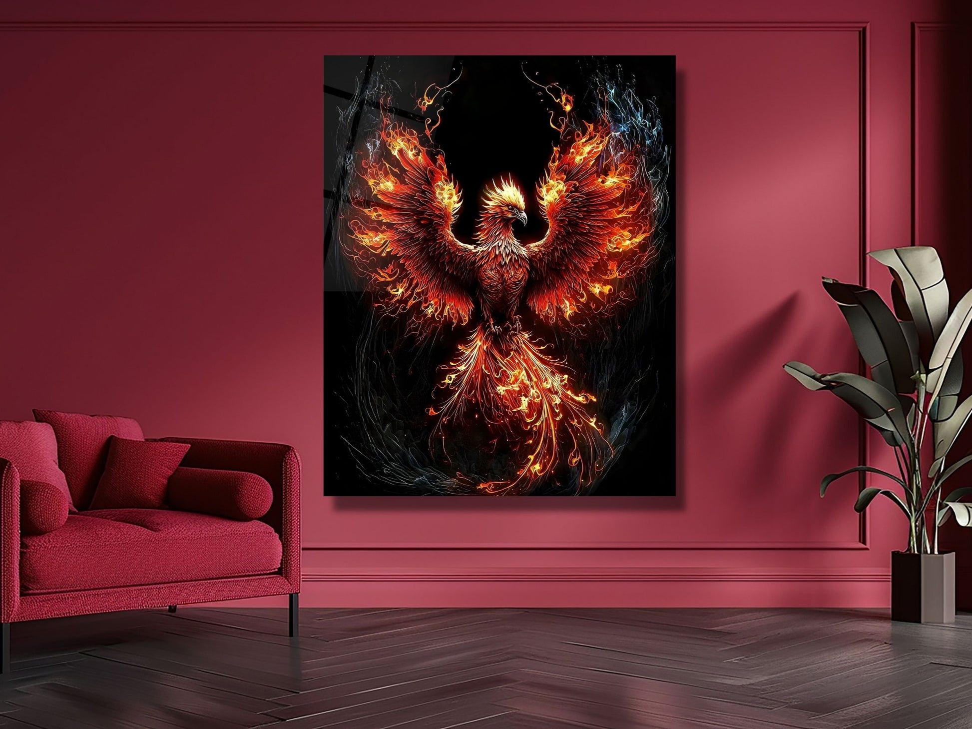 Anka Kuşu Cam Tablo - Ev ve Ofis Duvar Dekoru - Yeniden Doğuşun Sembolü
