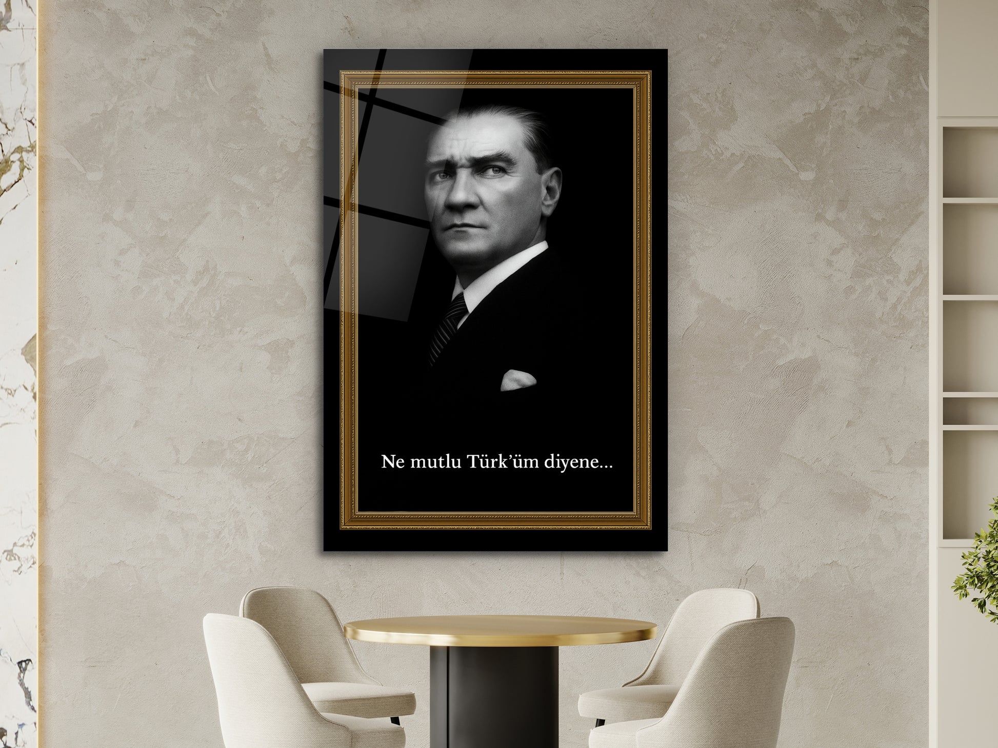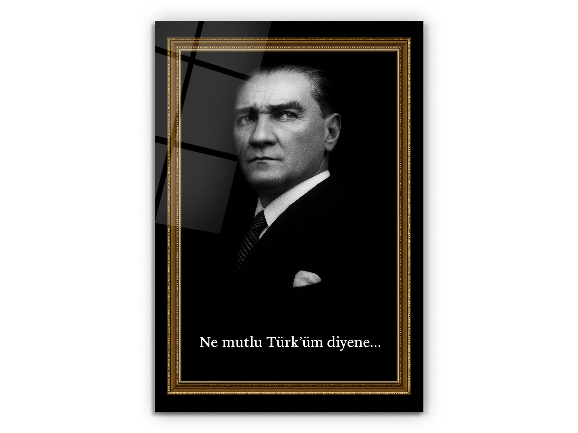 Atatürk Portresi Cam Tablo - Ne Mutlu Türk'üm Diyene Atatürk Tablosu - Ev ve Ofis Dekoru