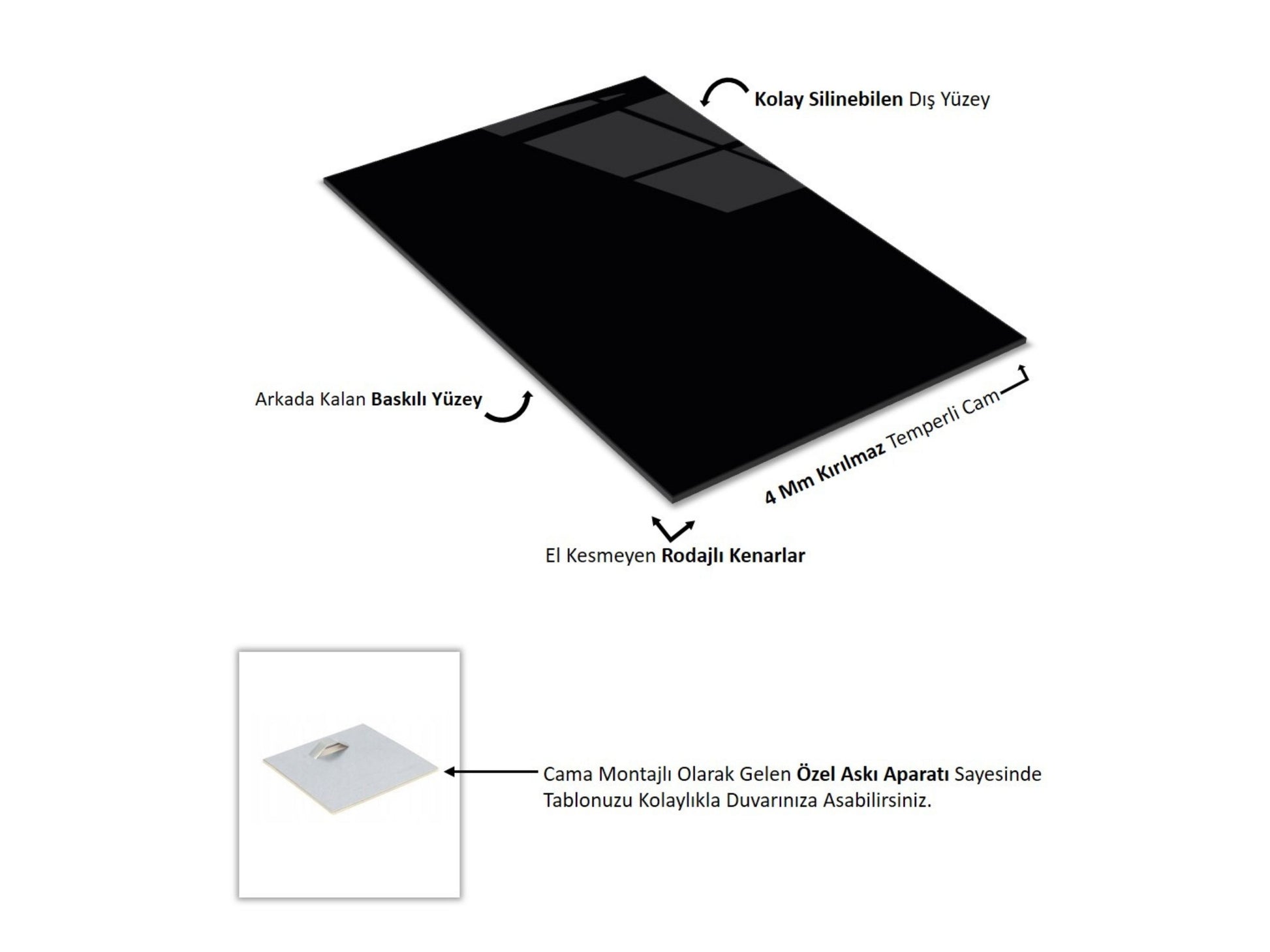 - Kırılmaya ve çizilmeye karşı dayanıklı temperli cam
