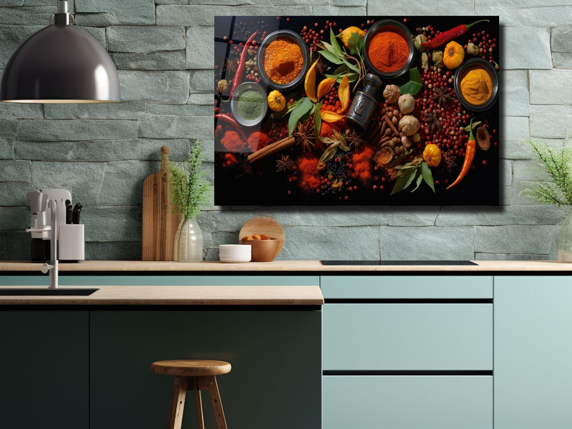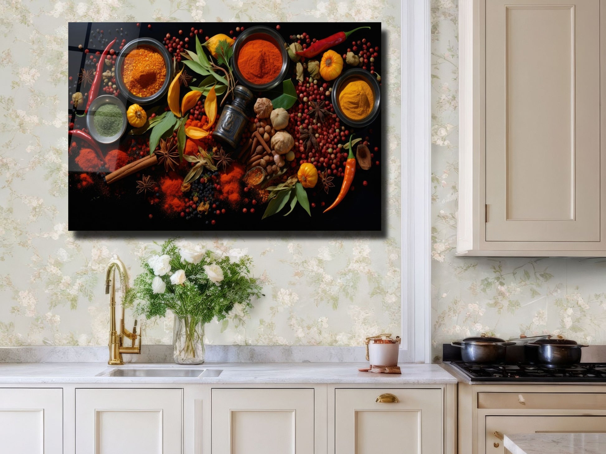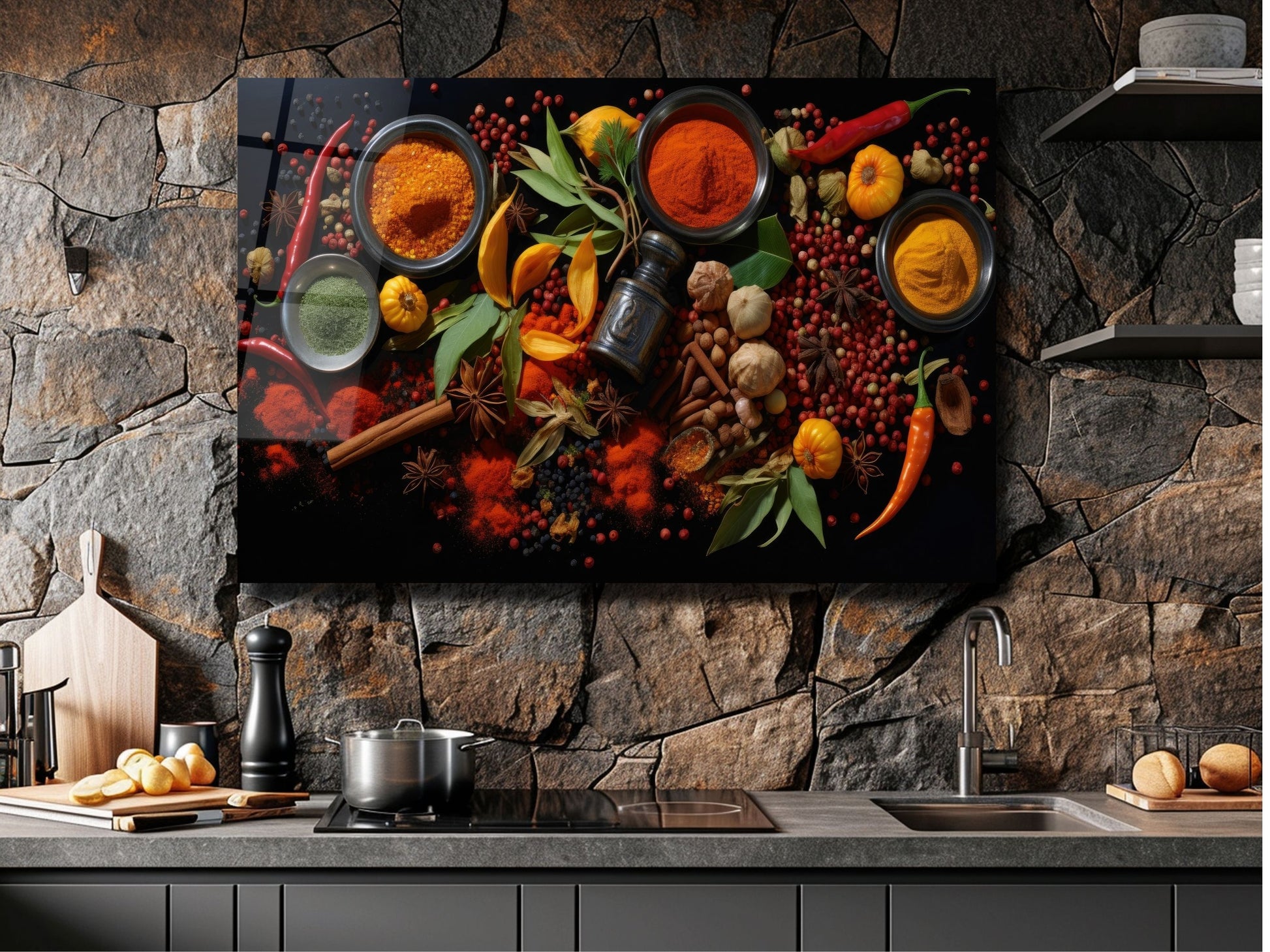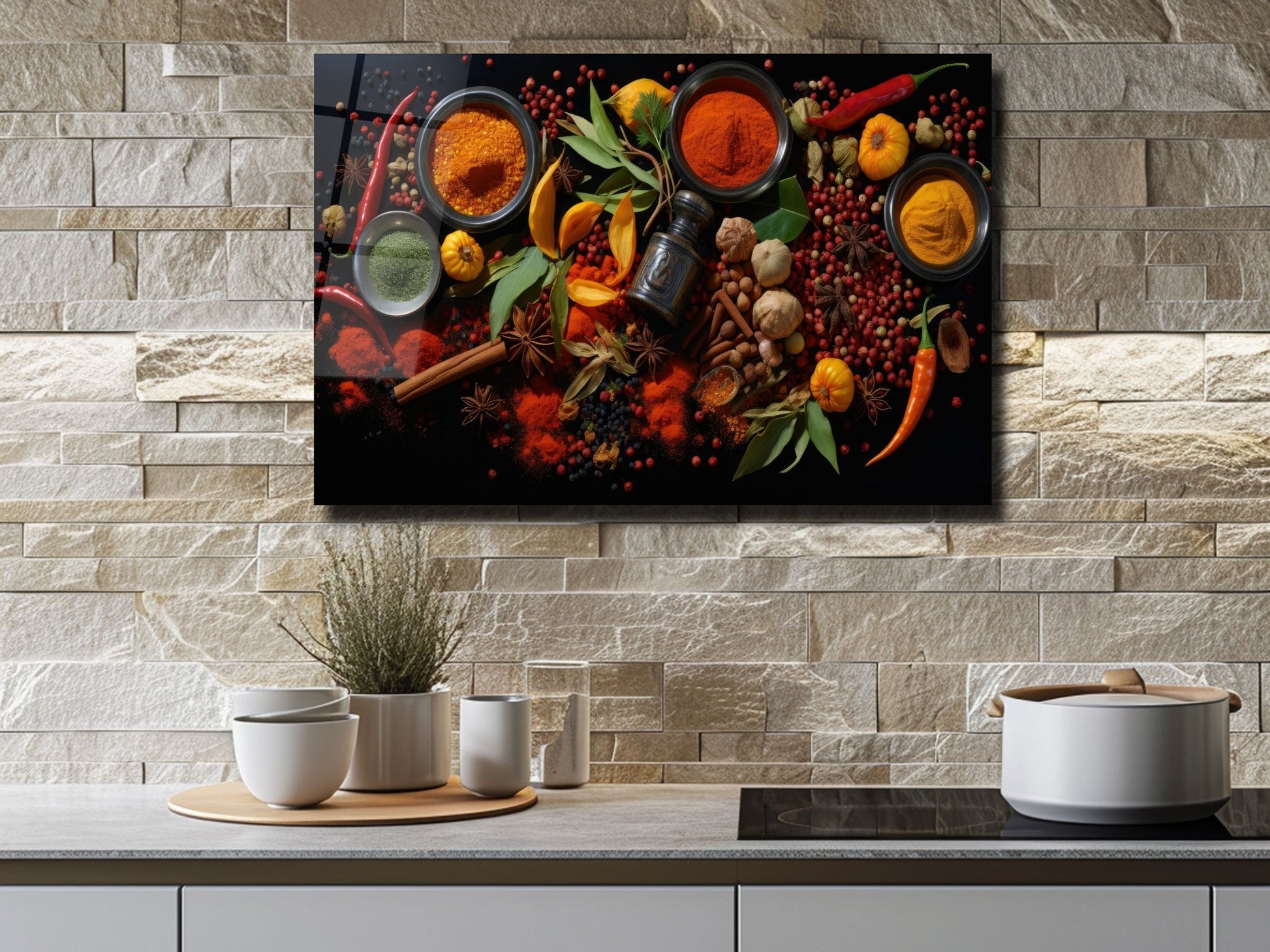 Baharat Desen Cam Tablo - Mutfak Dekoratif Tablo