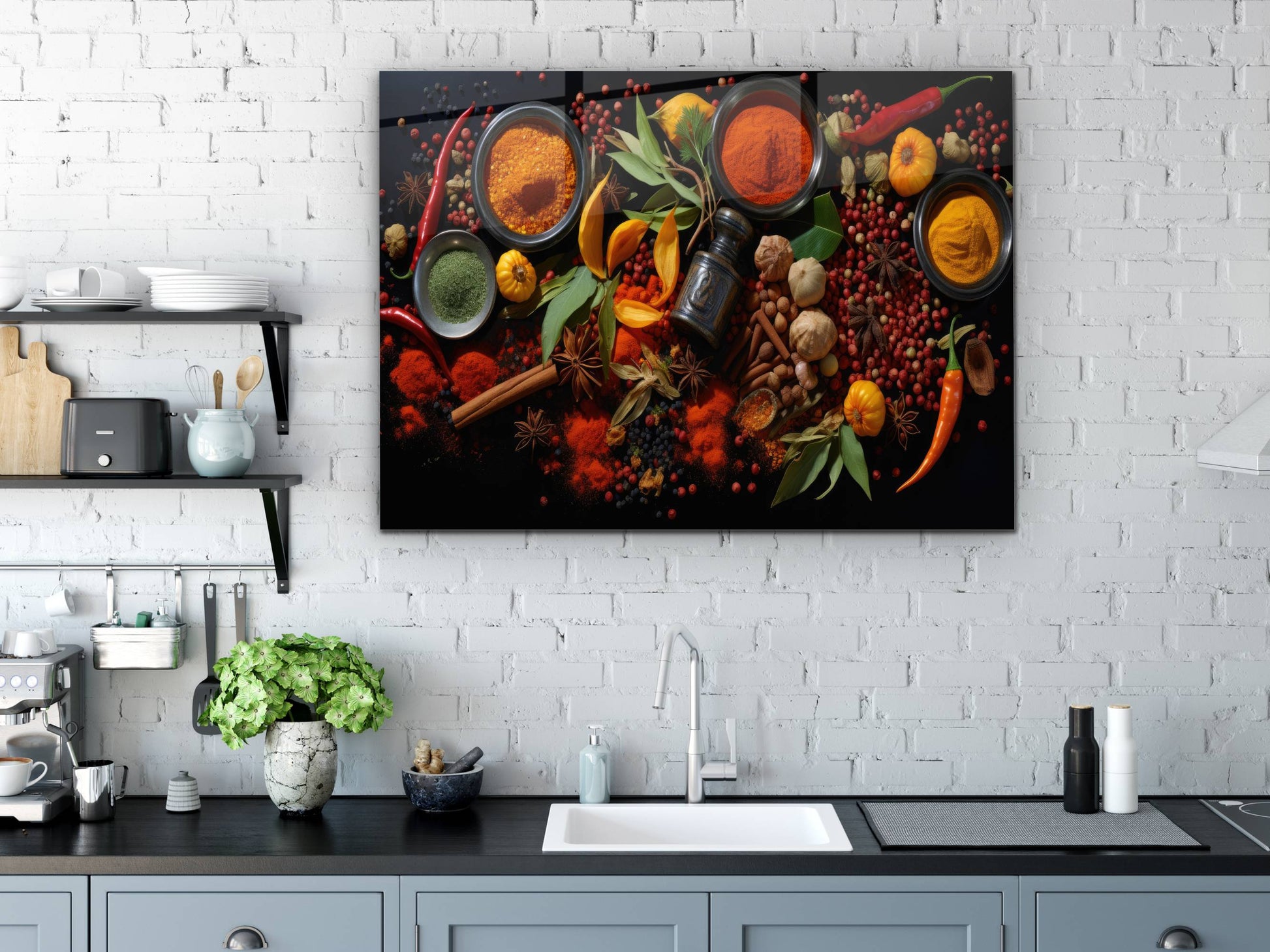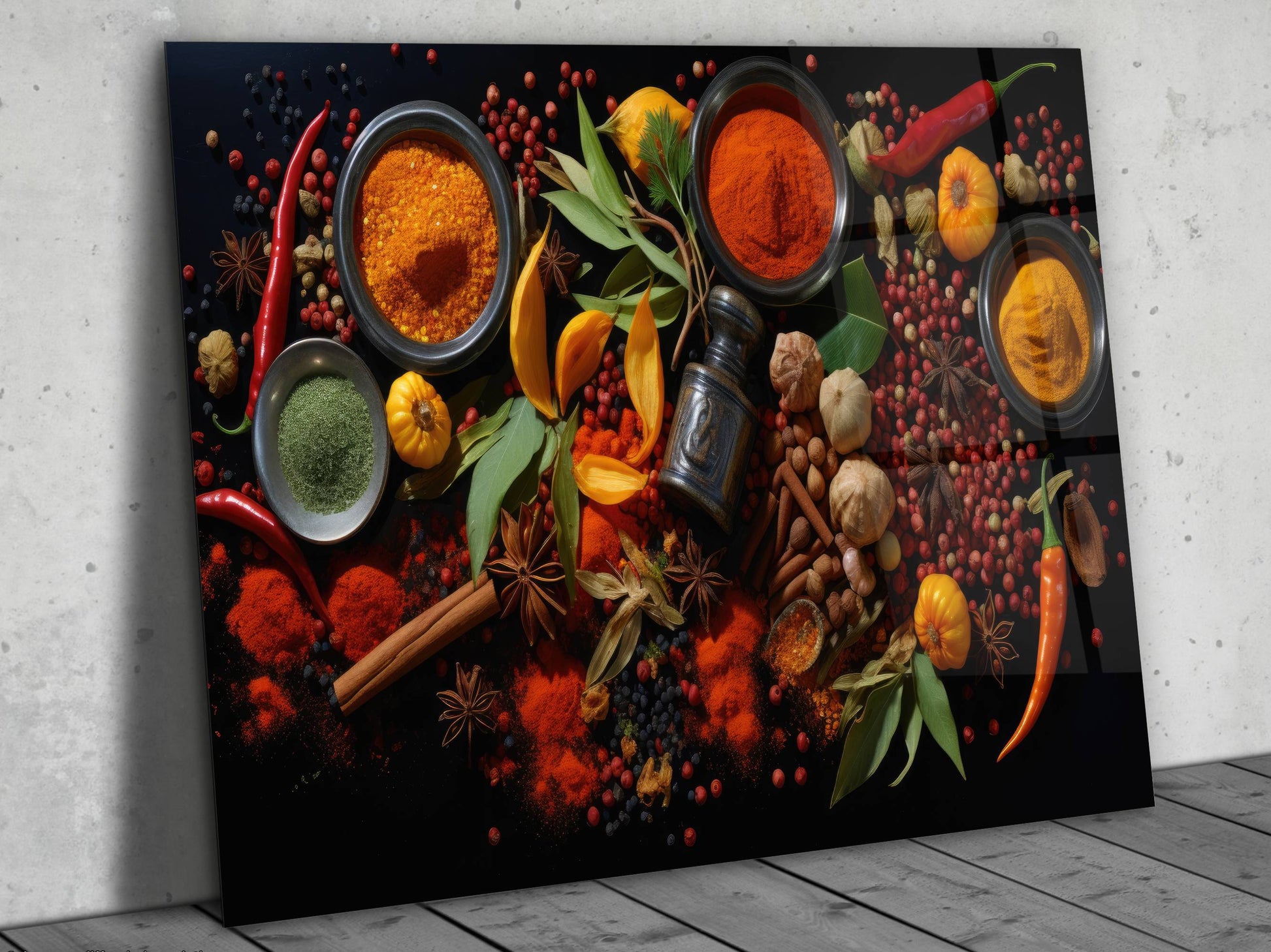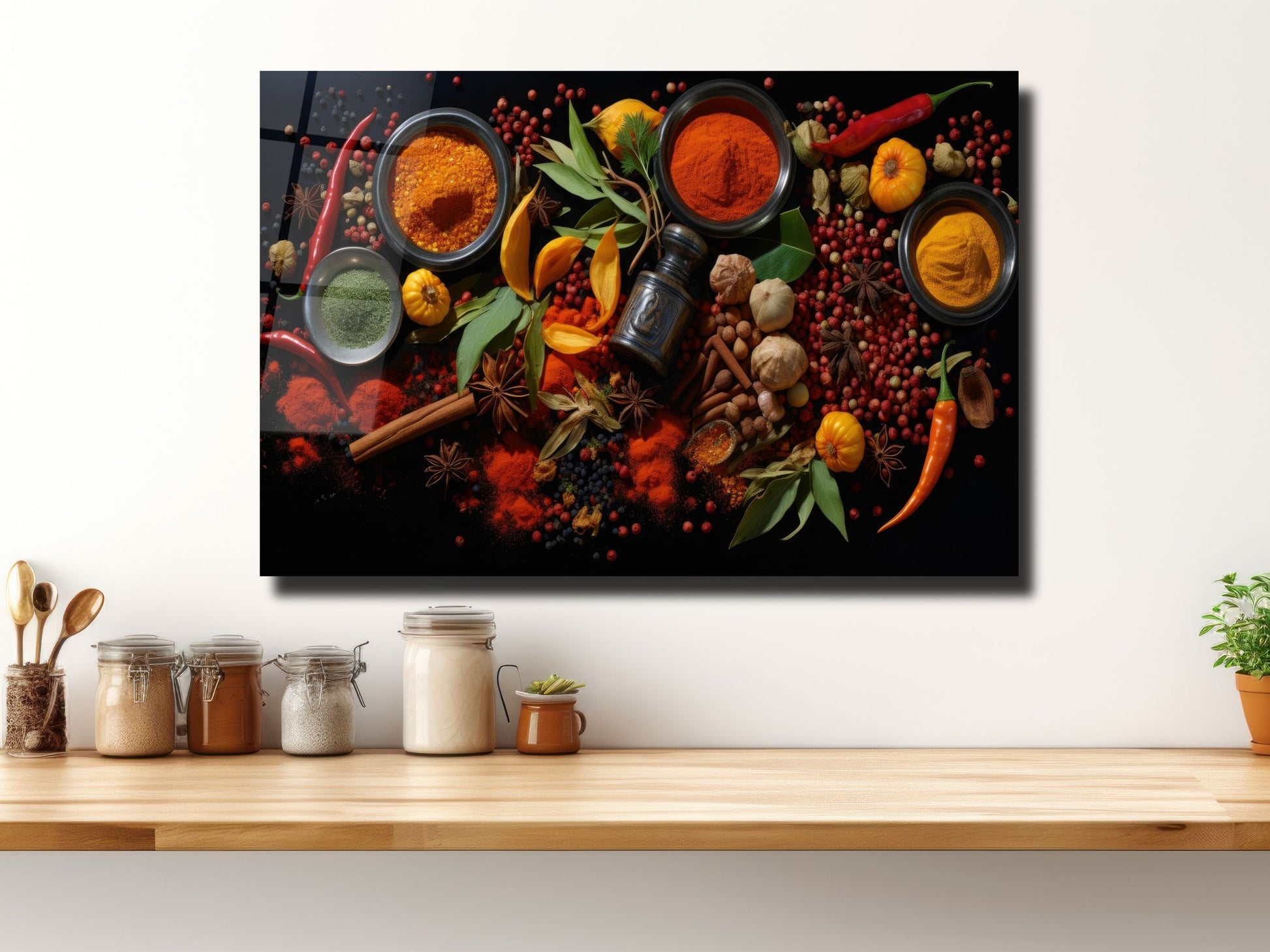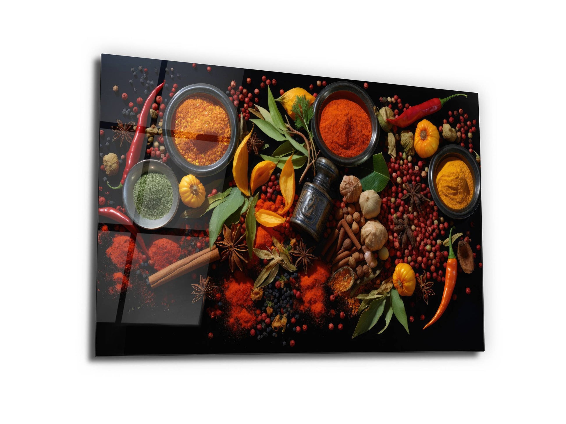 Baharat Desen Cam Tablo - Mutfak Dekoratif Tablo