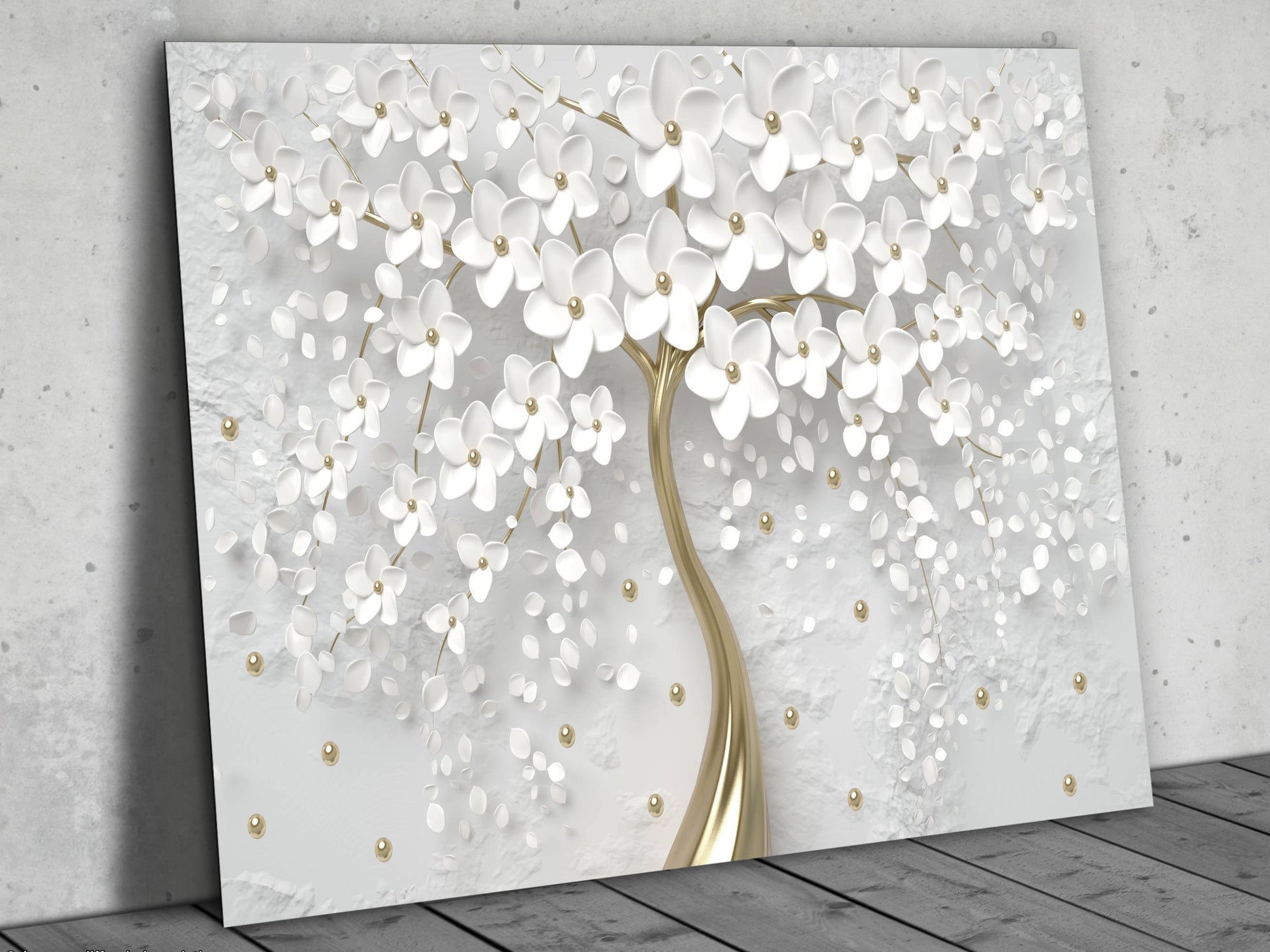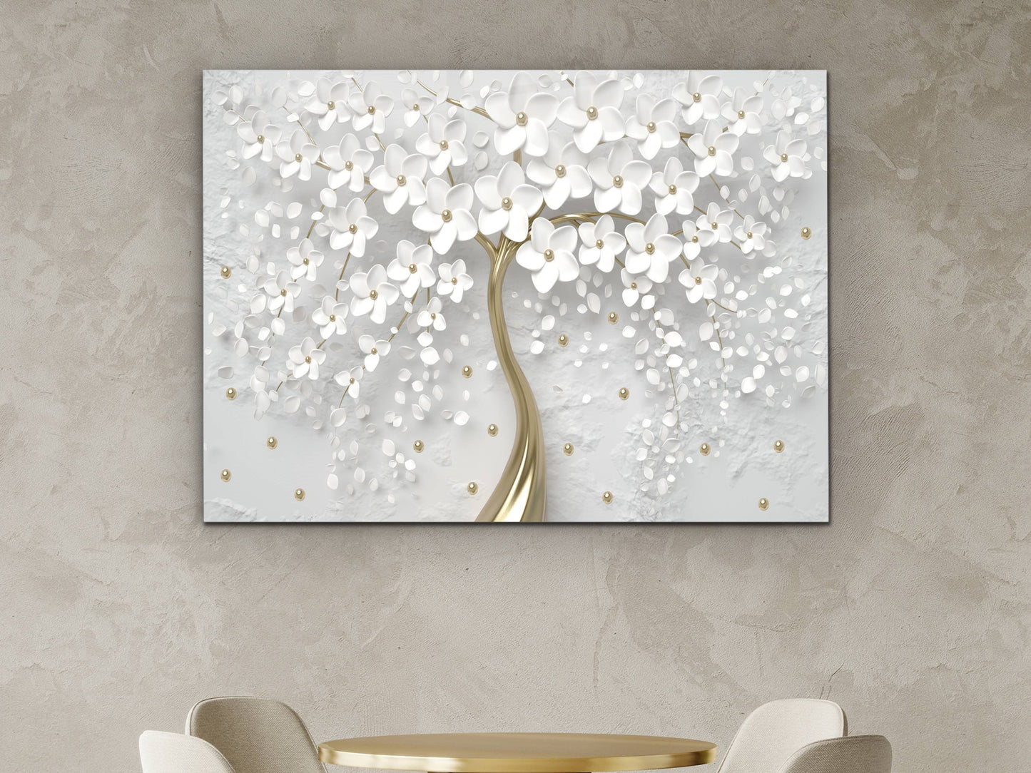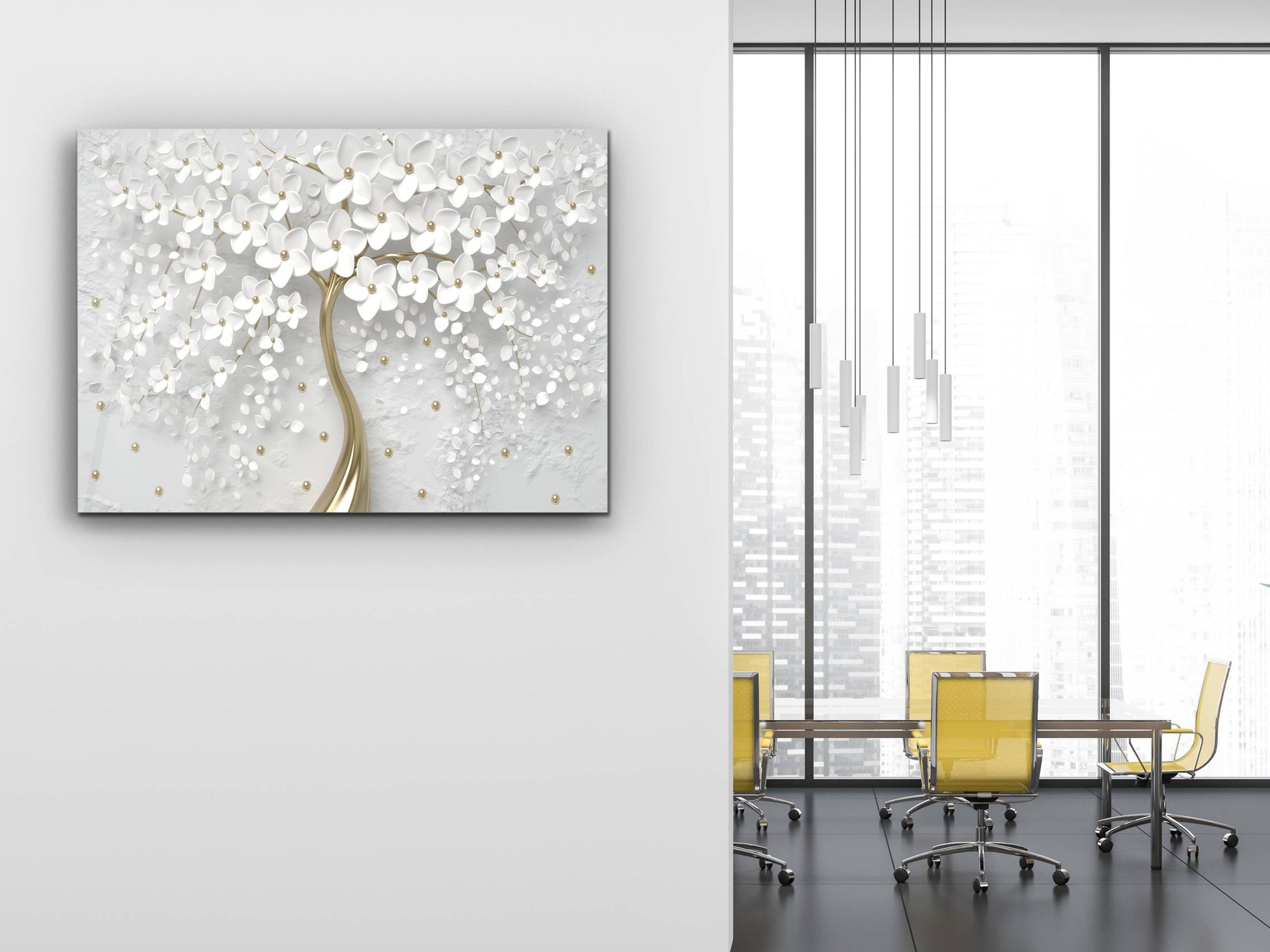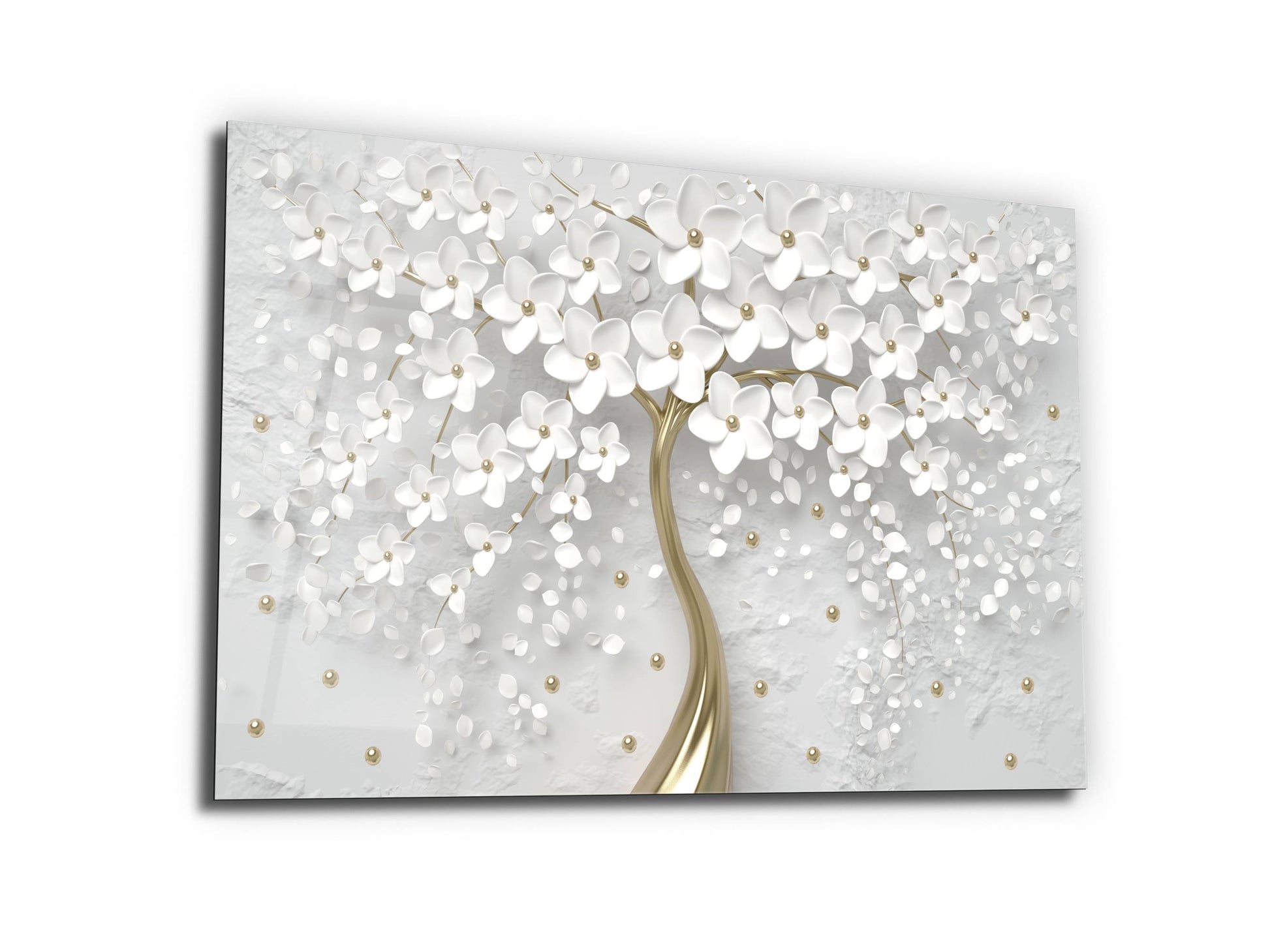 Beyaz Soyut Ağaç Cam Tablo - Dekoratif Tablo