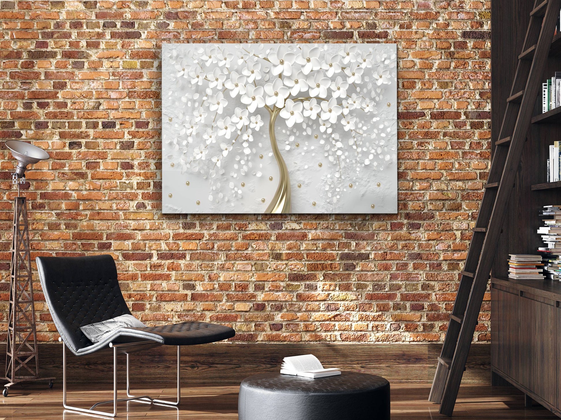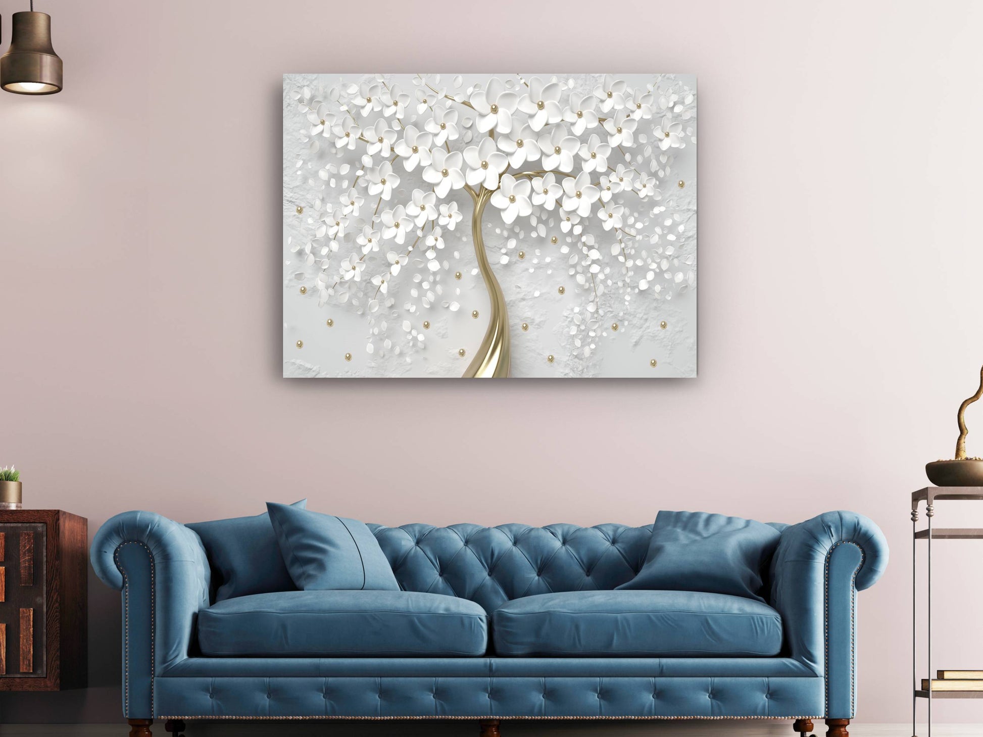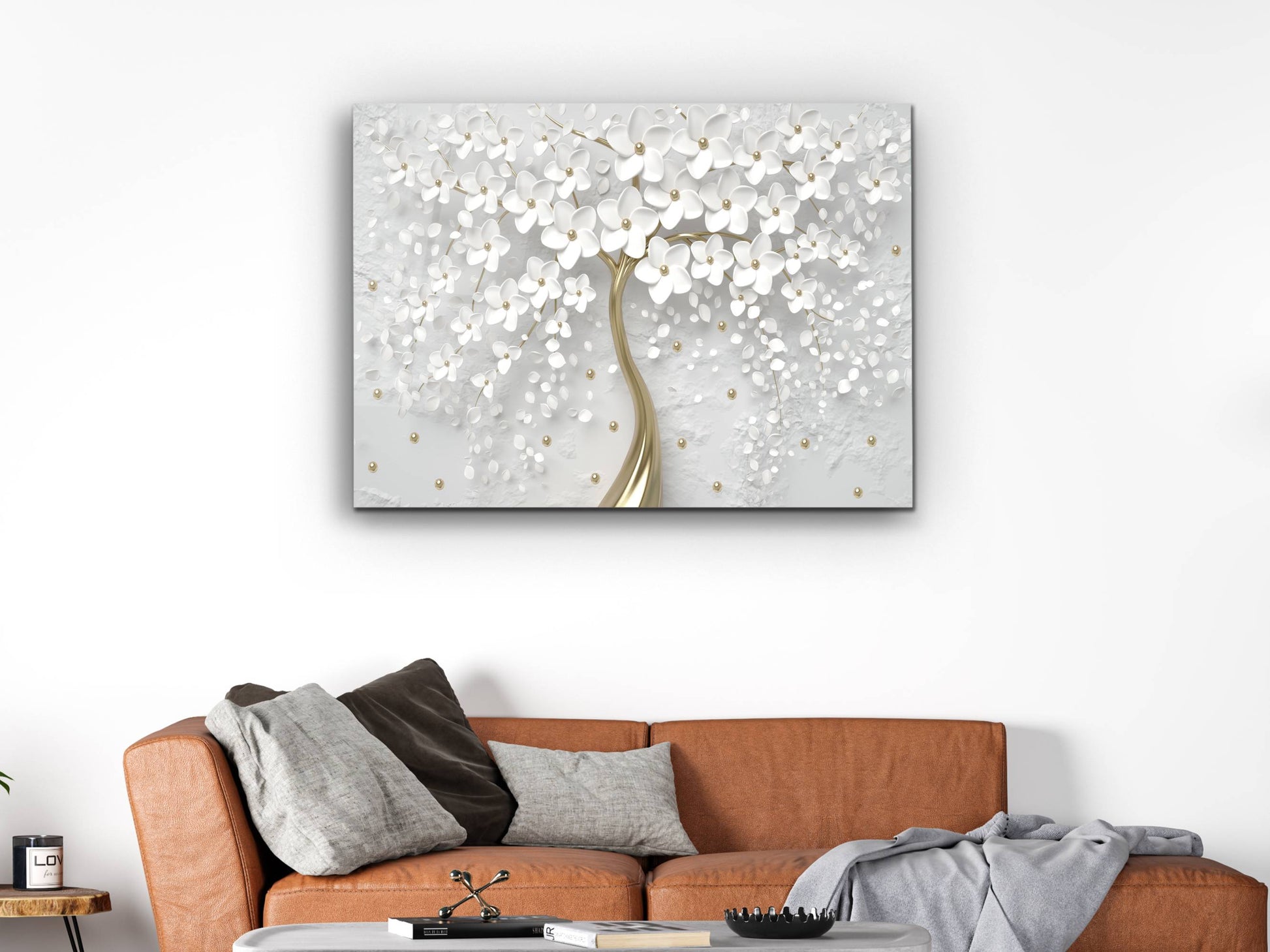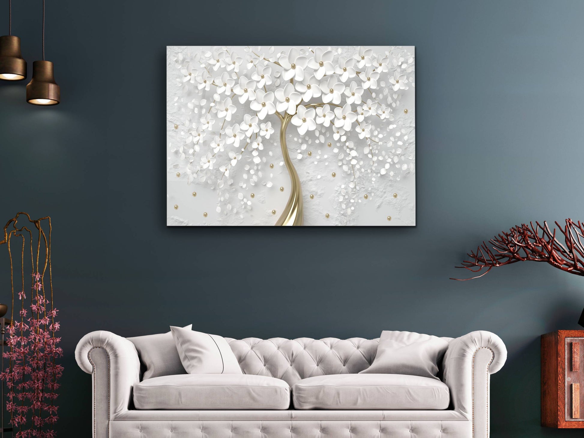 Beyaz Soyut Ağaç Cam Tablo - Dekoratif Tablo