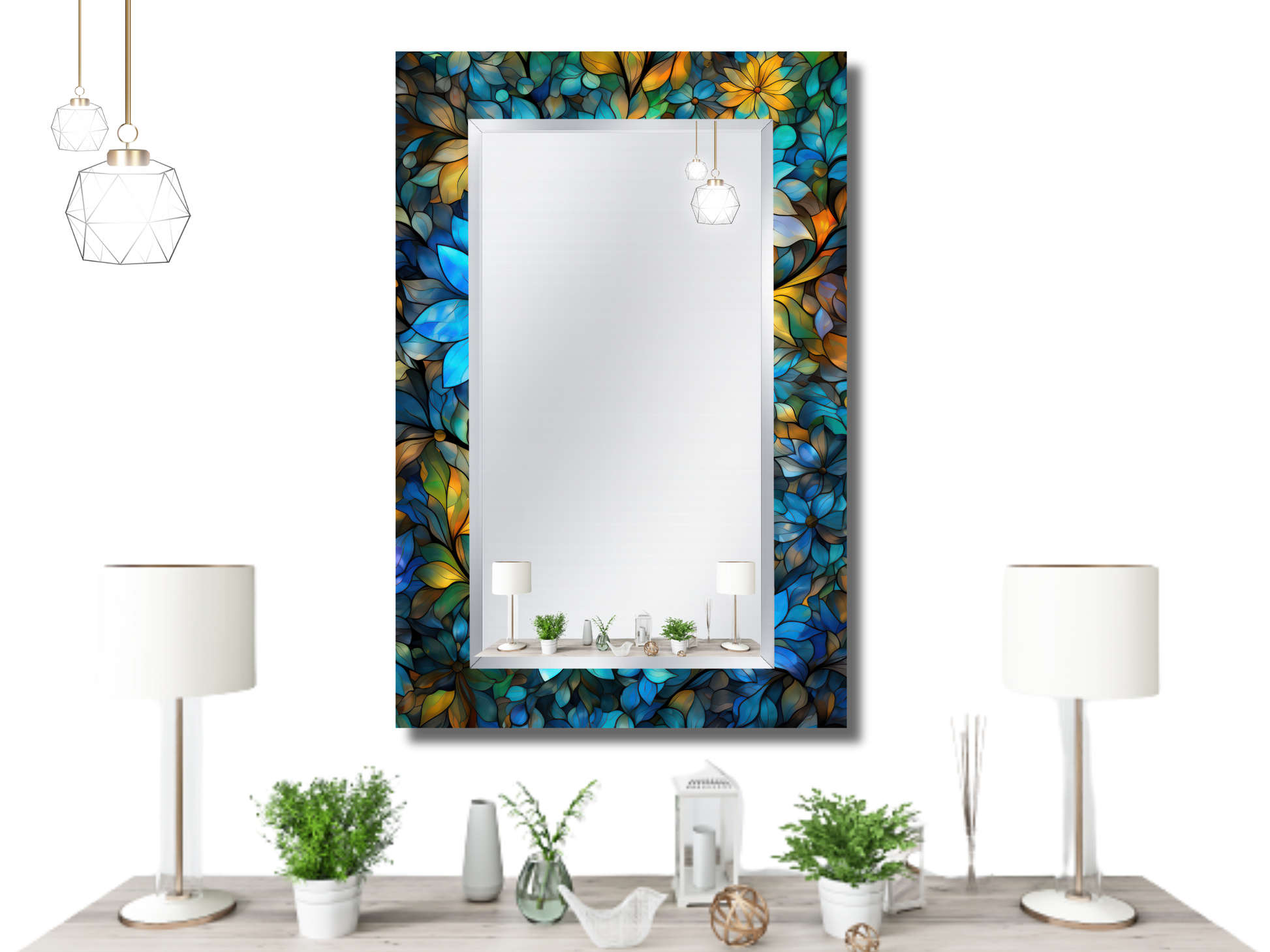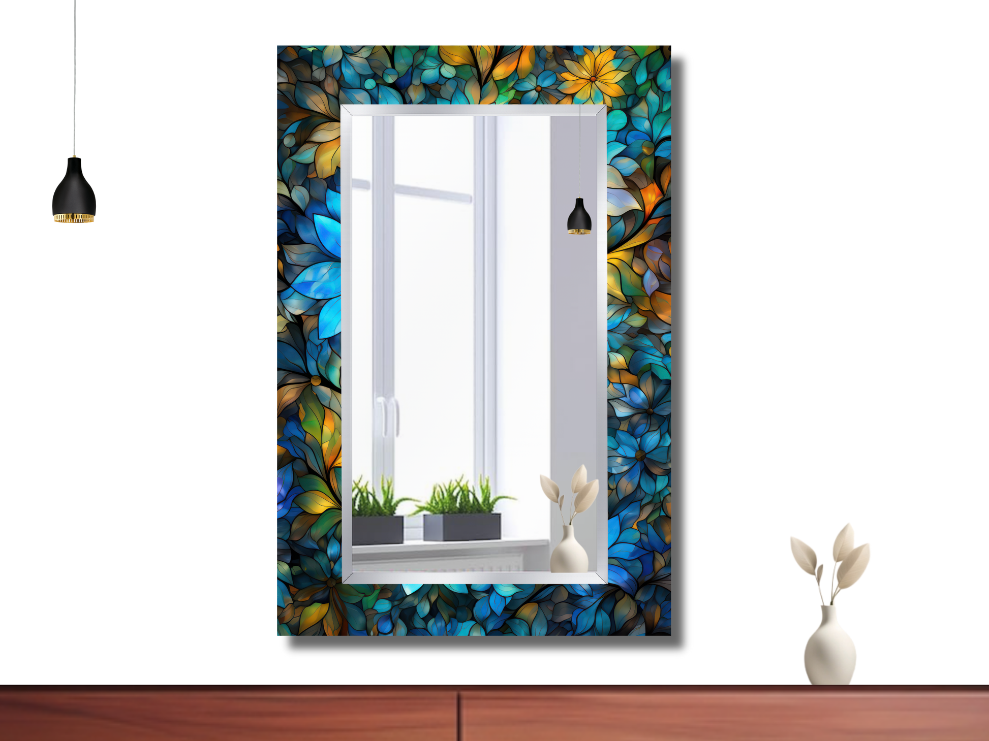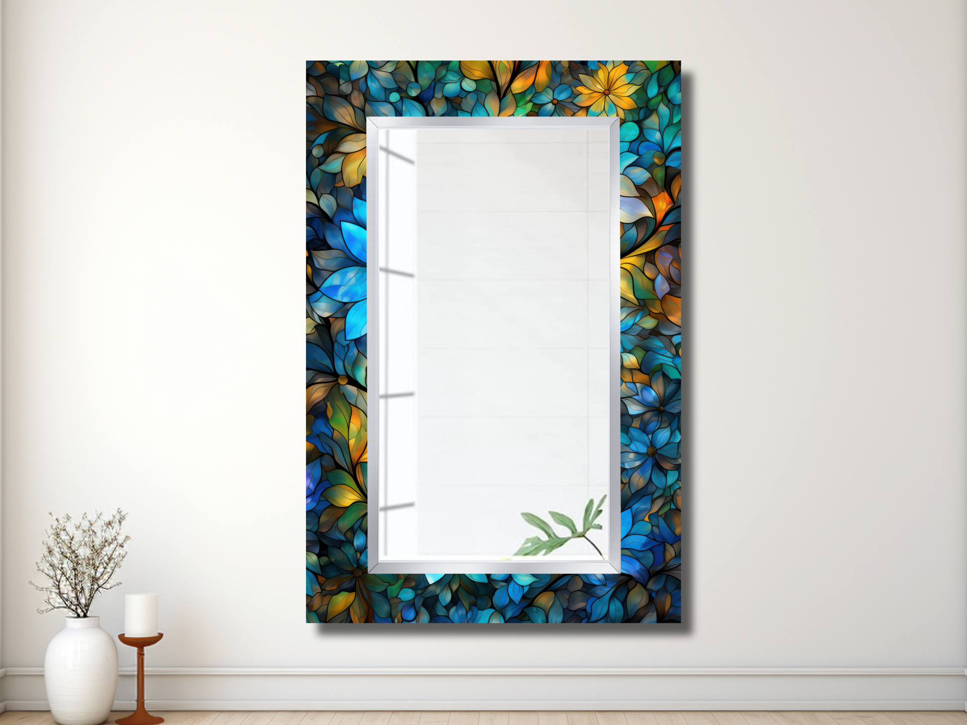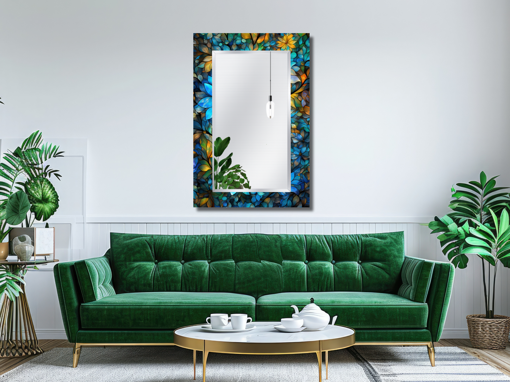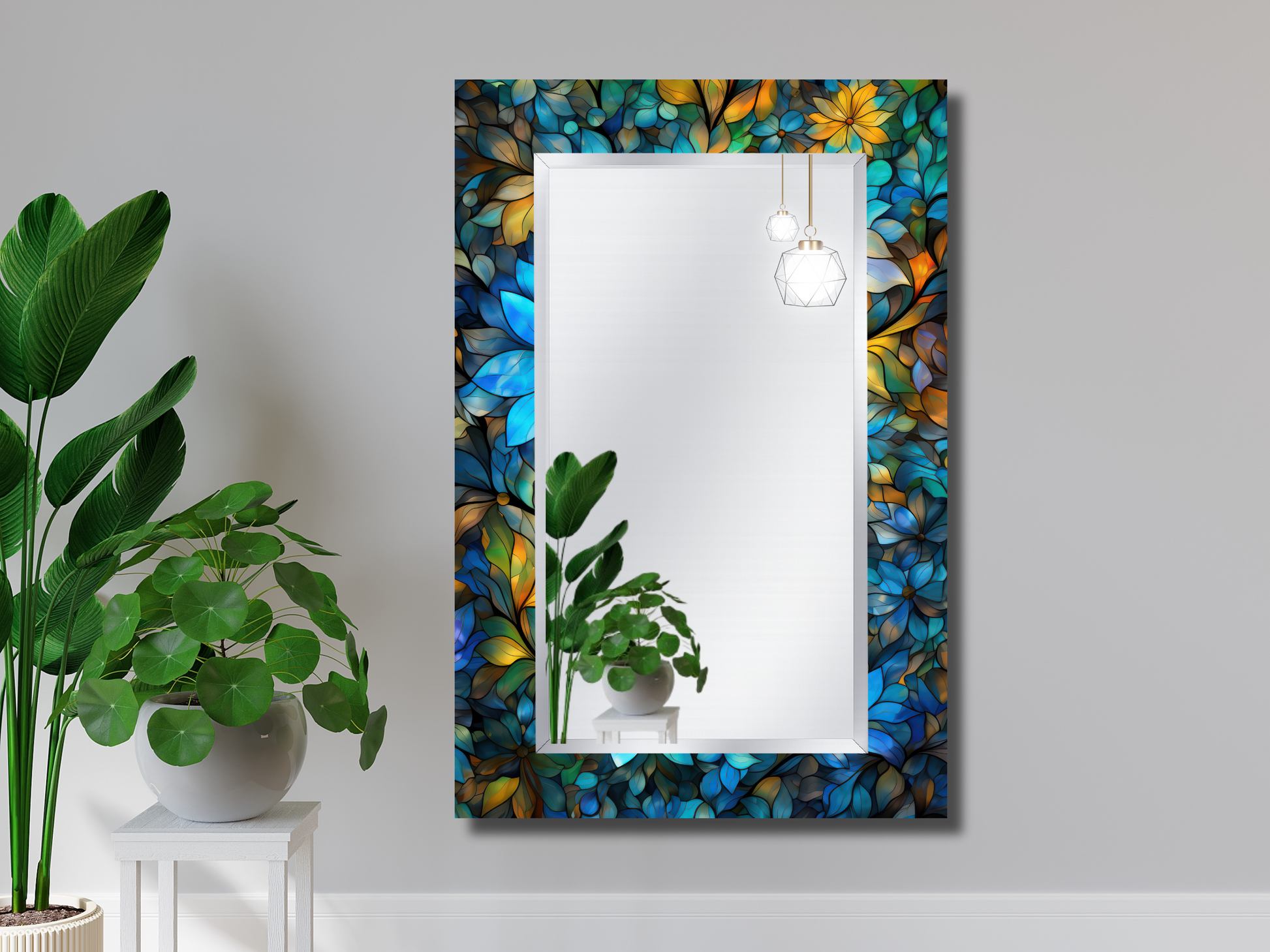 Botanik Desenli Ayna - Dekoratif Ayna - Boy Aynası - Banyo Aynası - Ev Duvar Dekoru