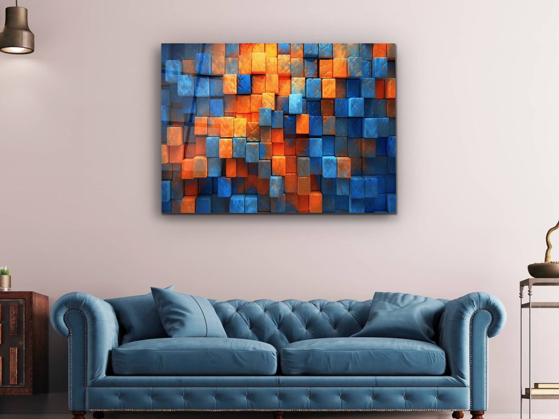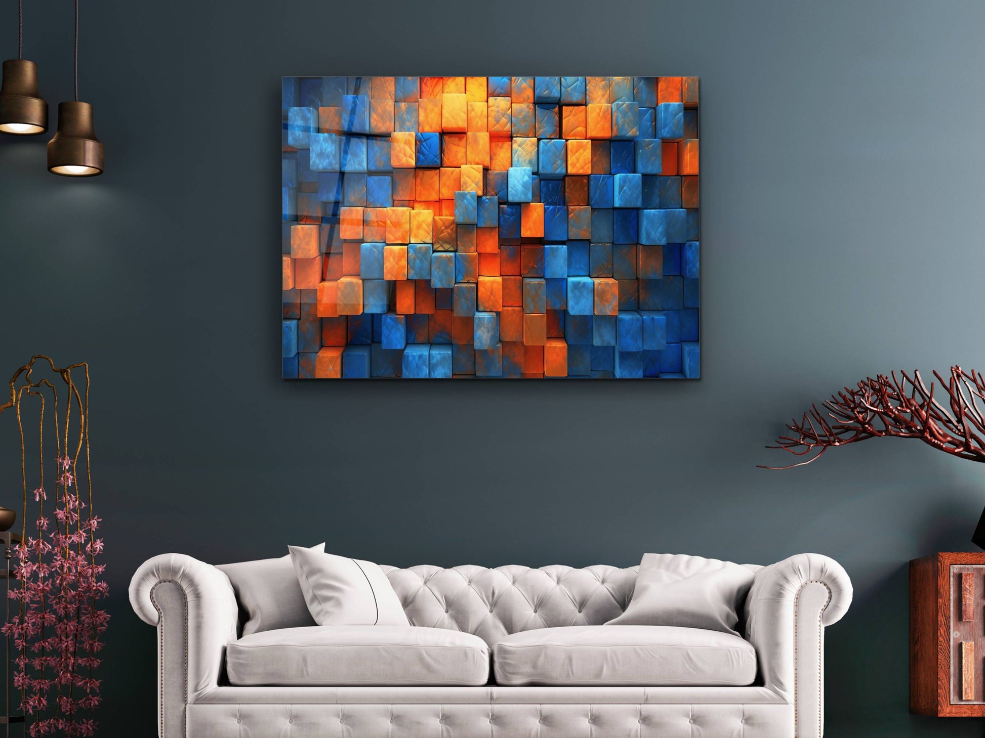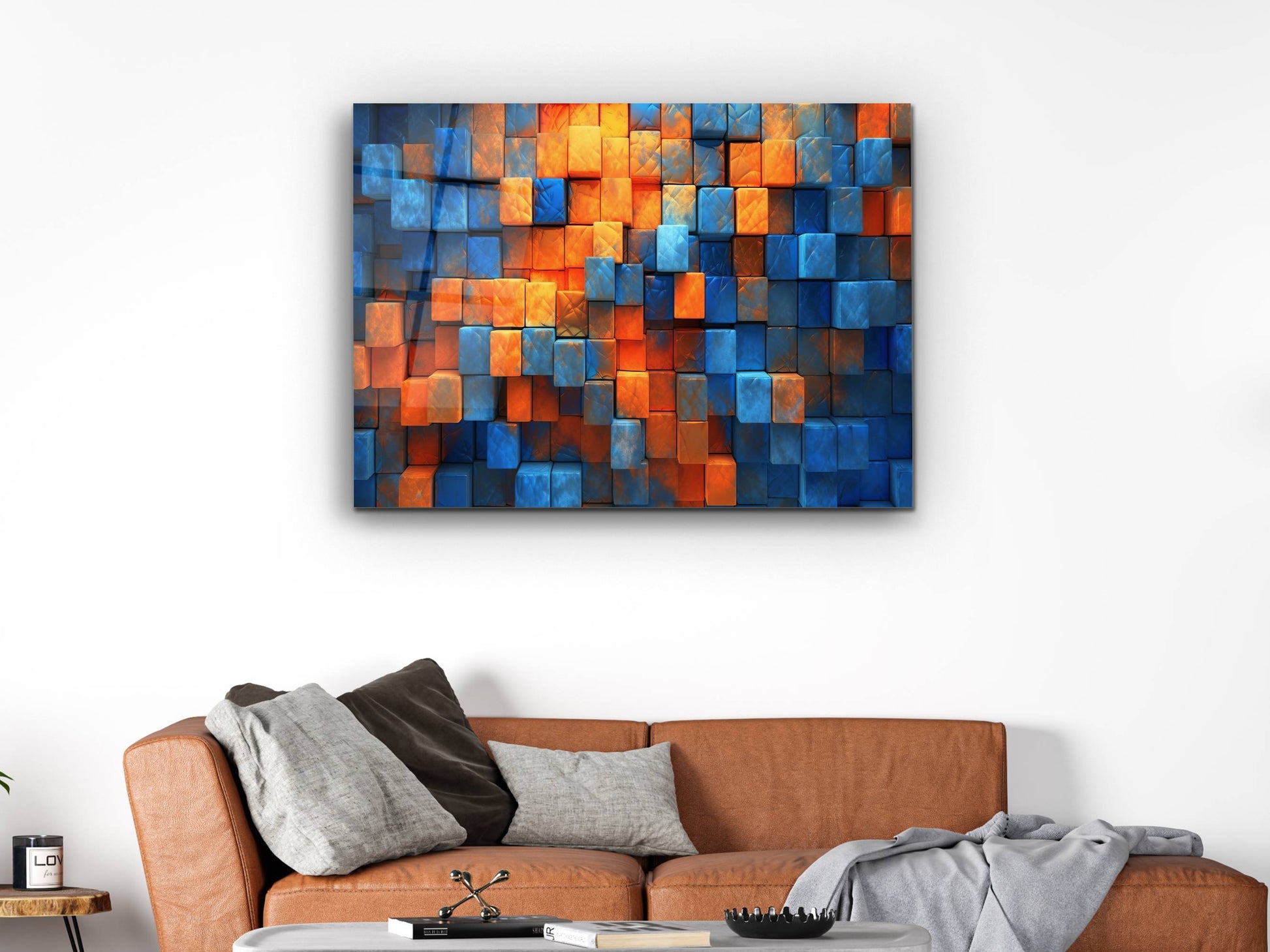 Canlı Renkli Küpler Cam Tablo – 3D Efektli Modern Geometrik Duvar Dekoru