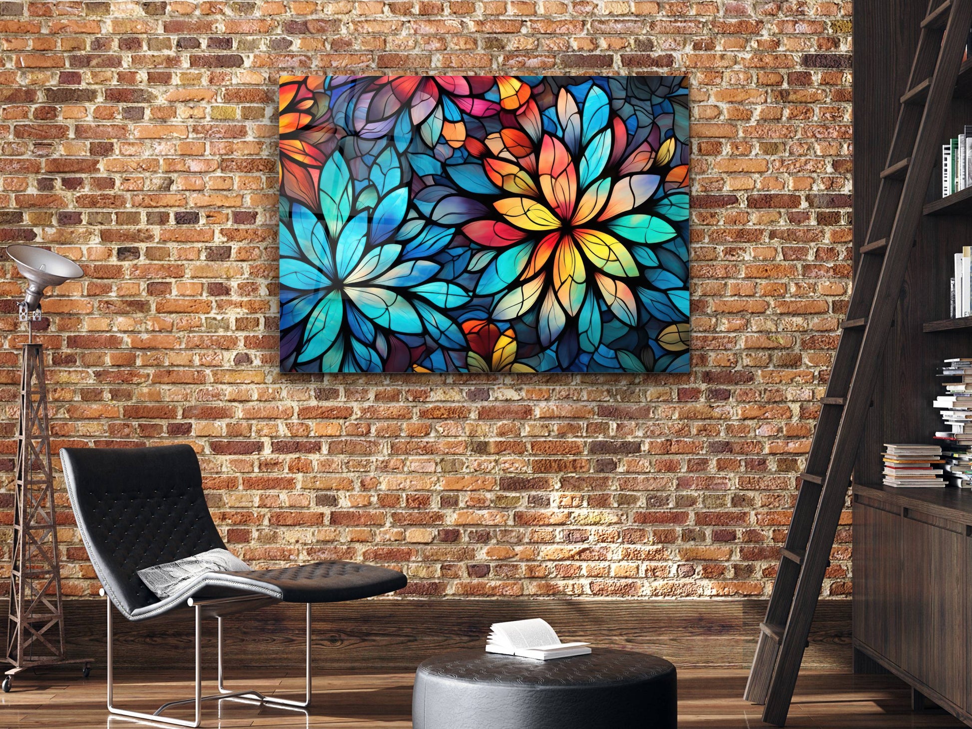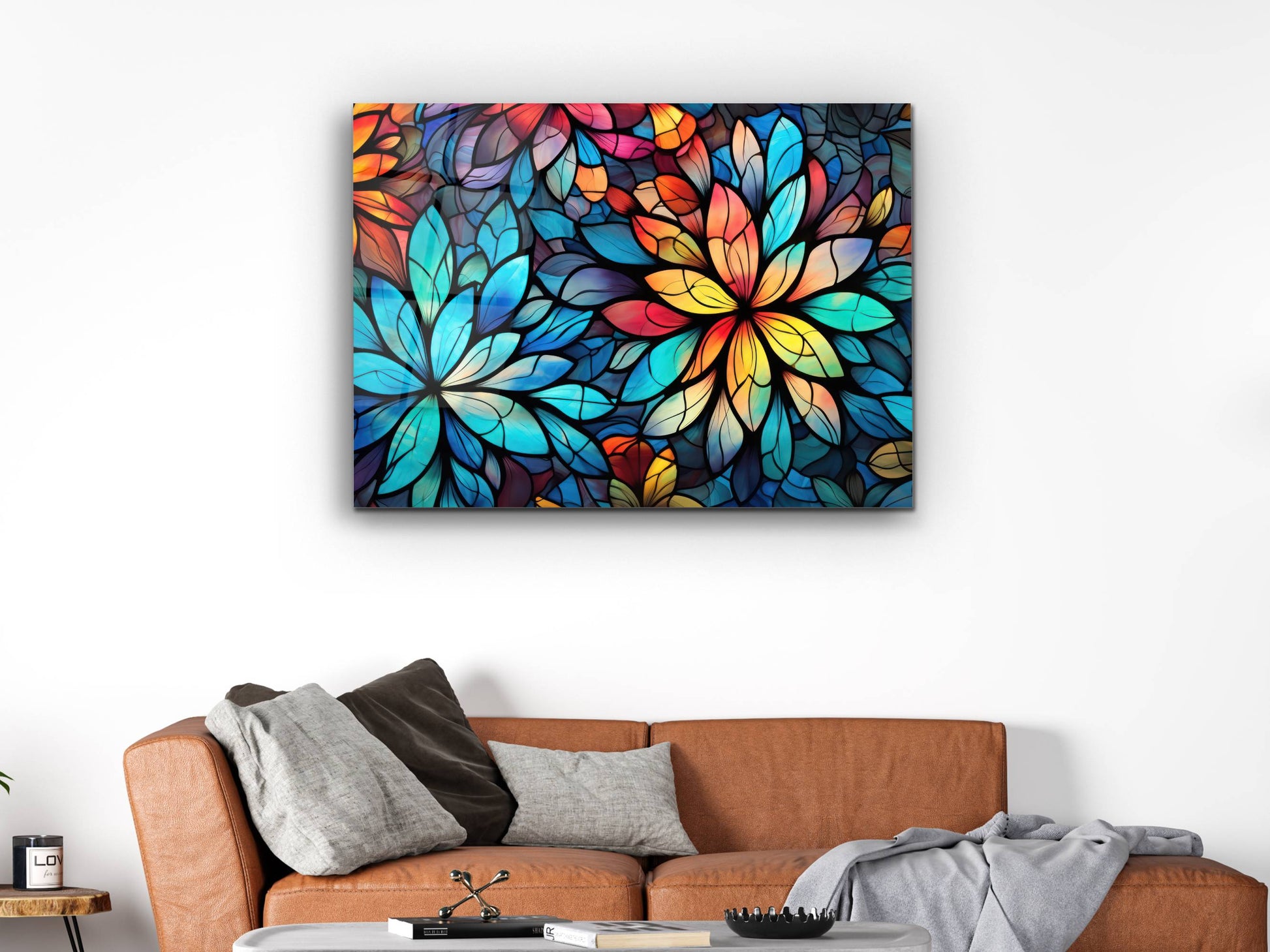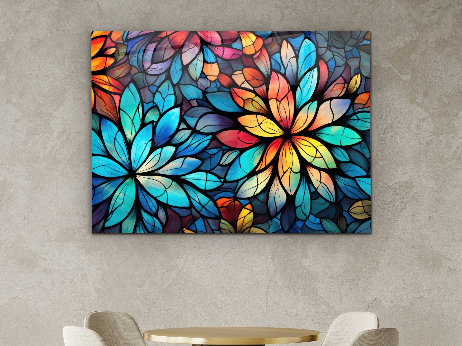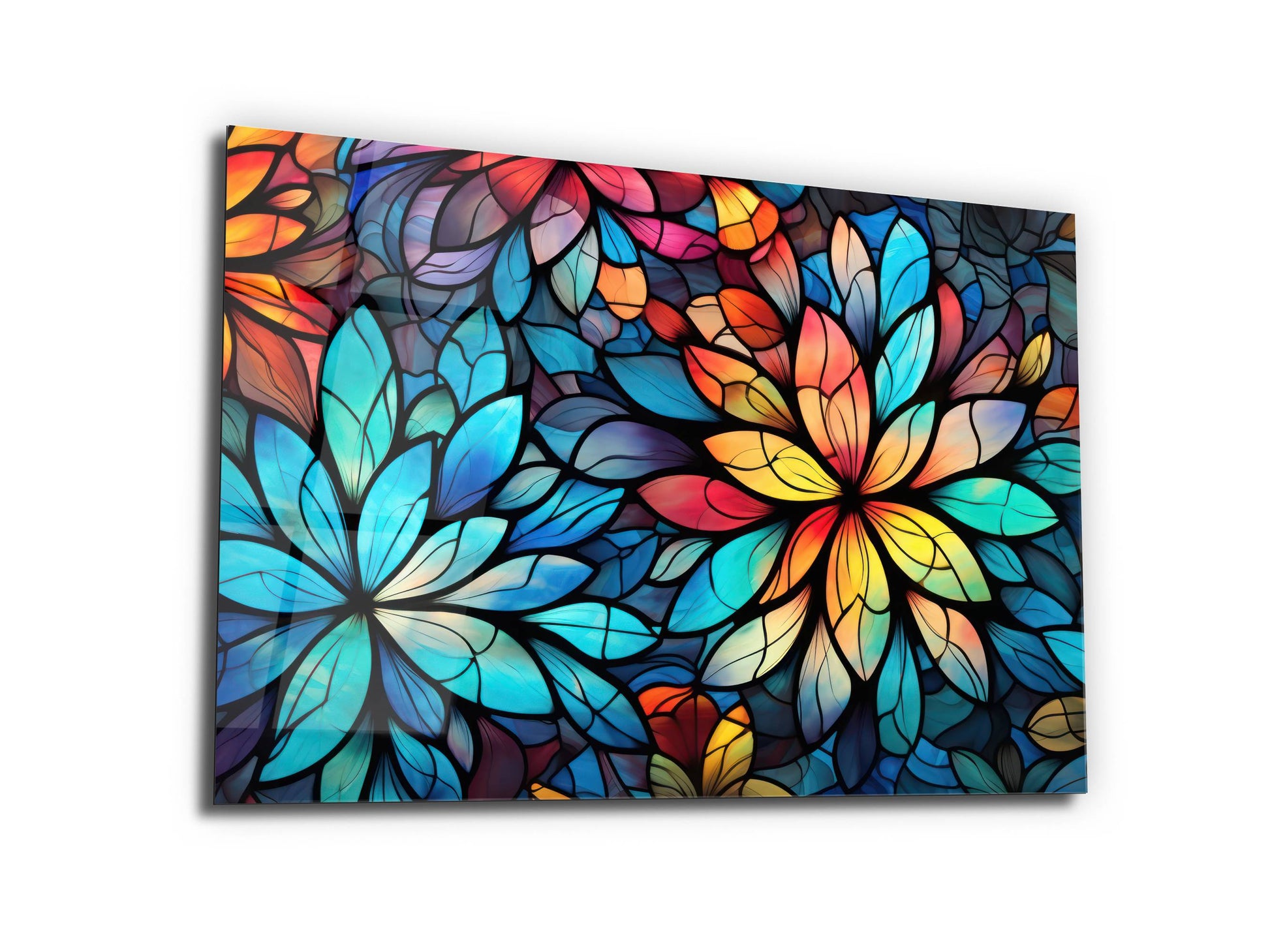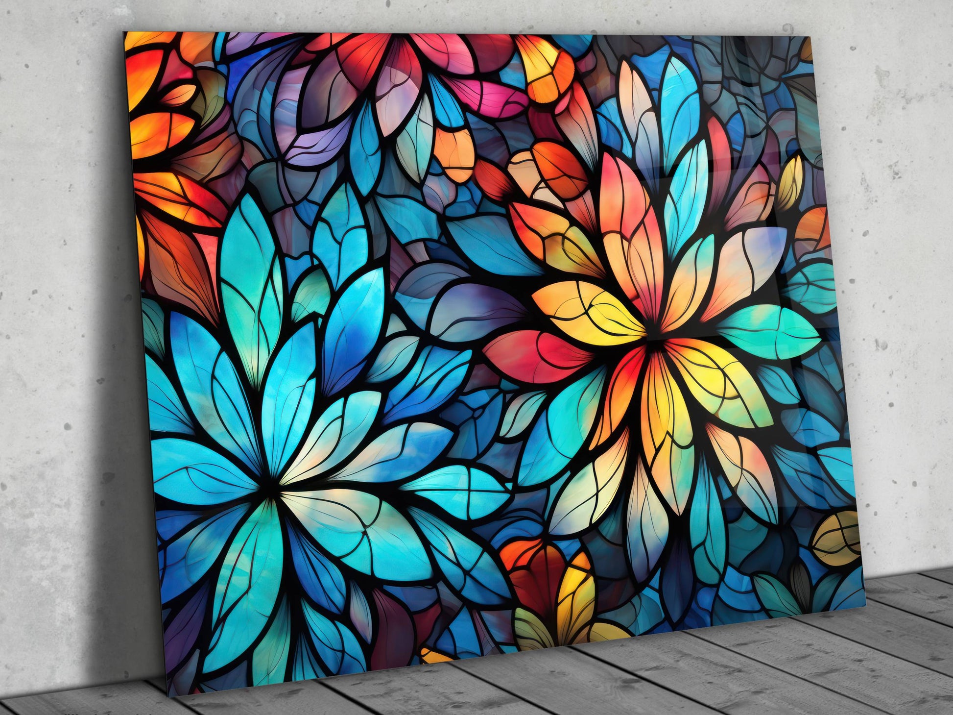 Çiçekli Cam Tablo - Cam Duvar Dekoru - Dekoratif Duvar Tablosu