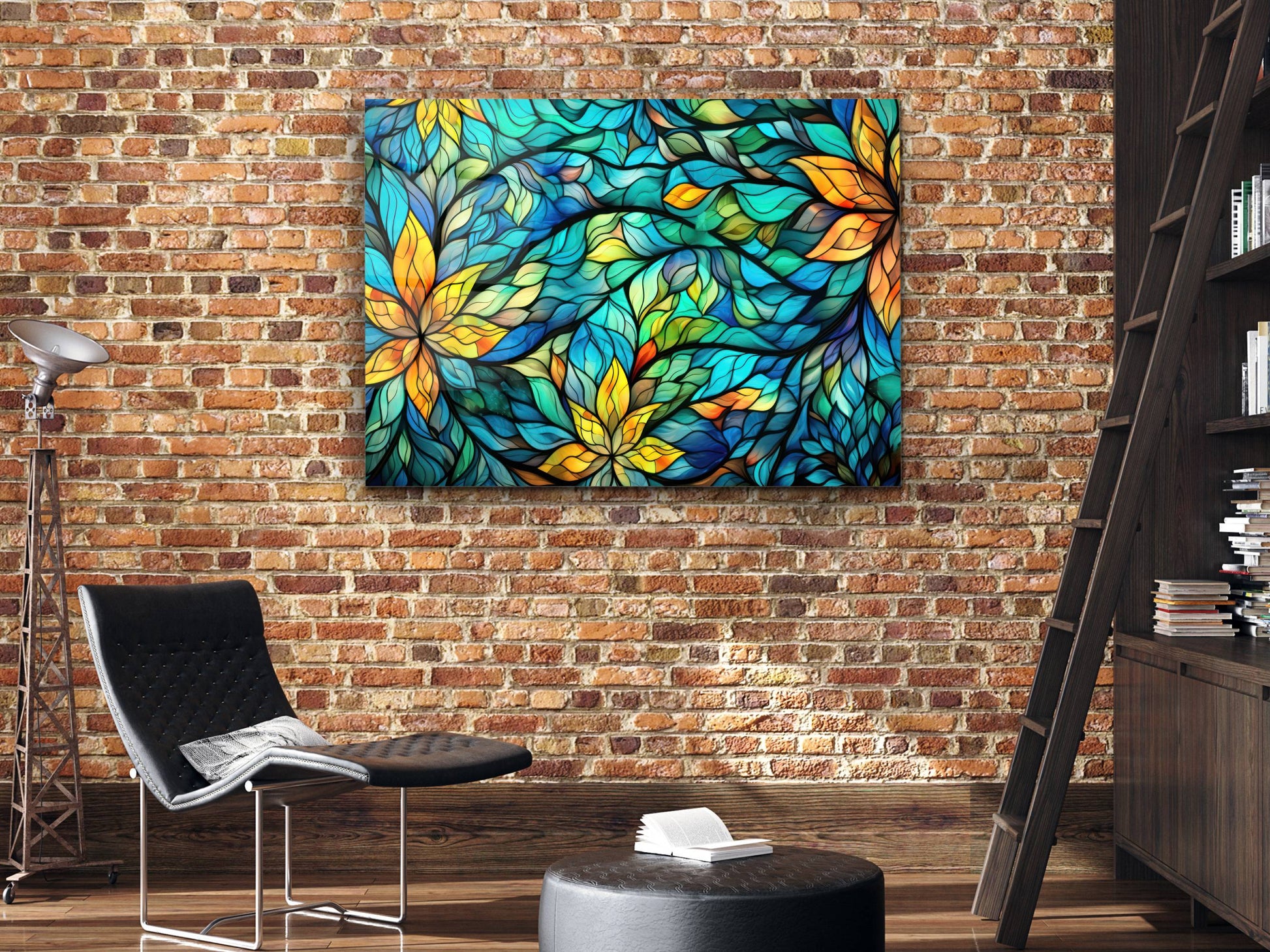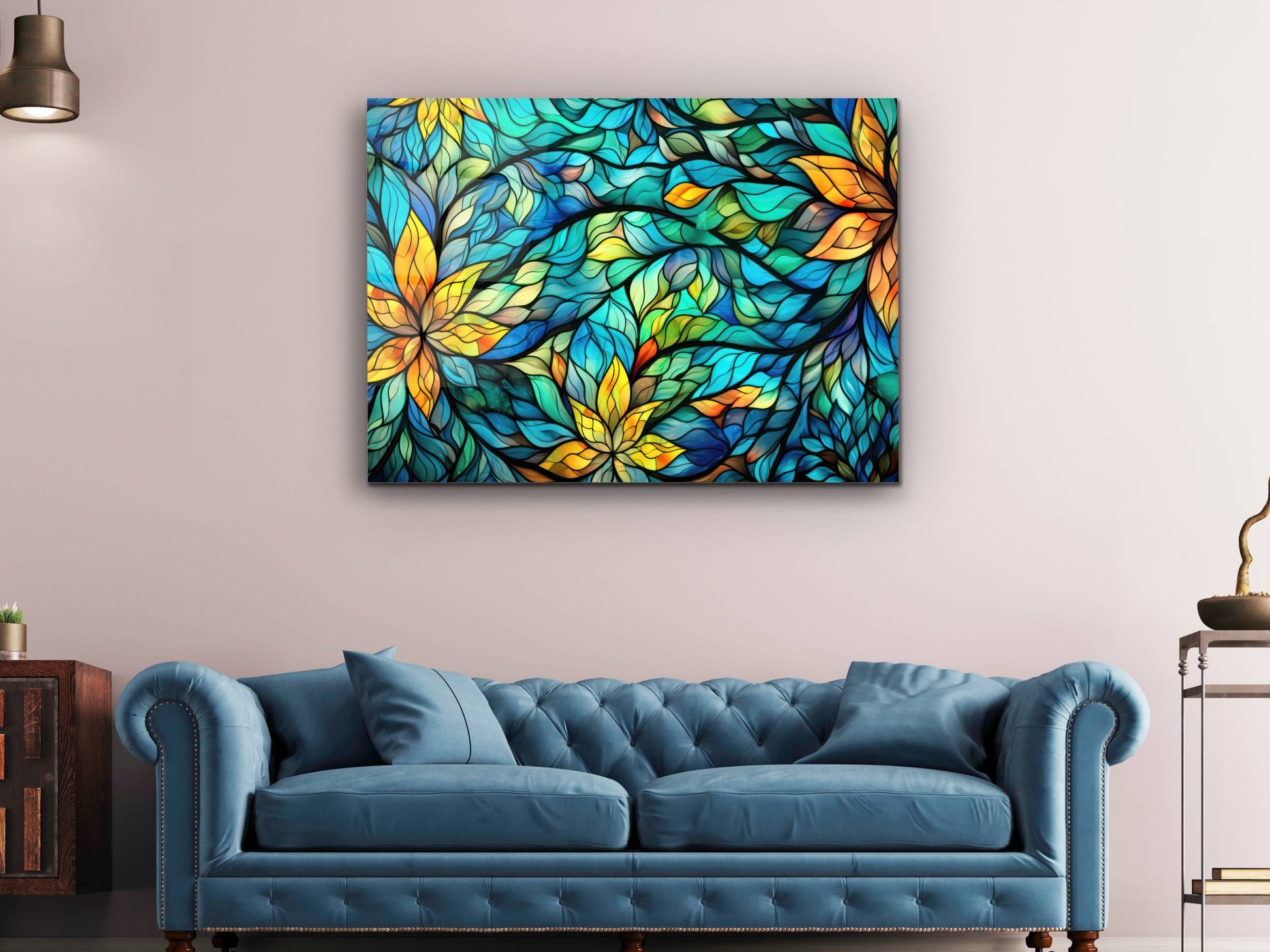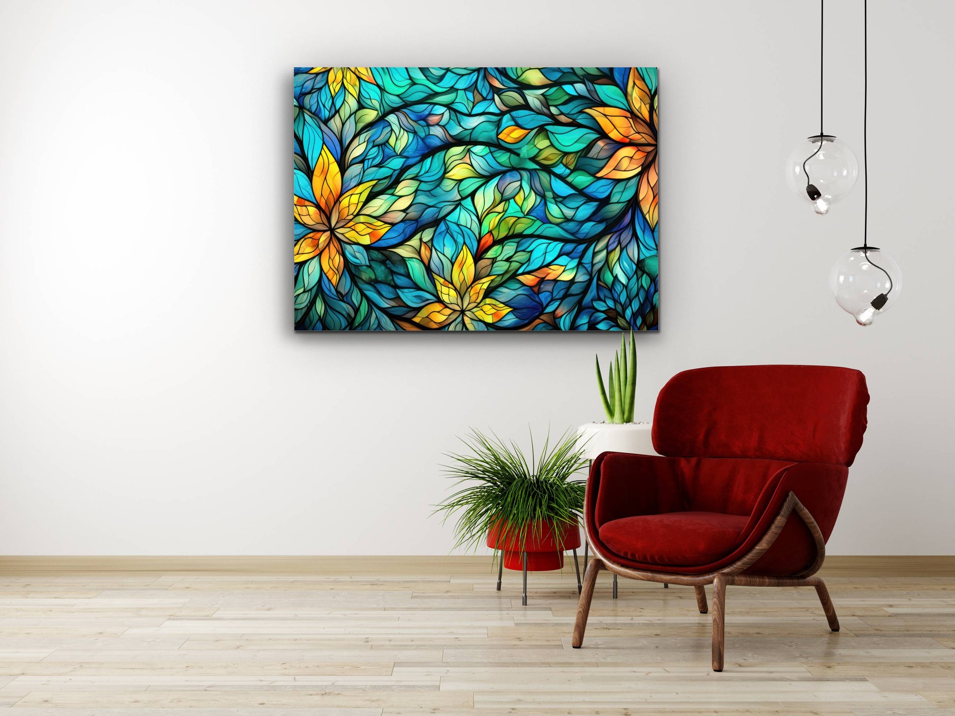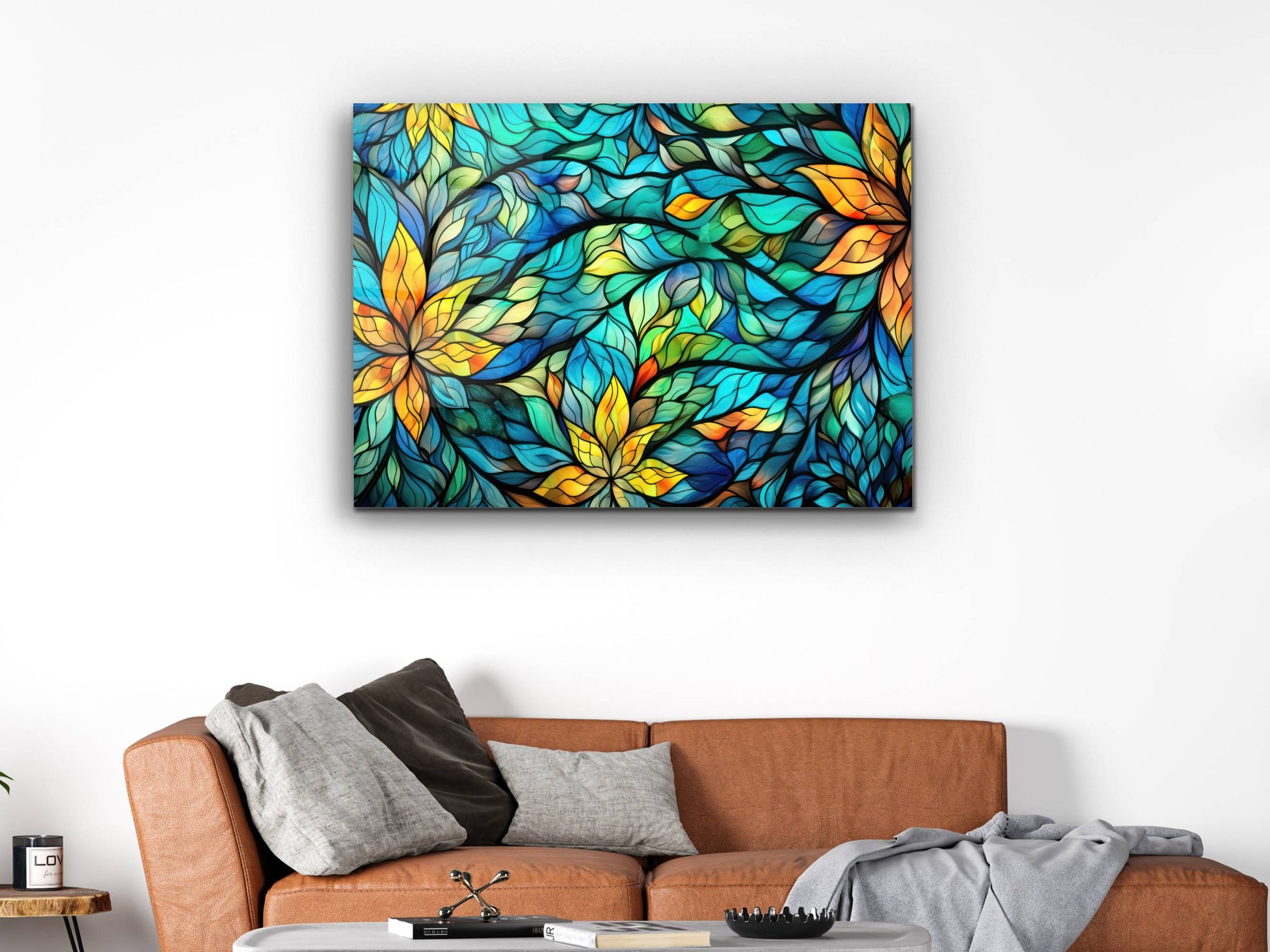 Çiçekli Renkli Cam Tablo - Cam Duvar Dekoru - Floral Duvar Tablosu