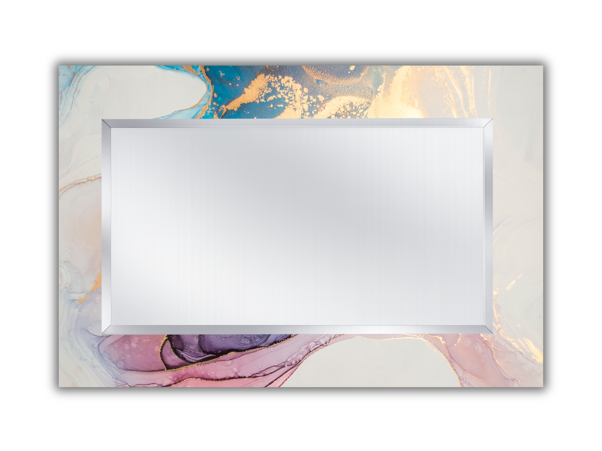 Ürünlerimiz, 4 mm kalınlığında temperli cam üzerine canlı UV baskılı desenlerle üretilir ve merkezinde yer alan 4 mm bizoteli ayna ile hem dayanıklılık hem de zarif bir estetik sunar.