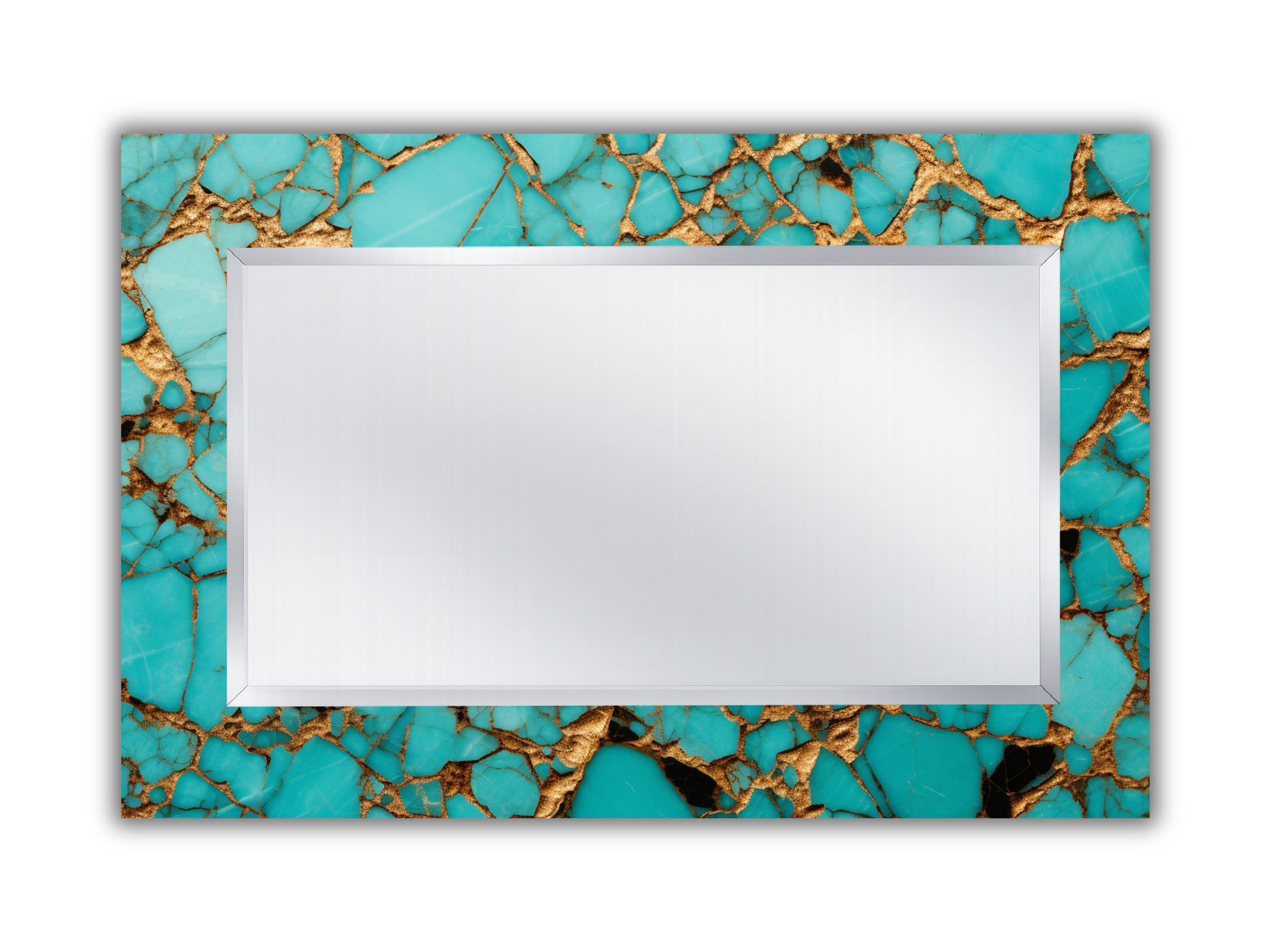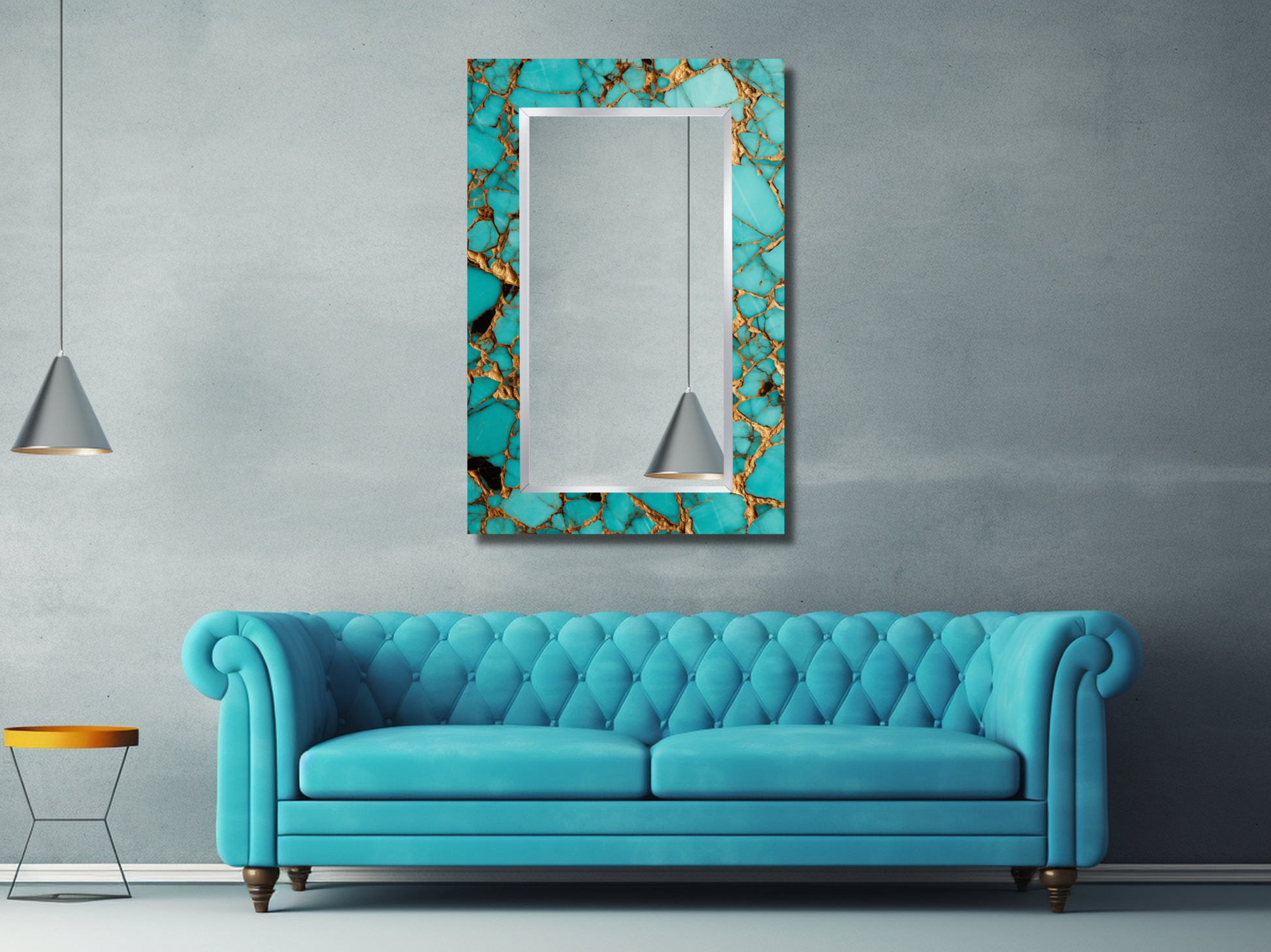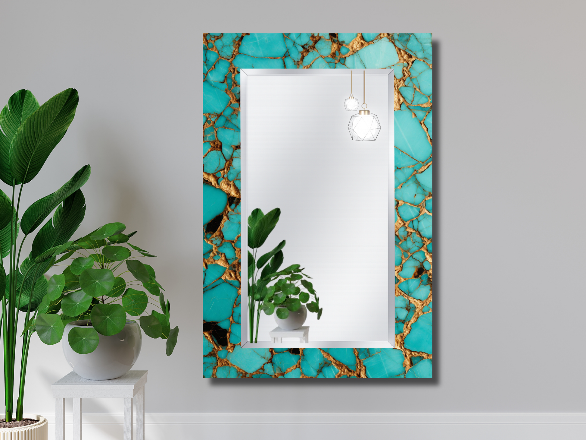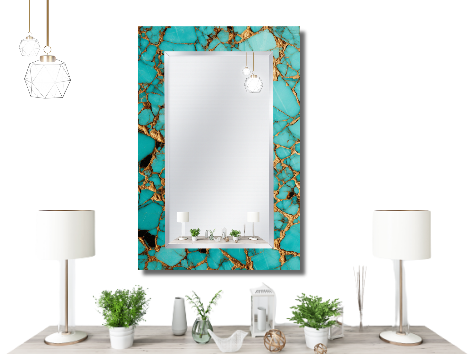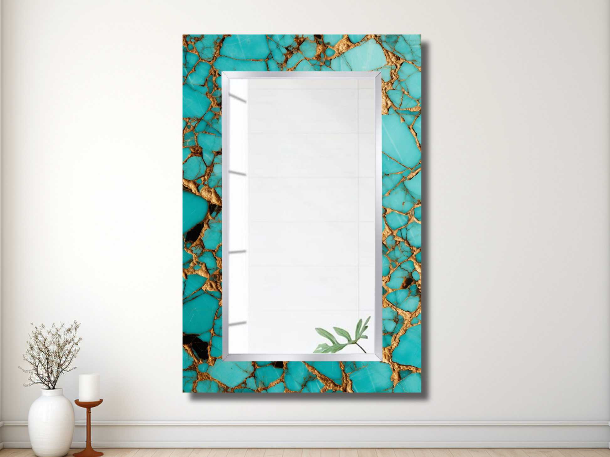 Dekoratif Turkuaz Mermer Desenli Ayna - Modern Tasarım Ayna - Banyo Aynası - Minimalist Boy Aynası