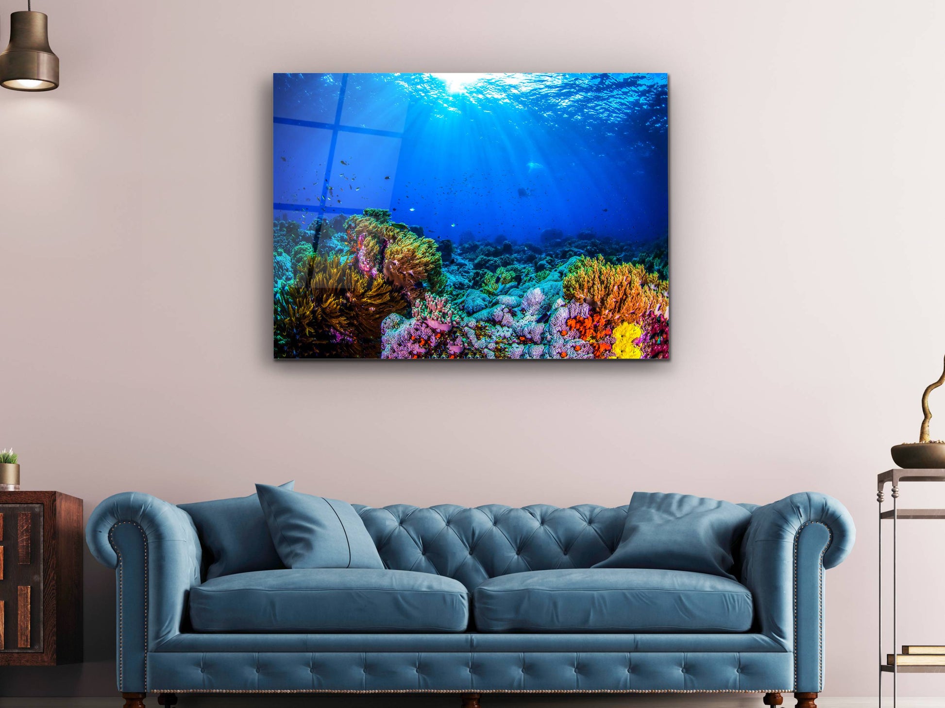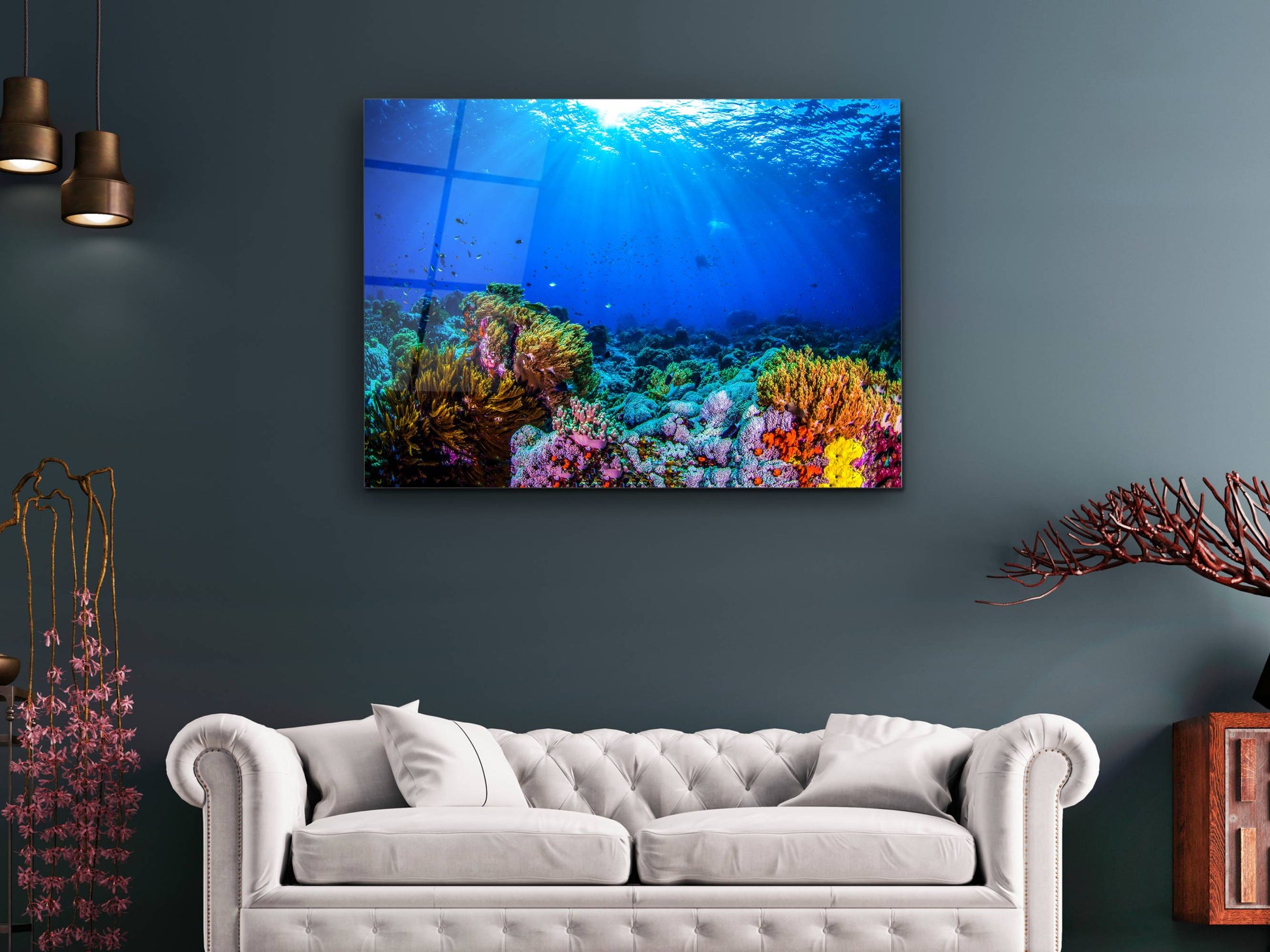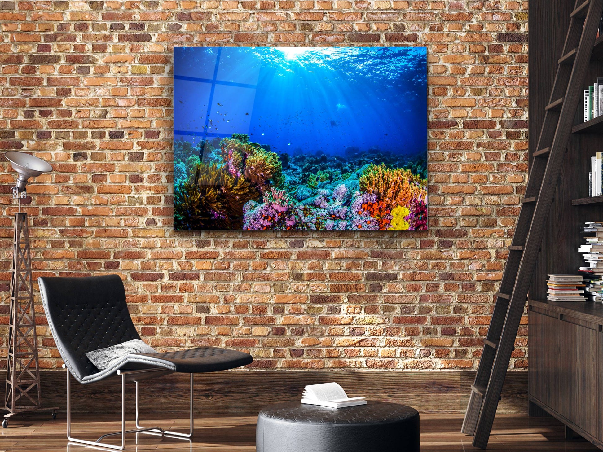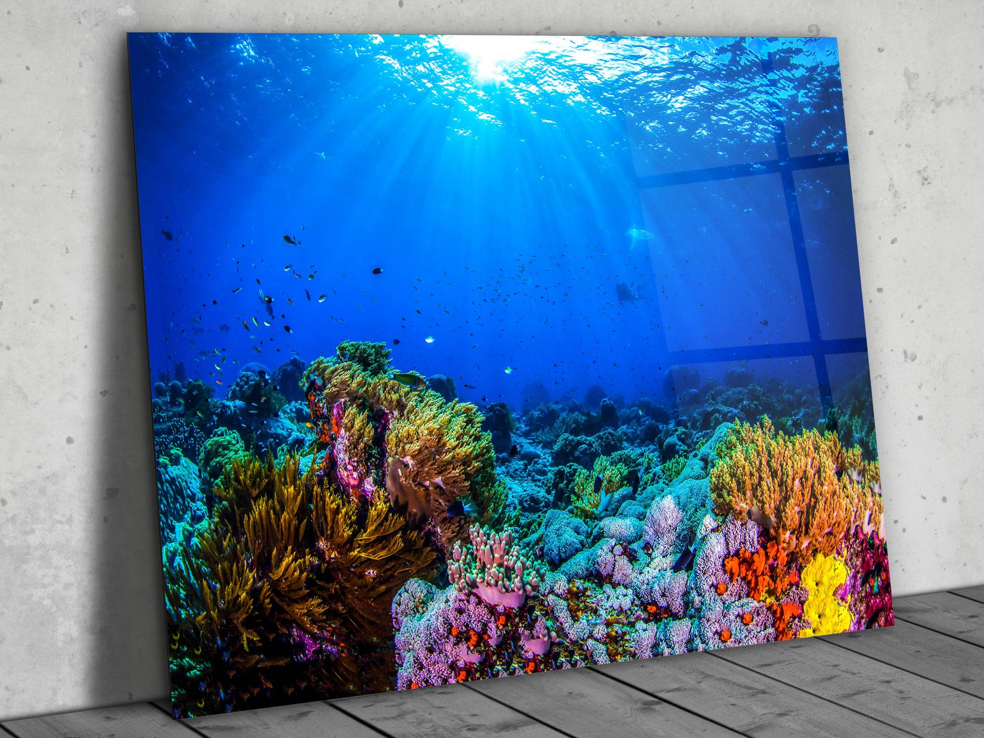 Denizaltı Cam Tablo – Derin Deniz Temalı Dekoratif Ev ve Ofis Tablosu