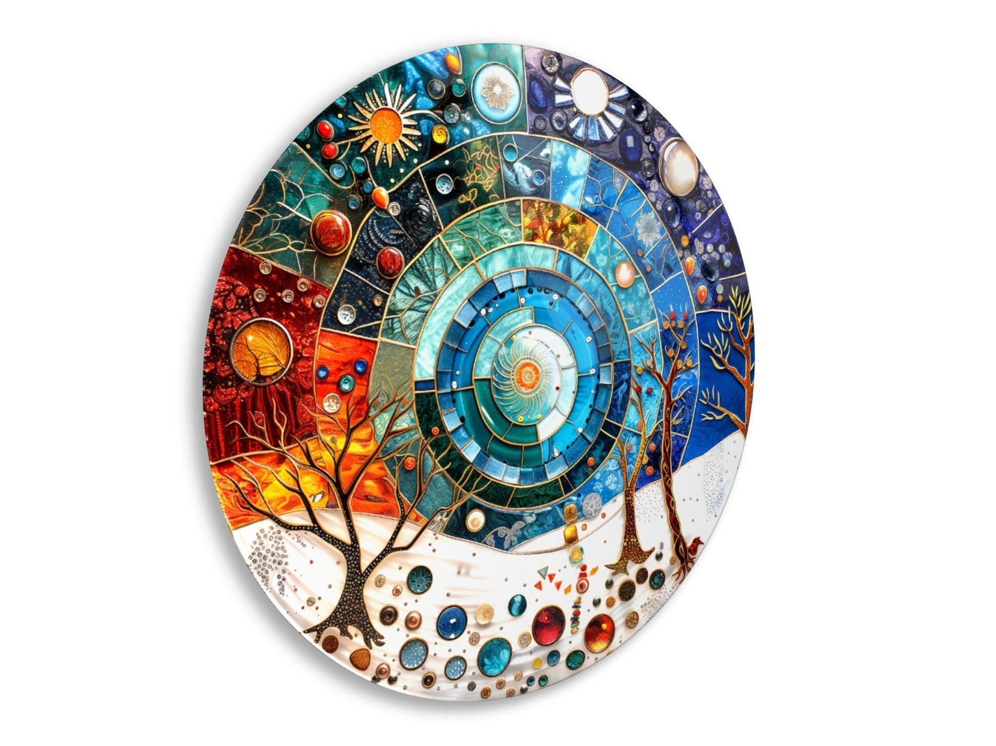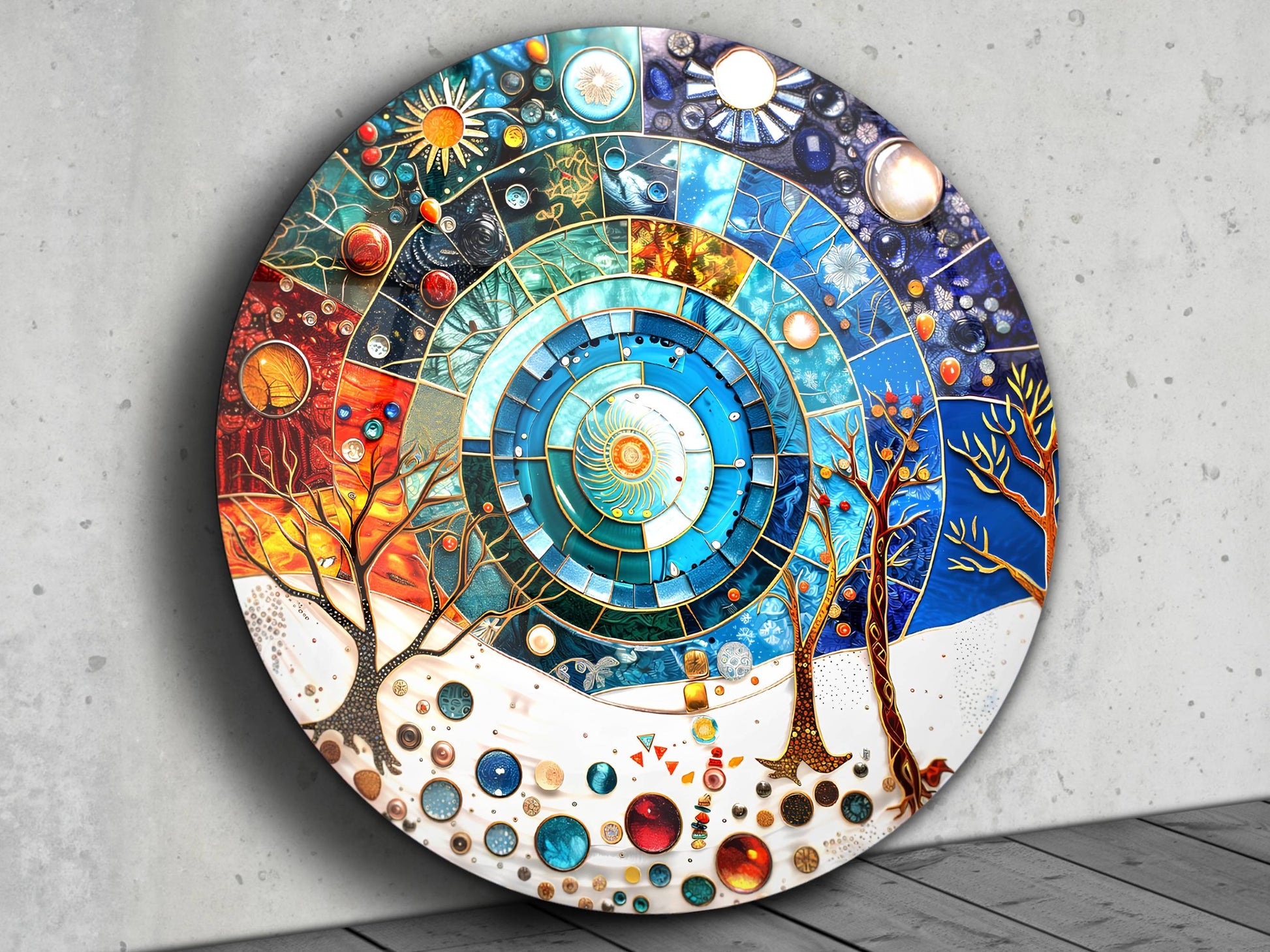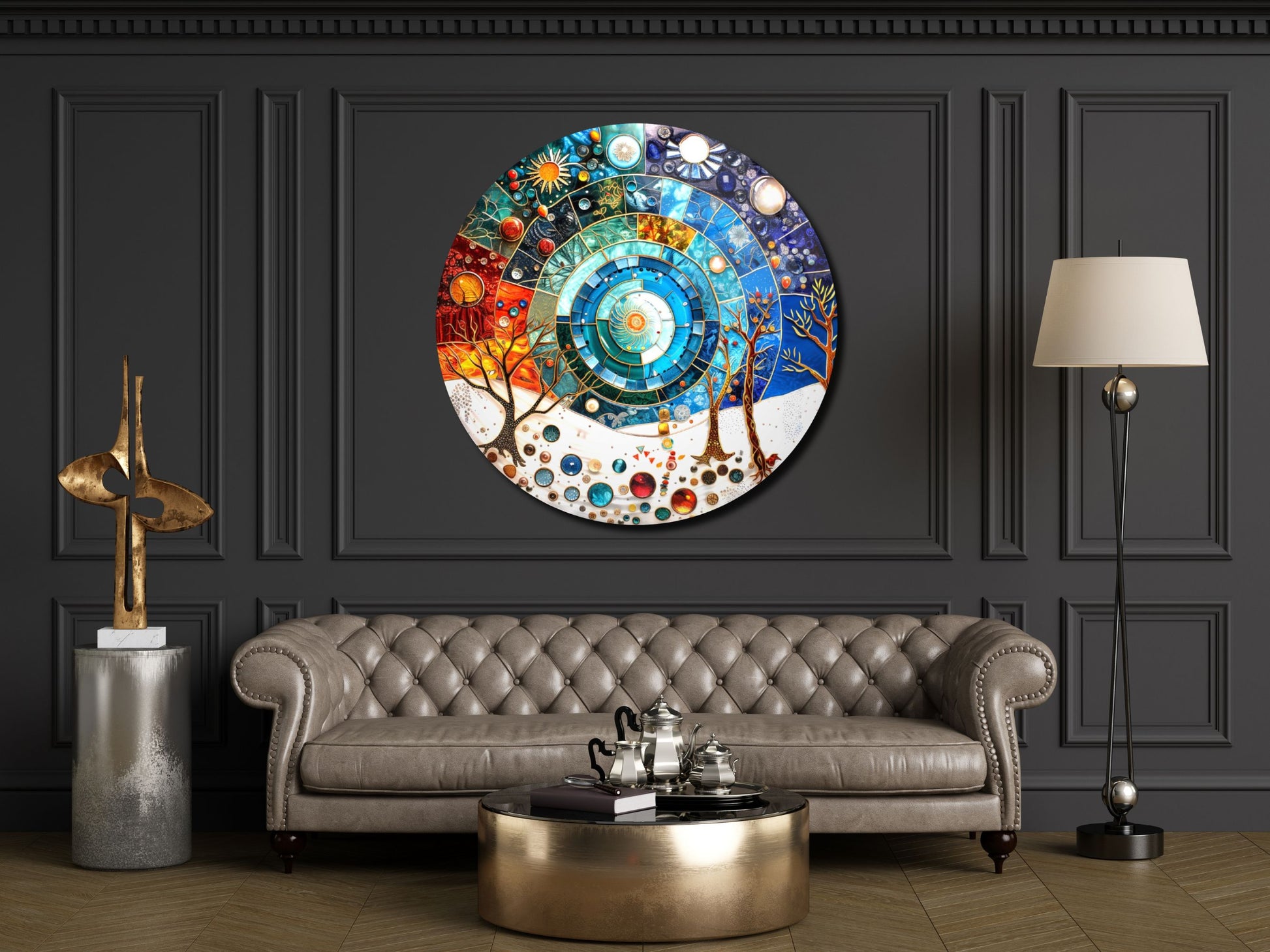 Dört Mevsim Spiral Evren Cam Tablo – Dekoratif Soyut Duvar Tablosu