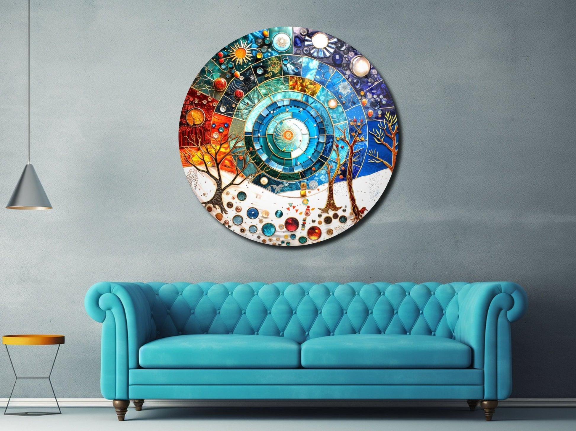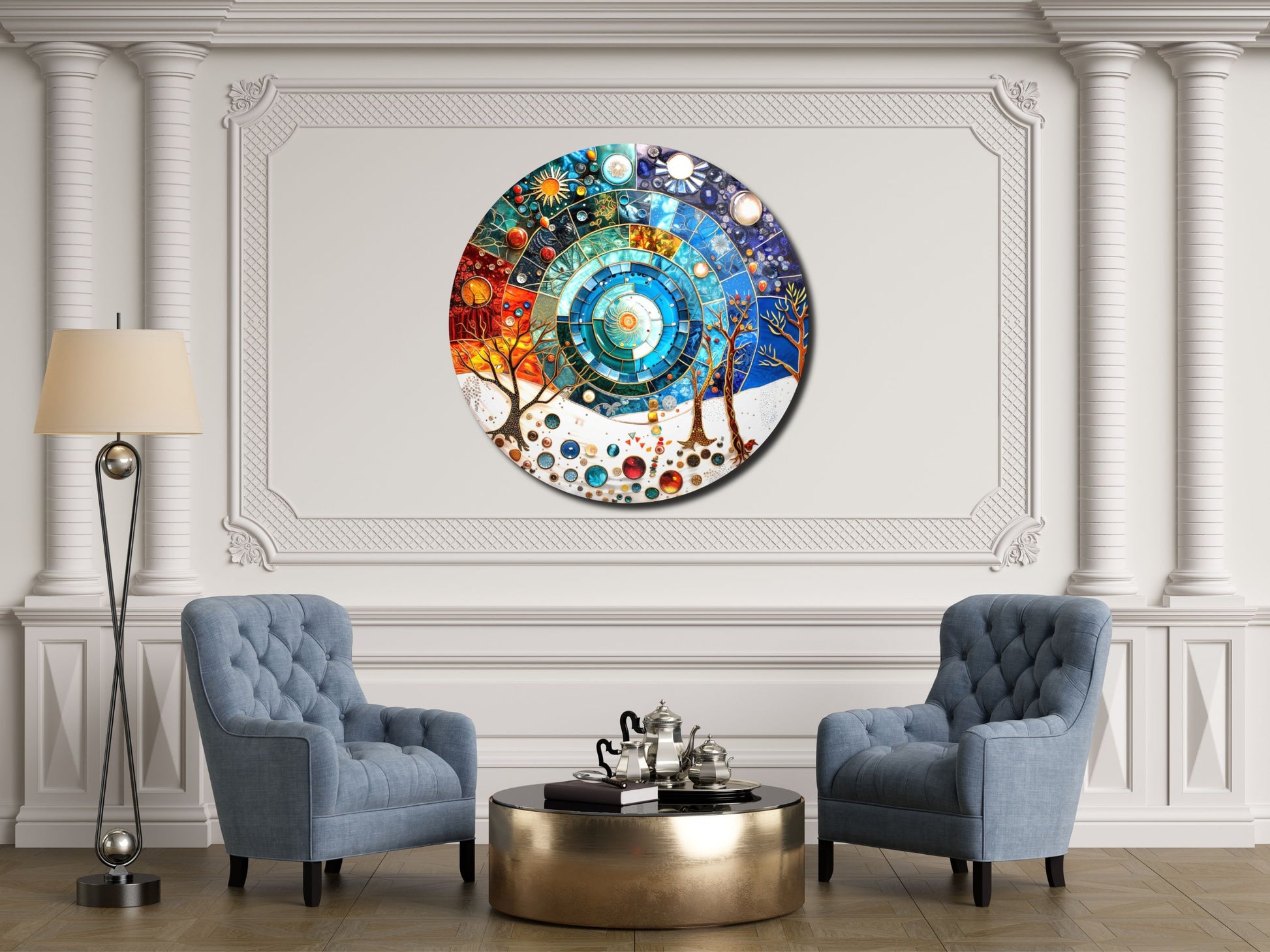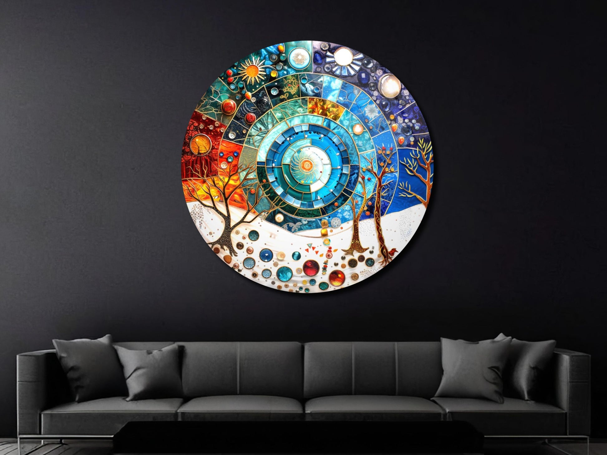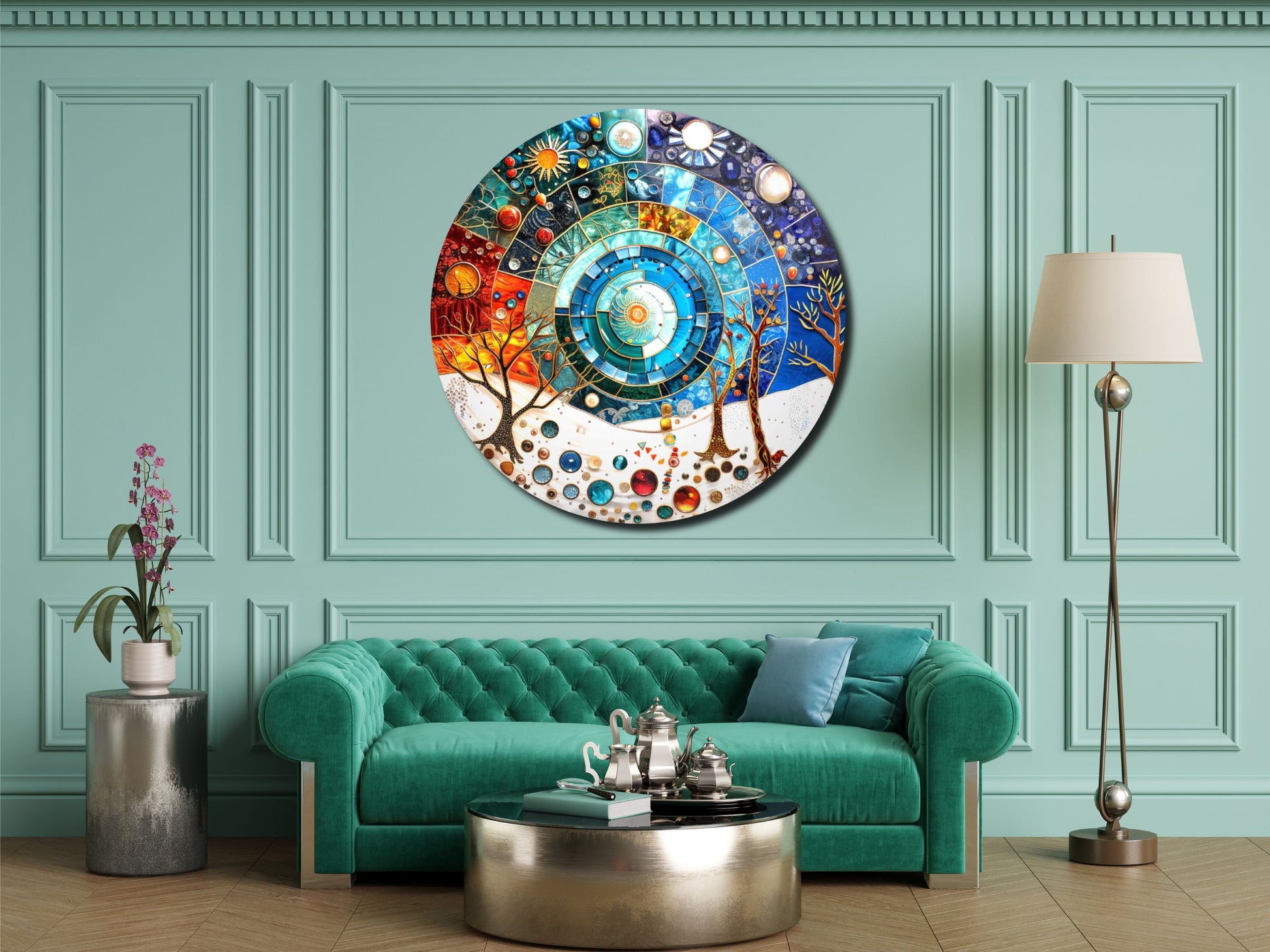 Dört Mevsim Spiral Evren Cam Tablo – Dekoratif Soyut Duvar Tablosu