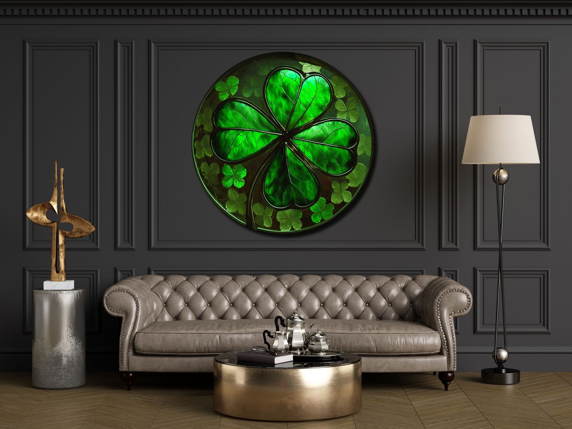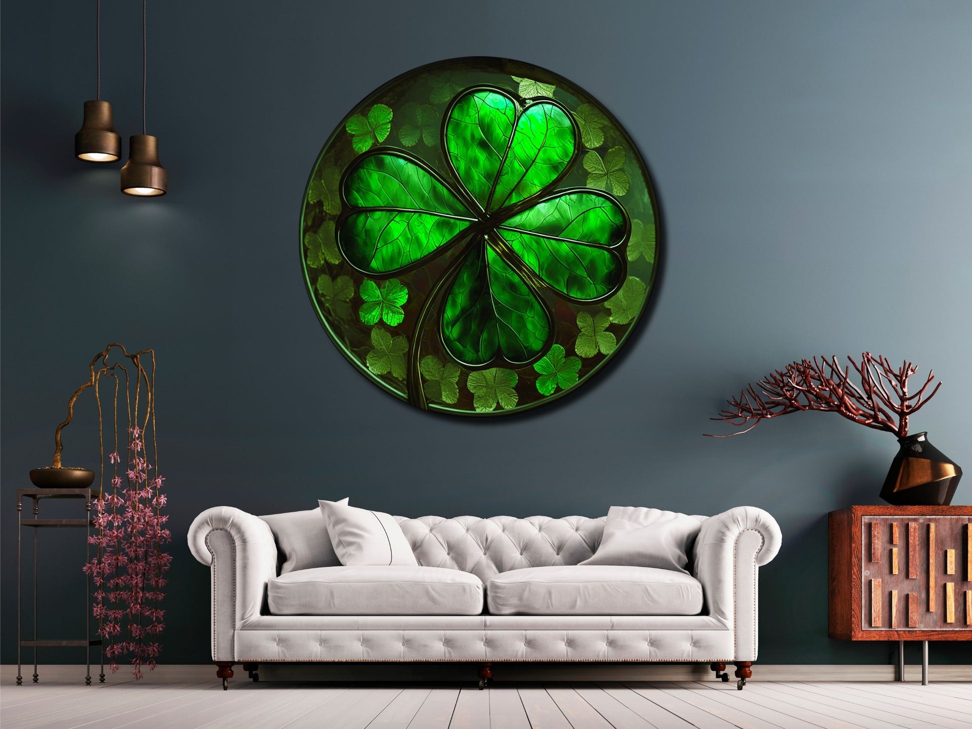 Dört Yapraklı Yonca Cam Tablo - Ev ve Ofis Spiritüel Duvar Dekoru