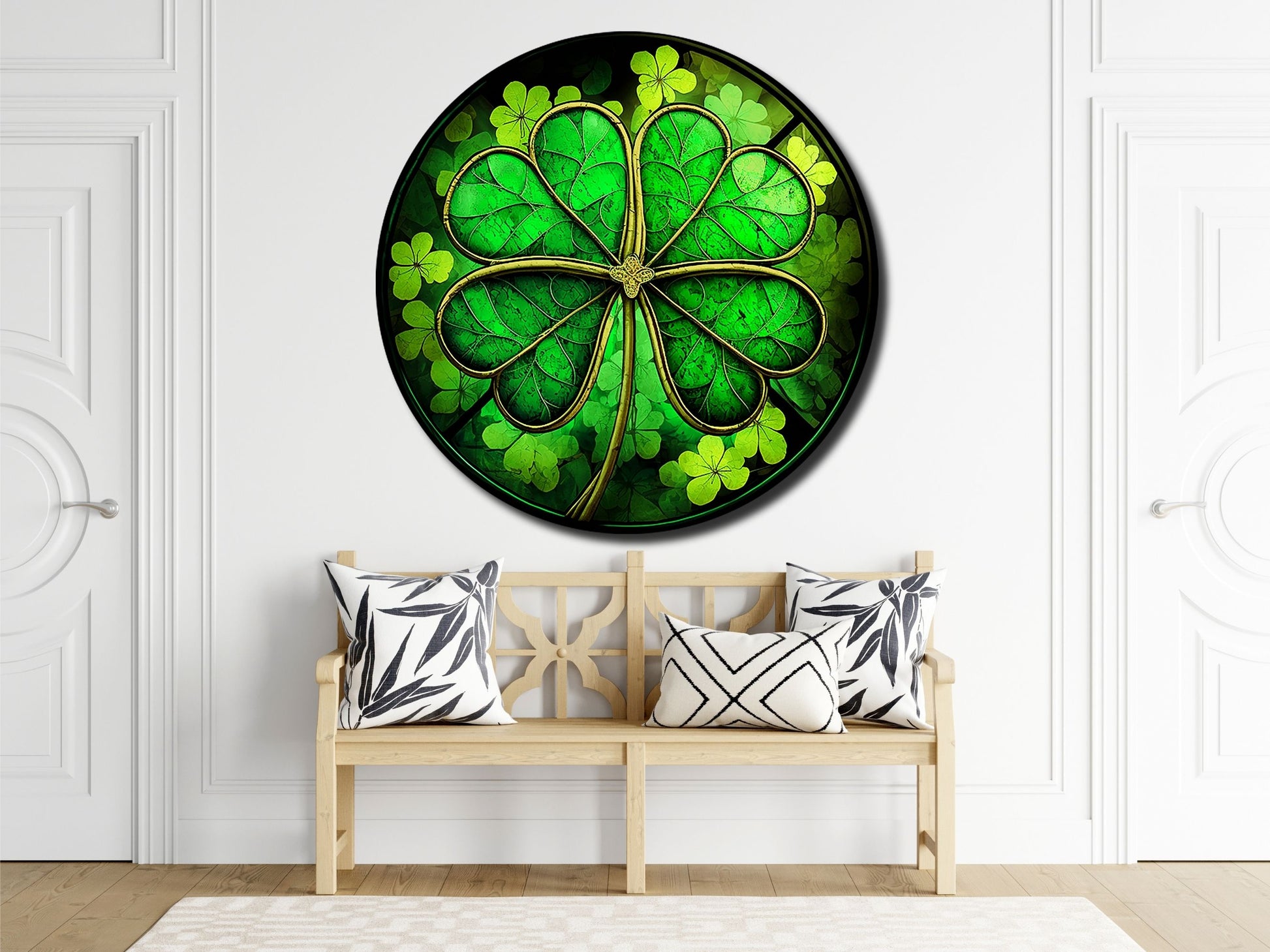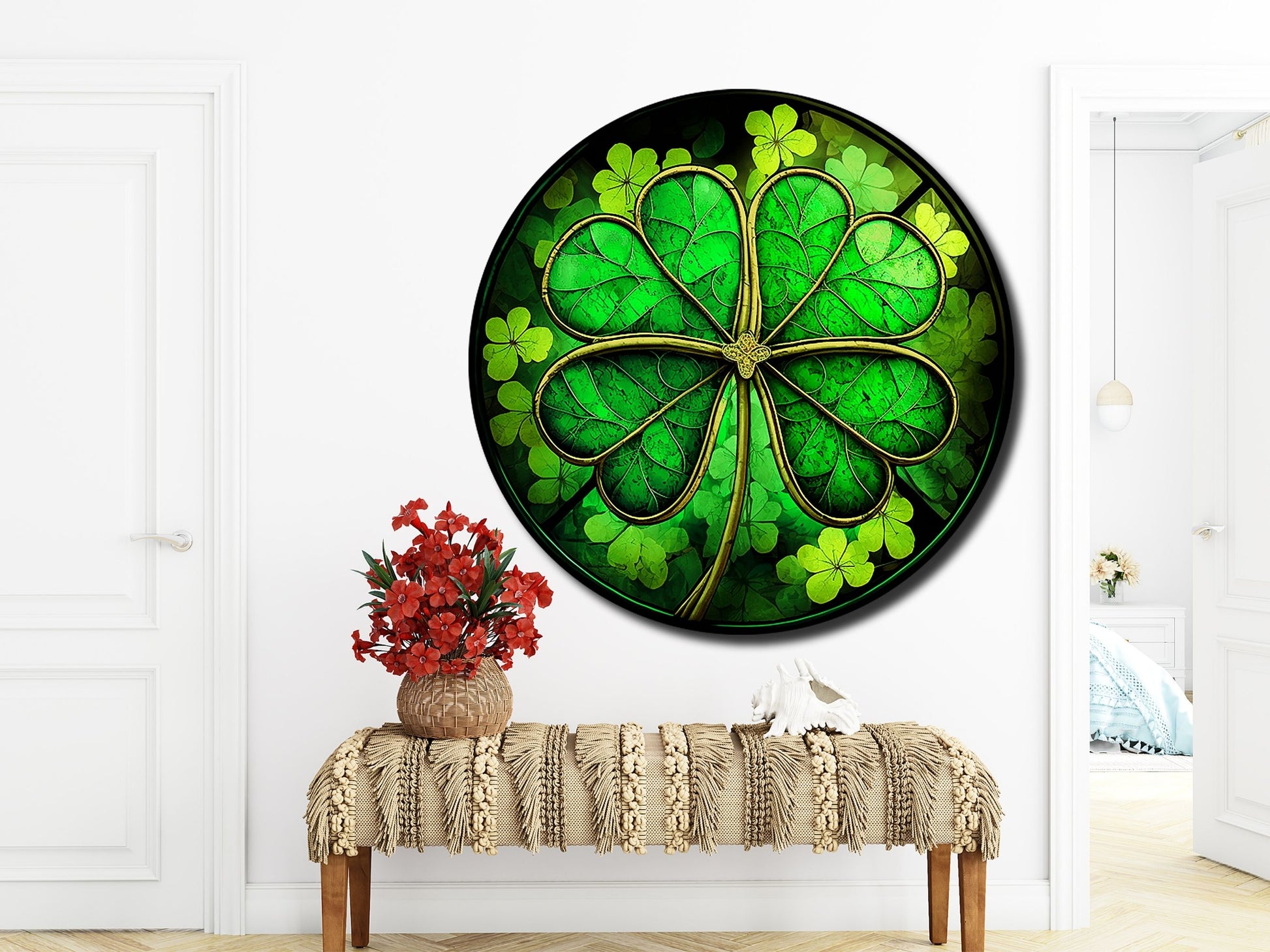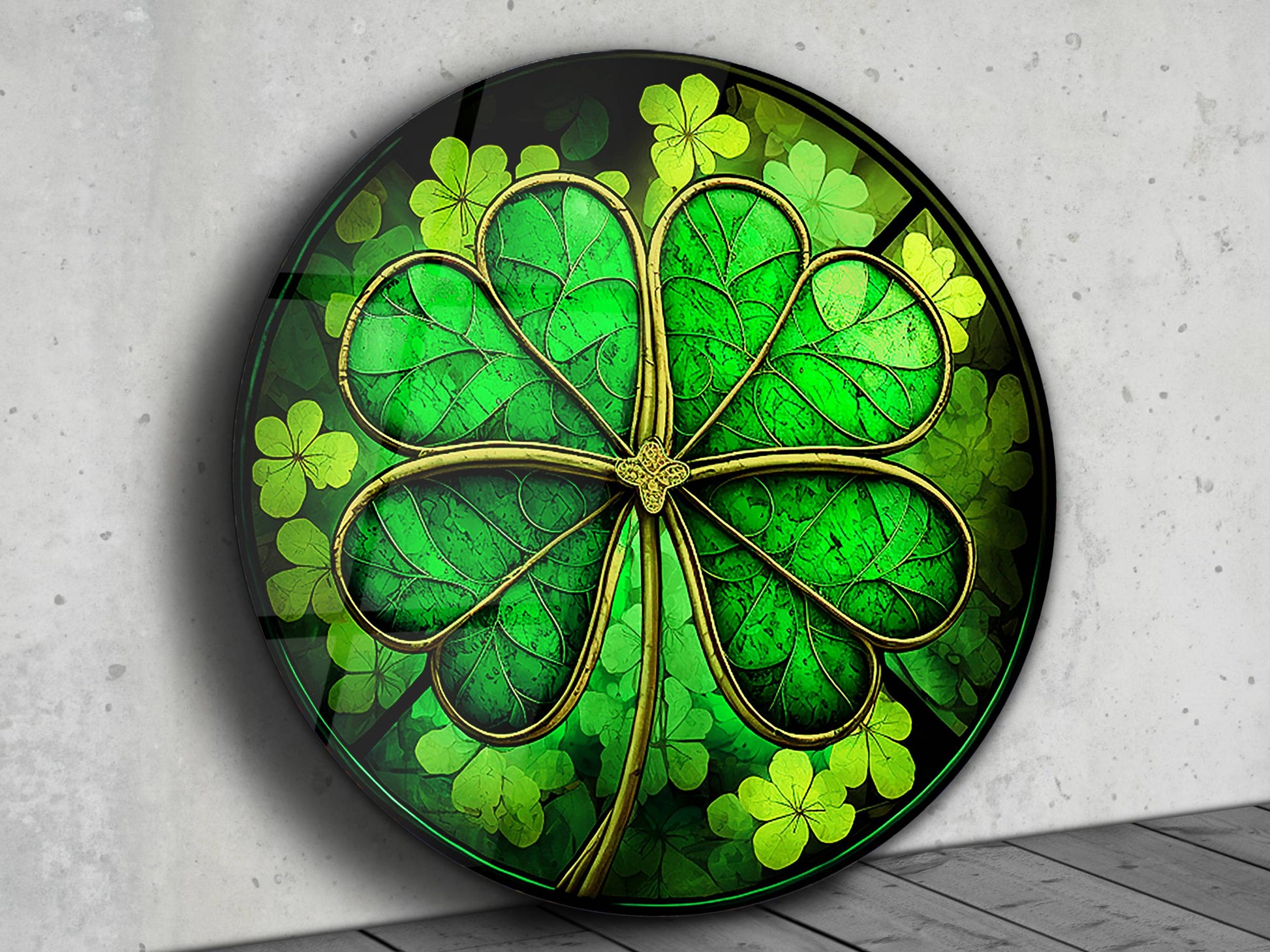 Dört Yapraklı Yonca Cam Tablo – Yuvarlak Spiritüel Duvar Dekoru