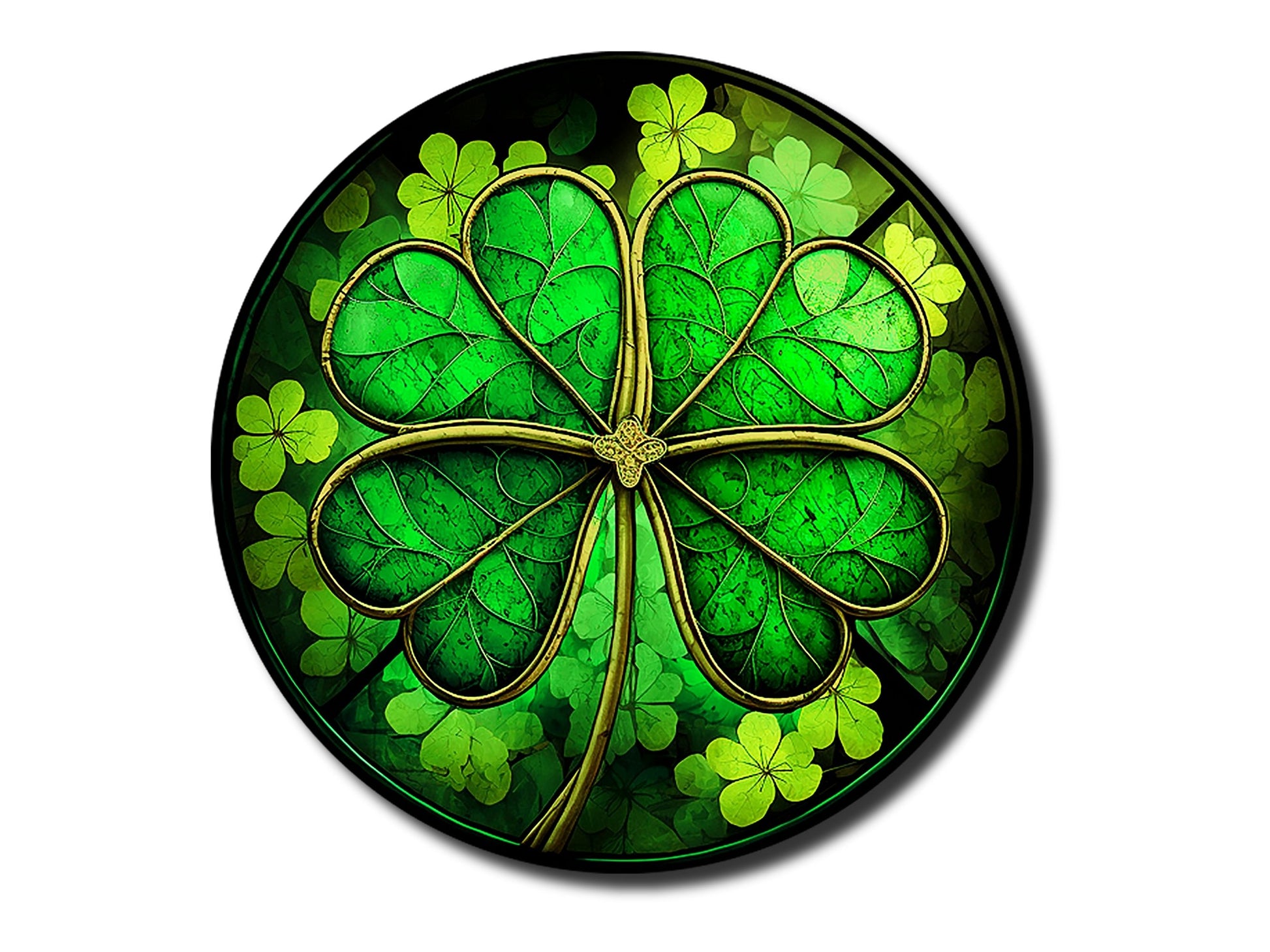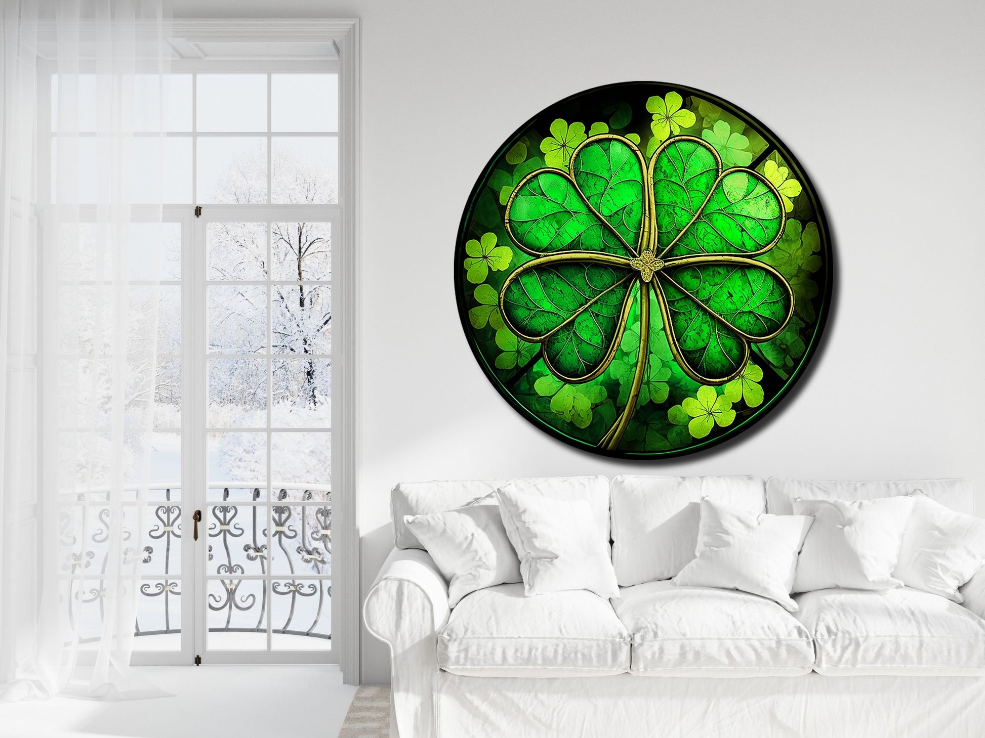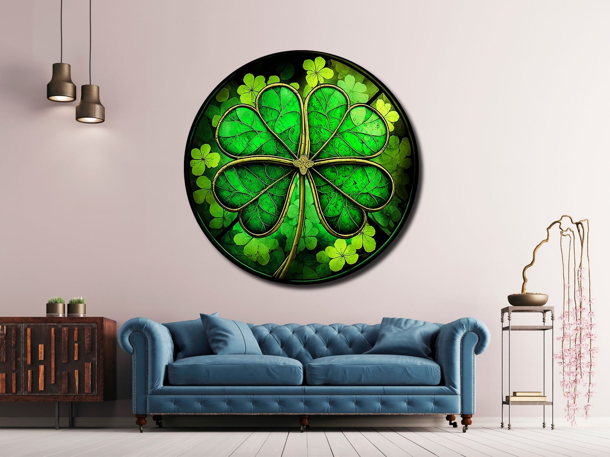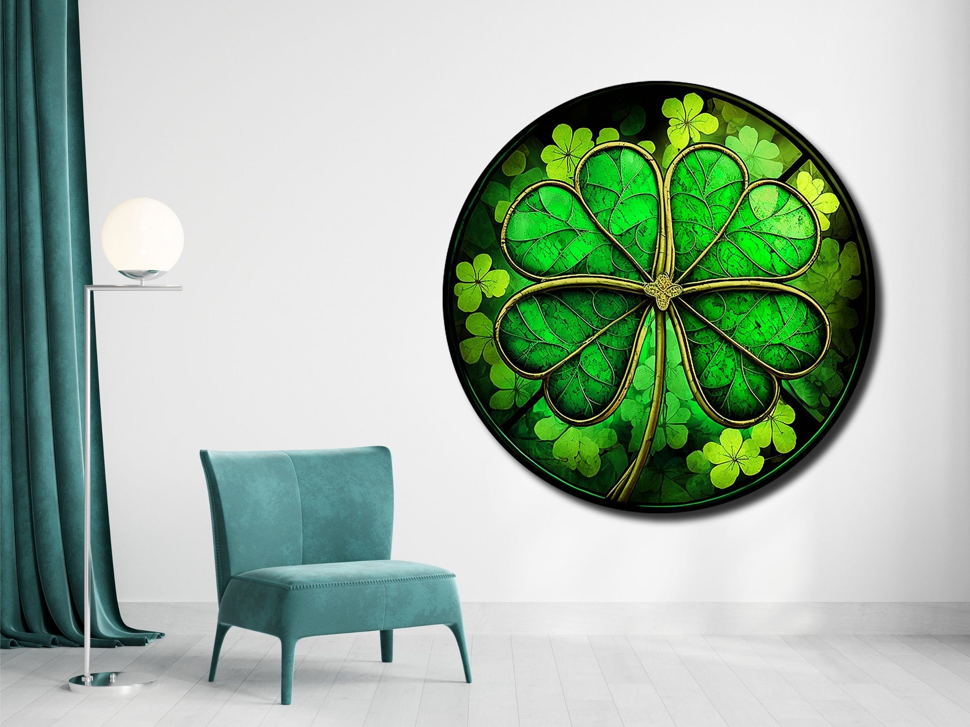 Dört Yapraklı Yonca Cam Tablo – Yuvarlak Spiritüel Duvar Dekoru