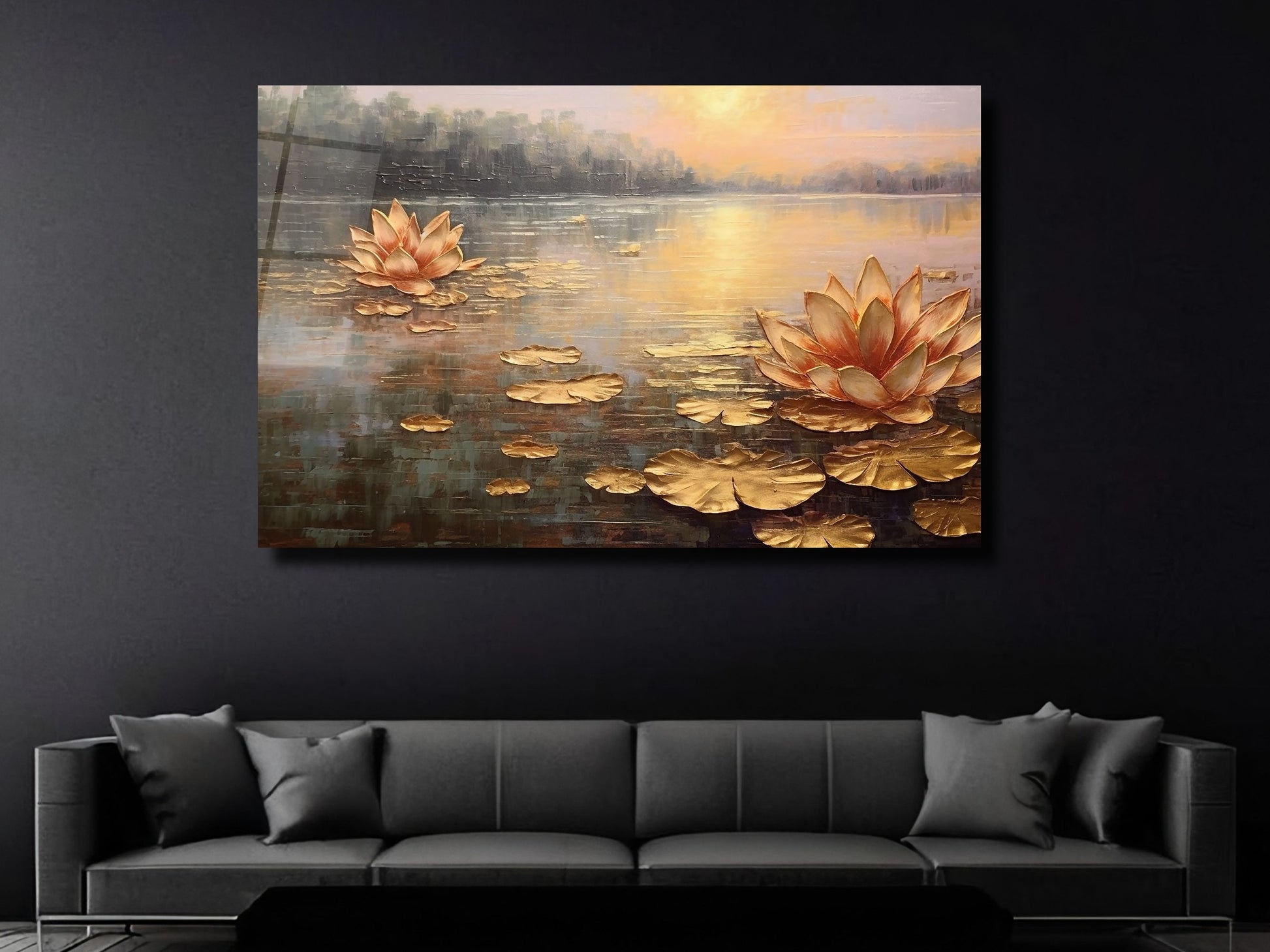 Gold Lotus Cam Tablo - Dekoratif Tablo