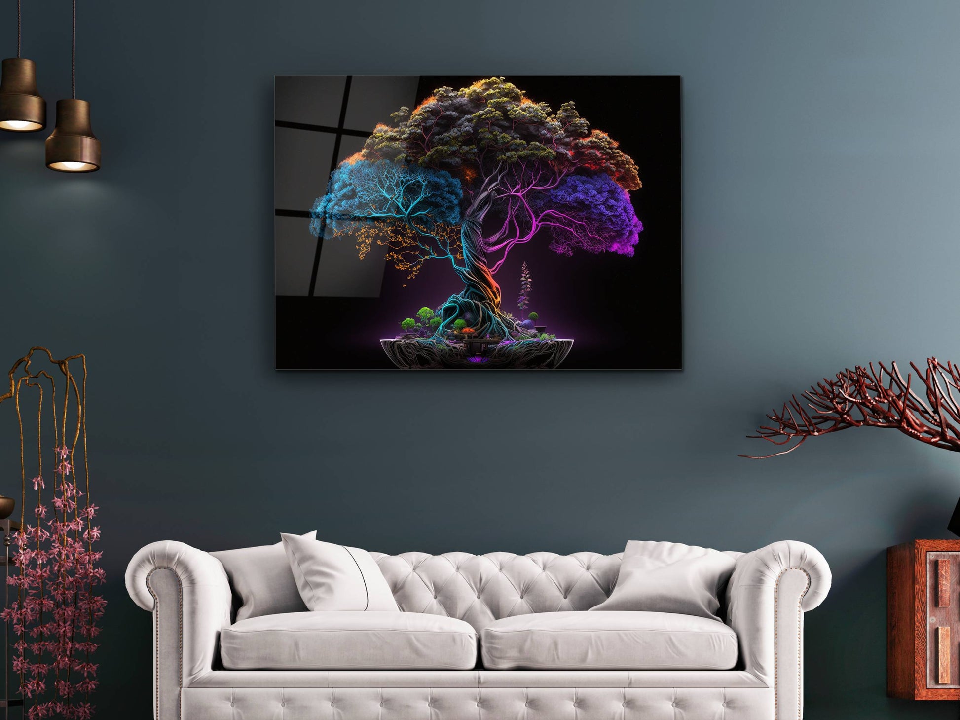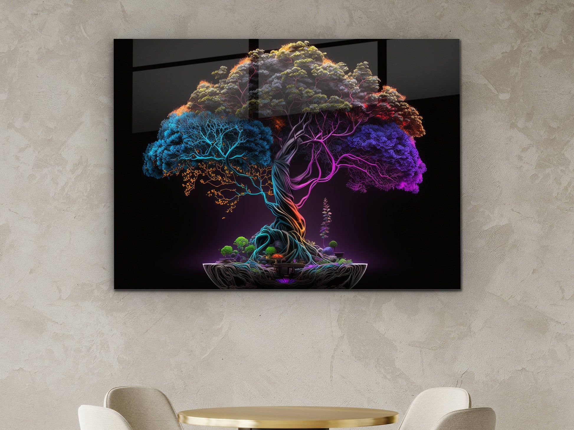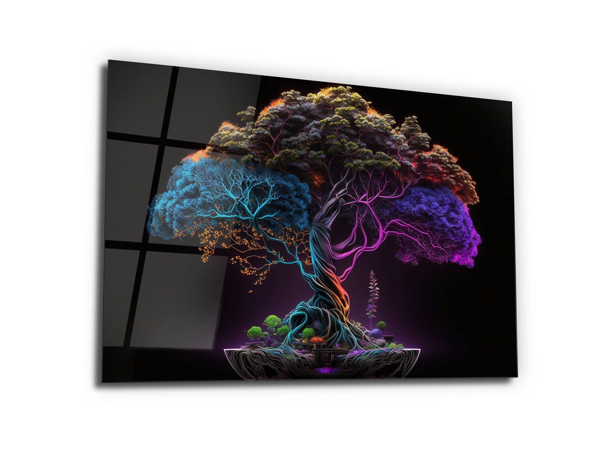Hayat Ağacı Cam Tablo - Renkli Ağaç Cam Duvar Dekoru - Duvar Tablosu