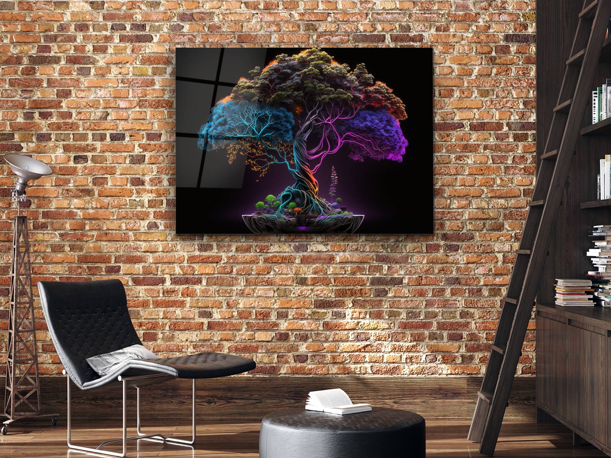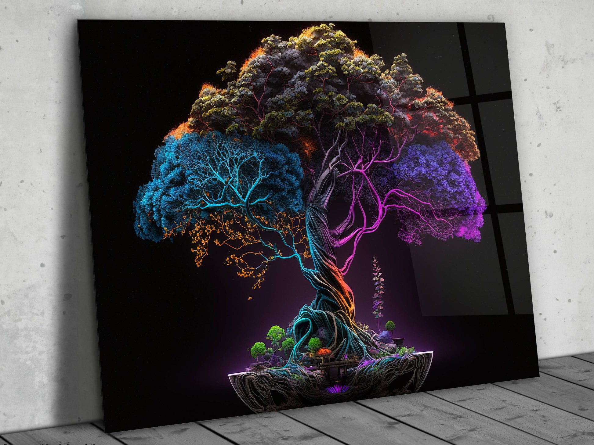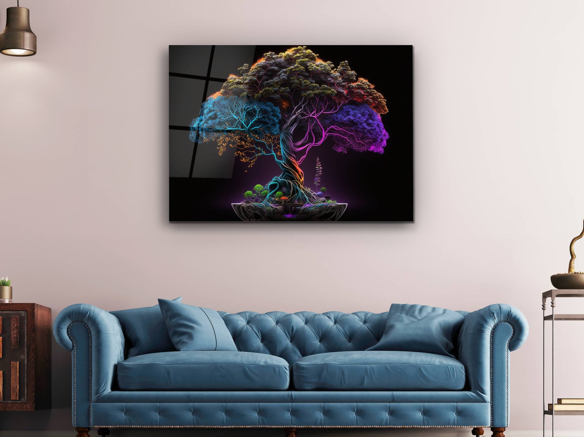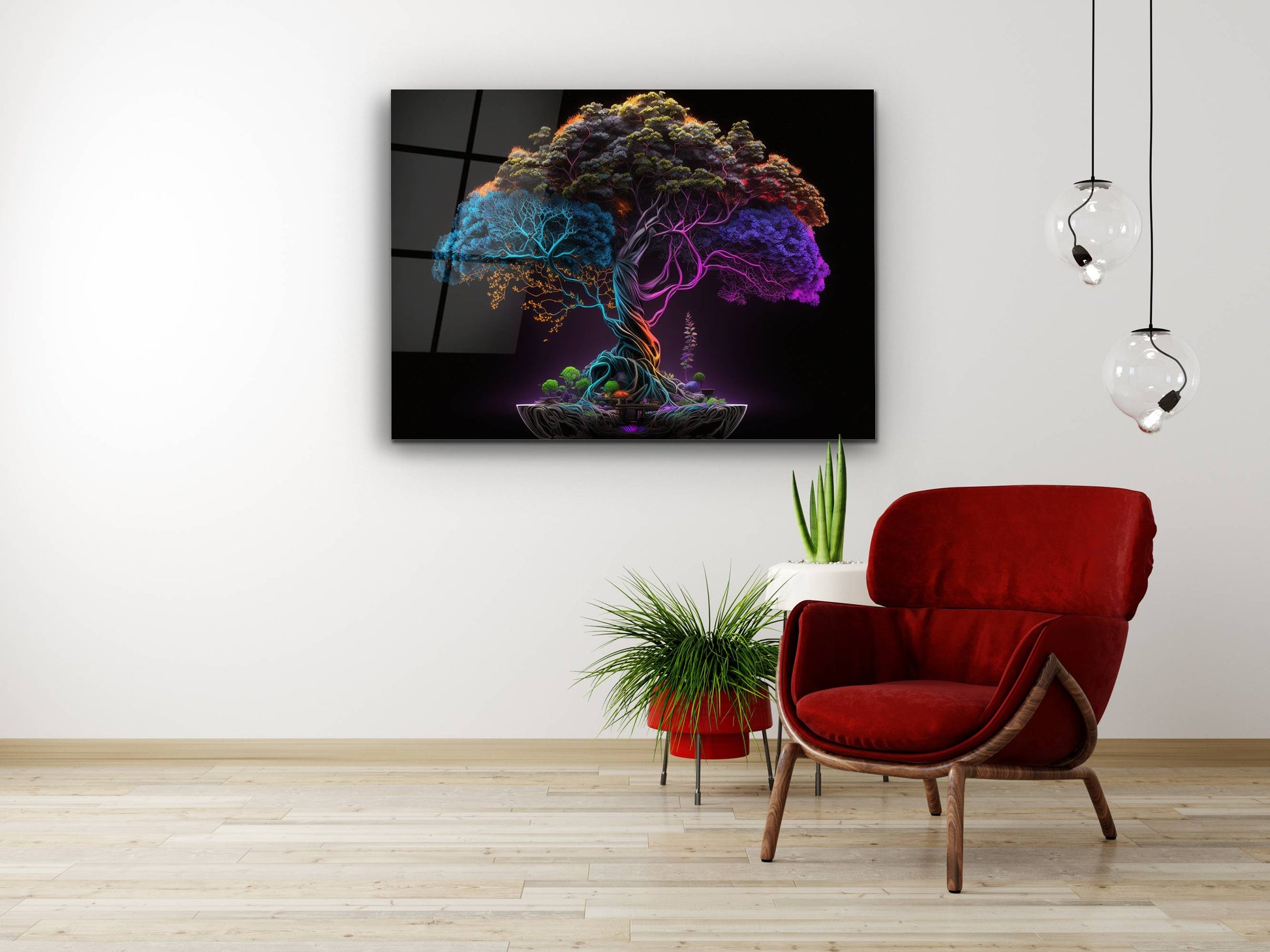 Hayat Ağacı Cam Tablo - Renkli Ağaç Cam Duvar Dekoru - Duvar Tablosu