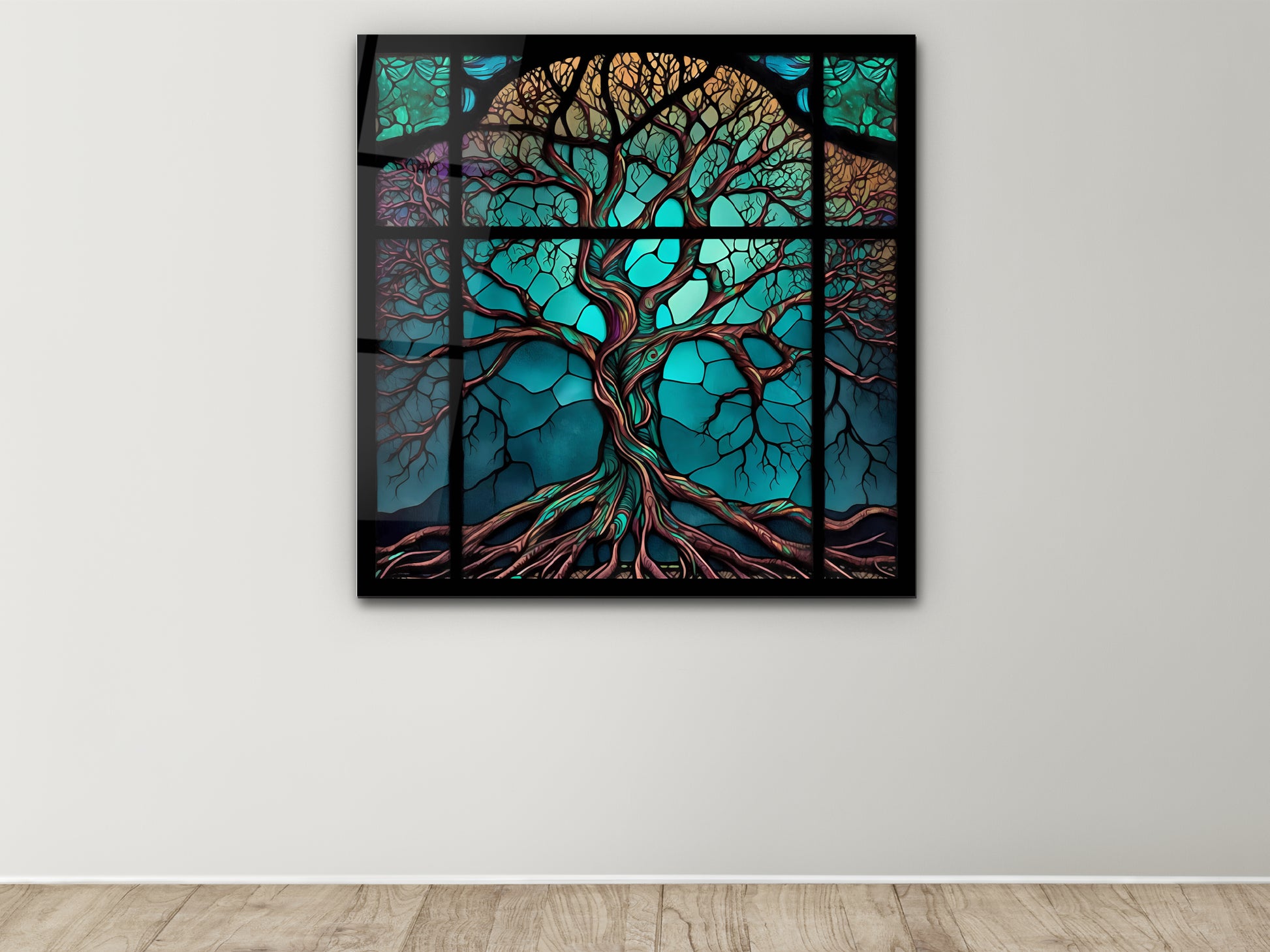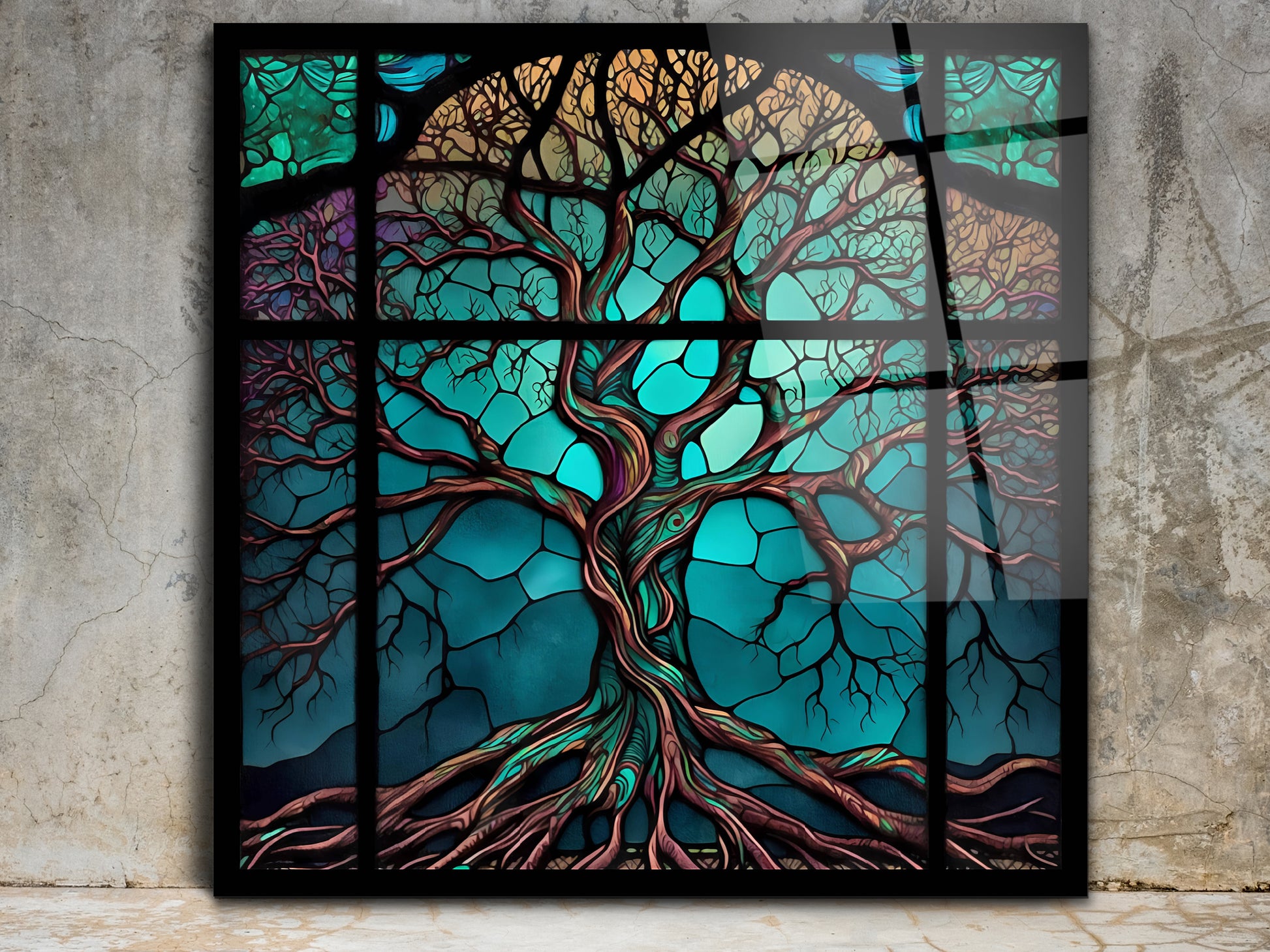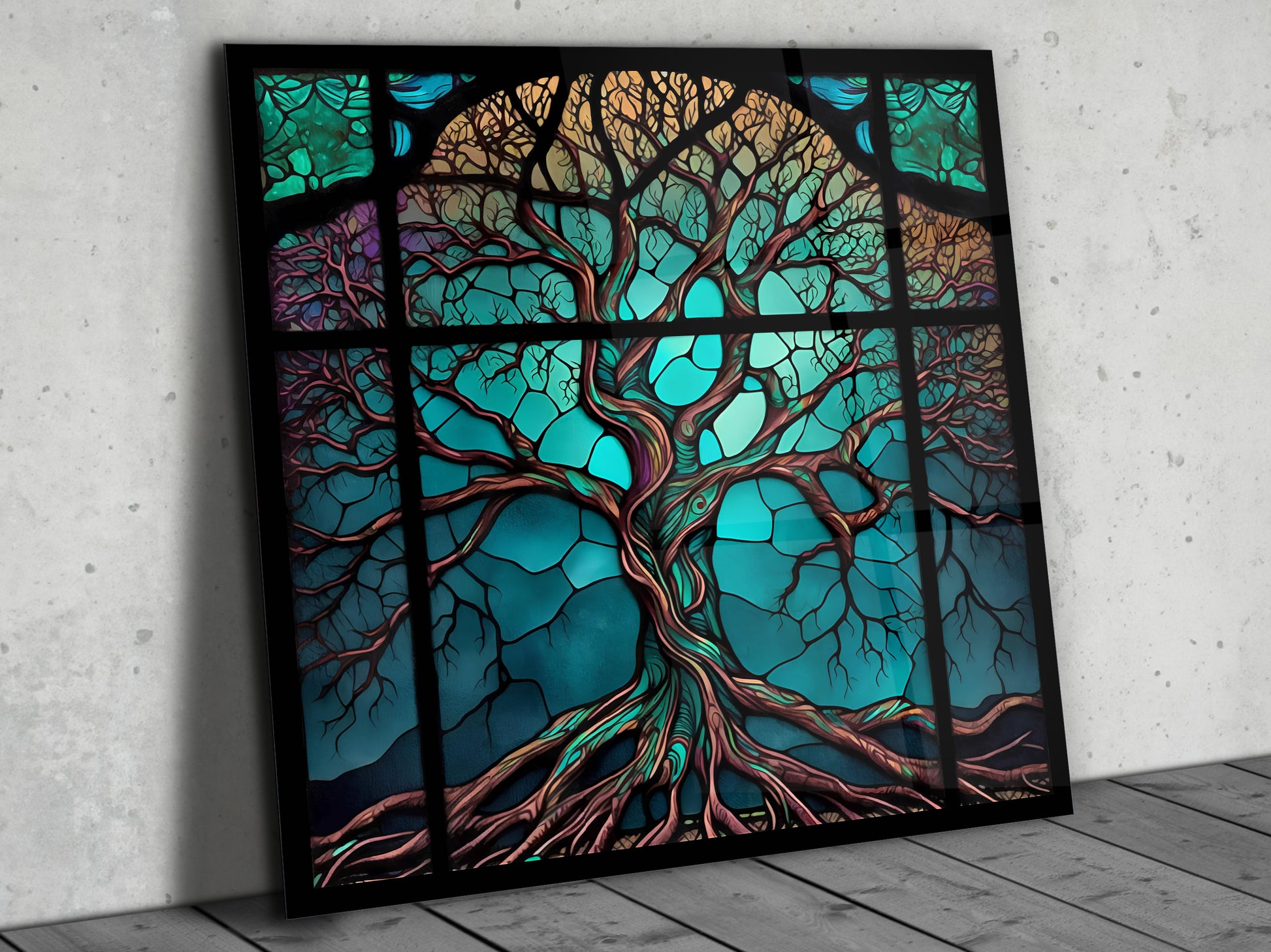 Hayat Ağacı Cam Tablo – Renkli Vitray Desenli Dekoratif Tablo - Modern Ev ve Ofis Dekoru