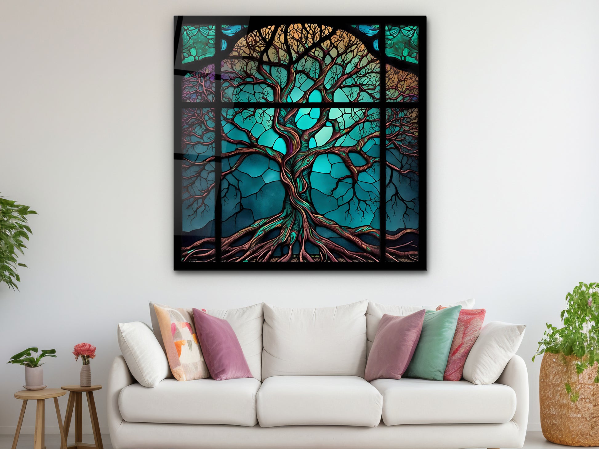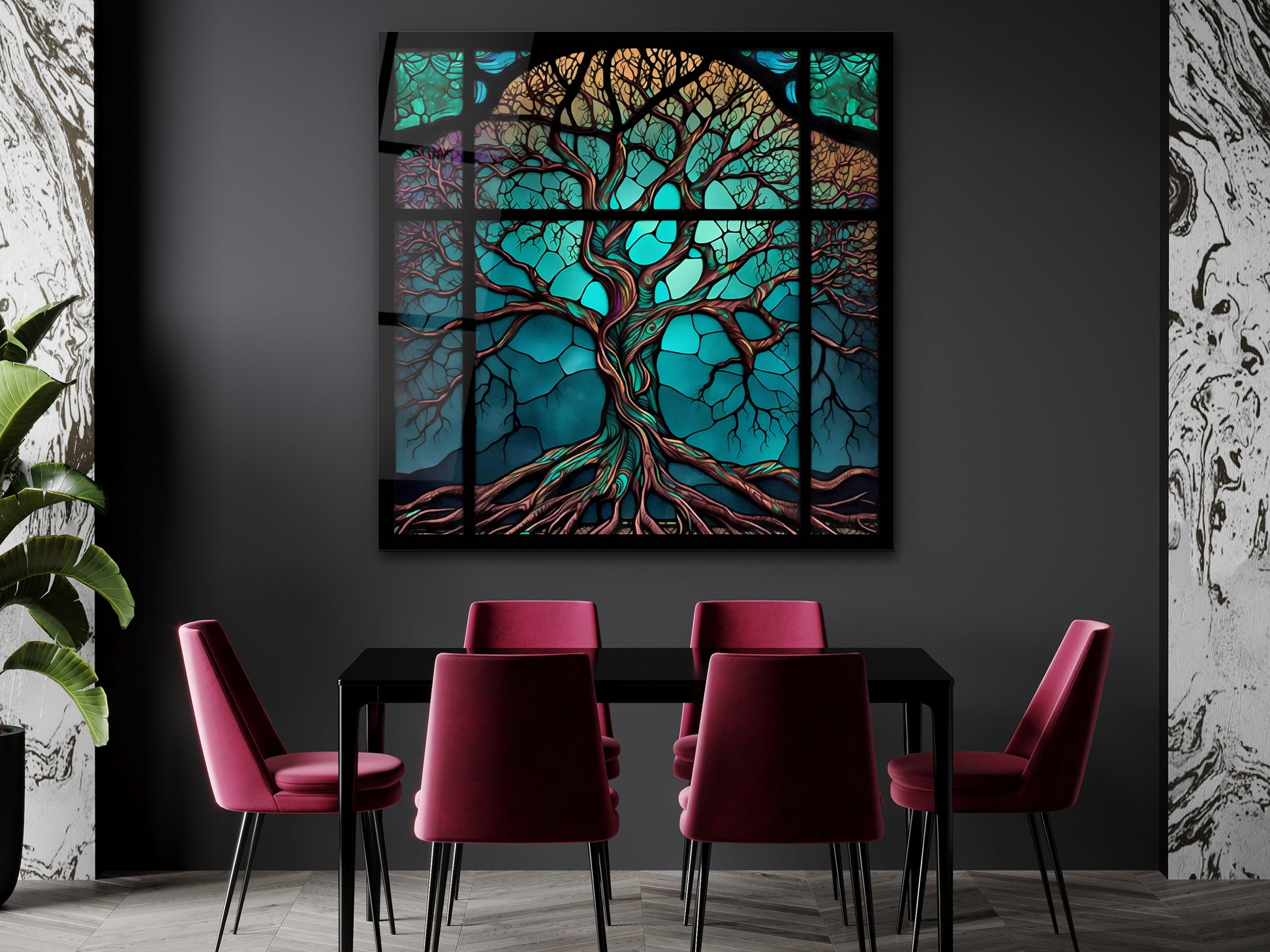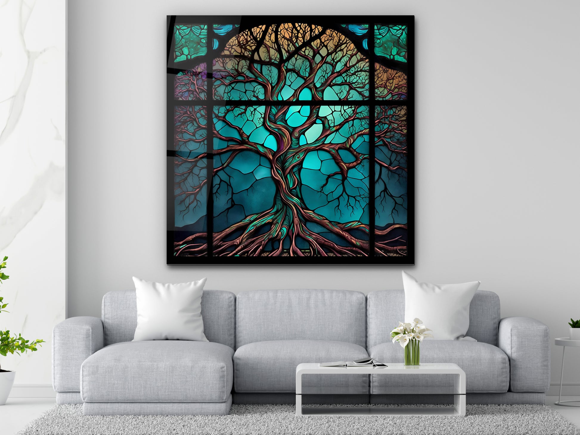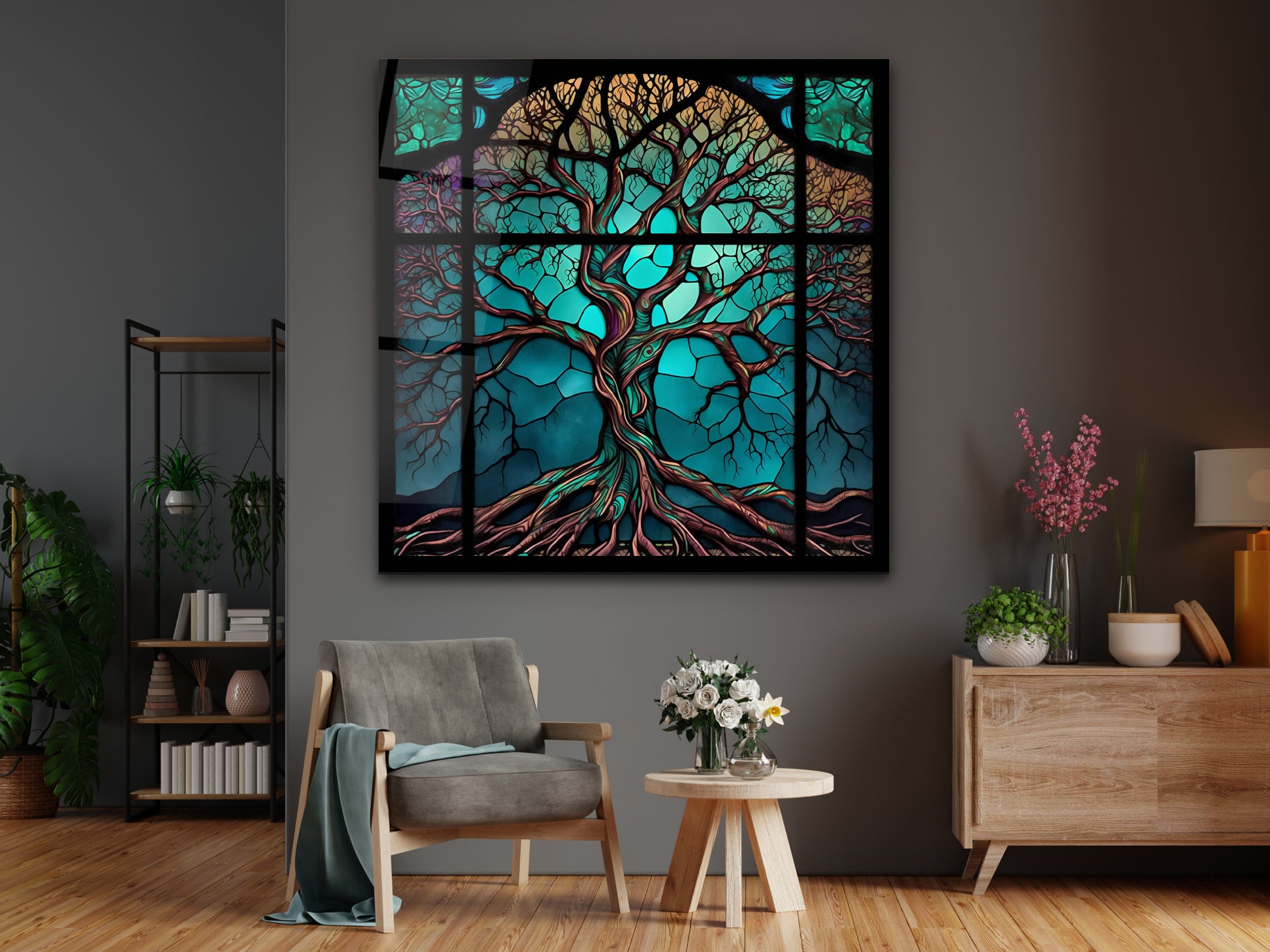 Hayat Ağacı Cam Tablo – Renkli Vitray Desenli Dekoratif Tablo - Modern Ev ve Ofis Dekoru
