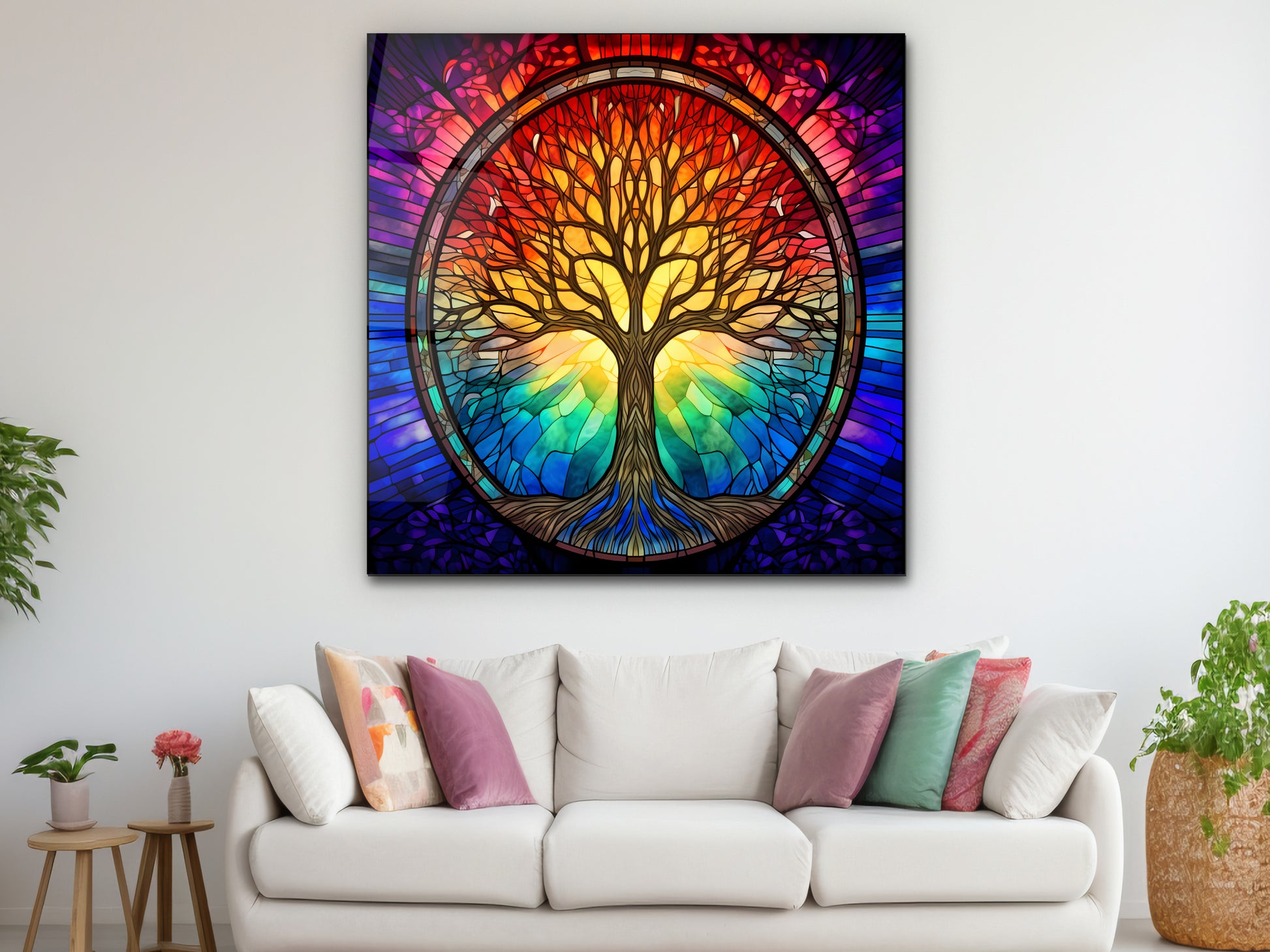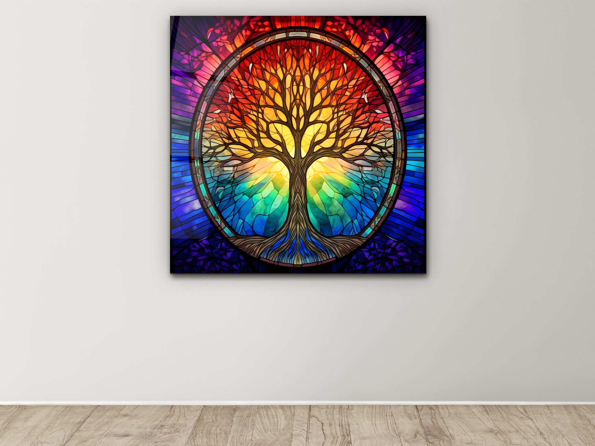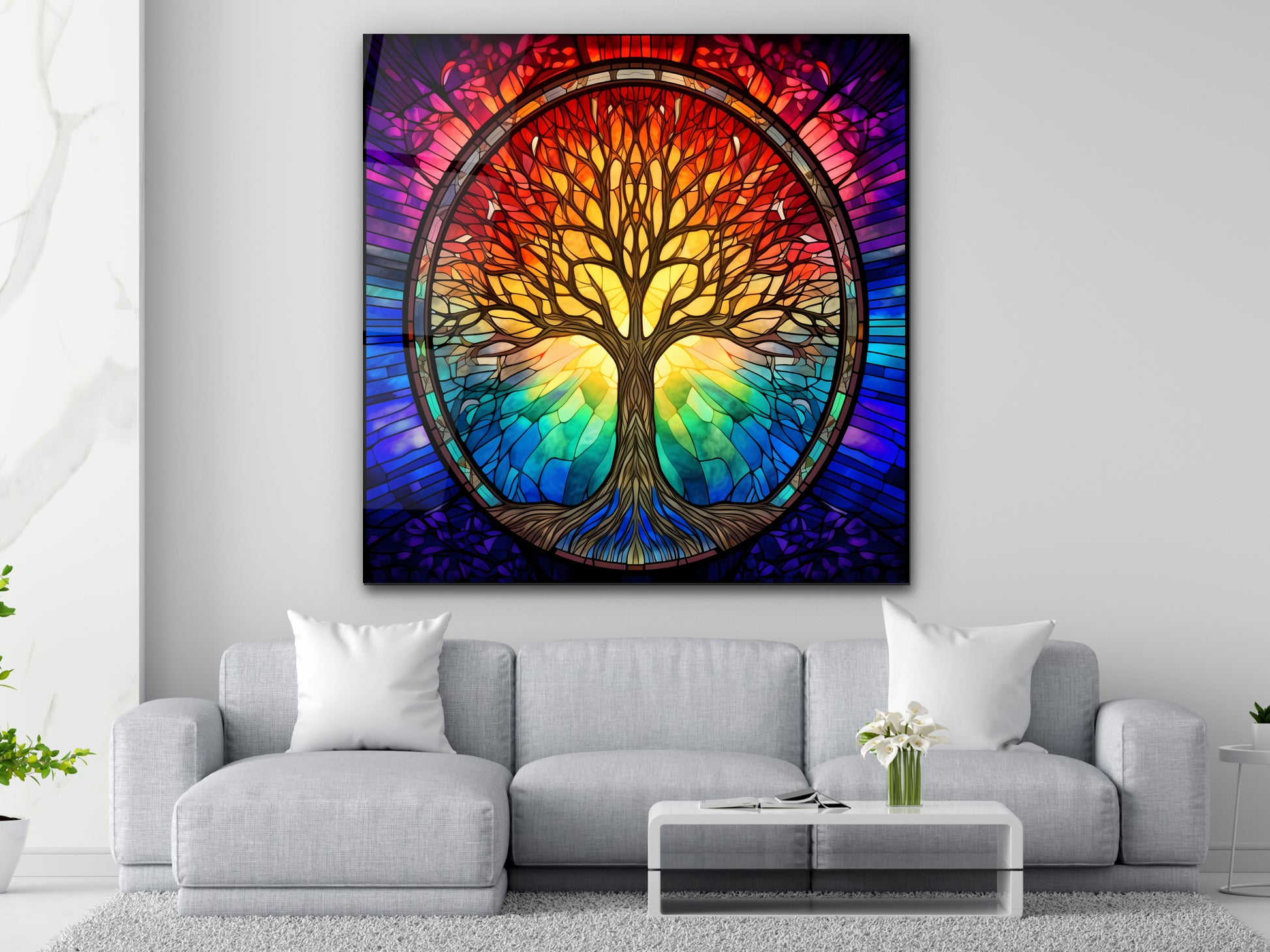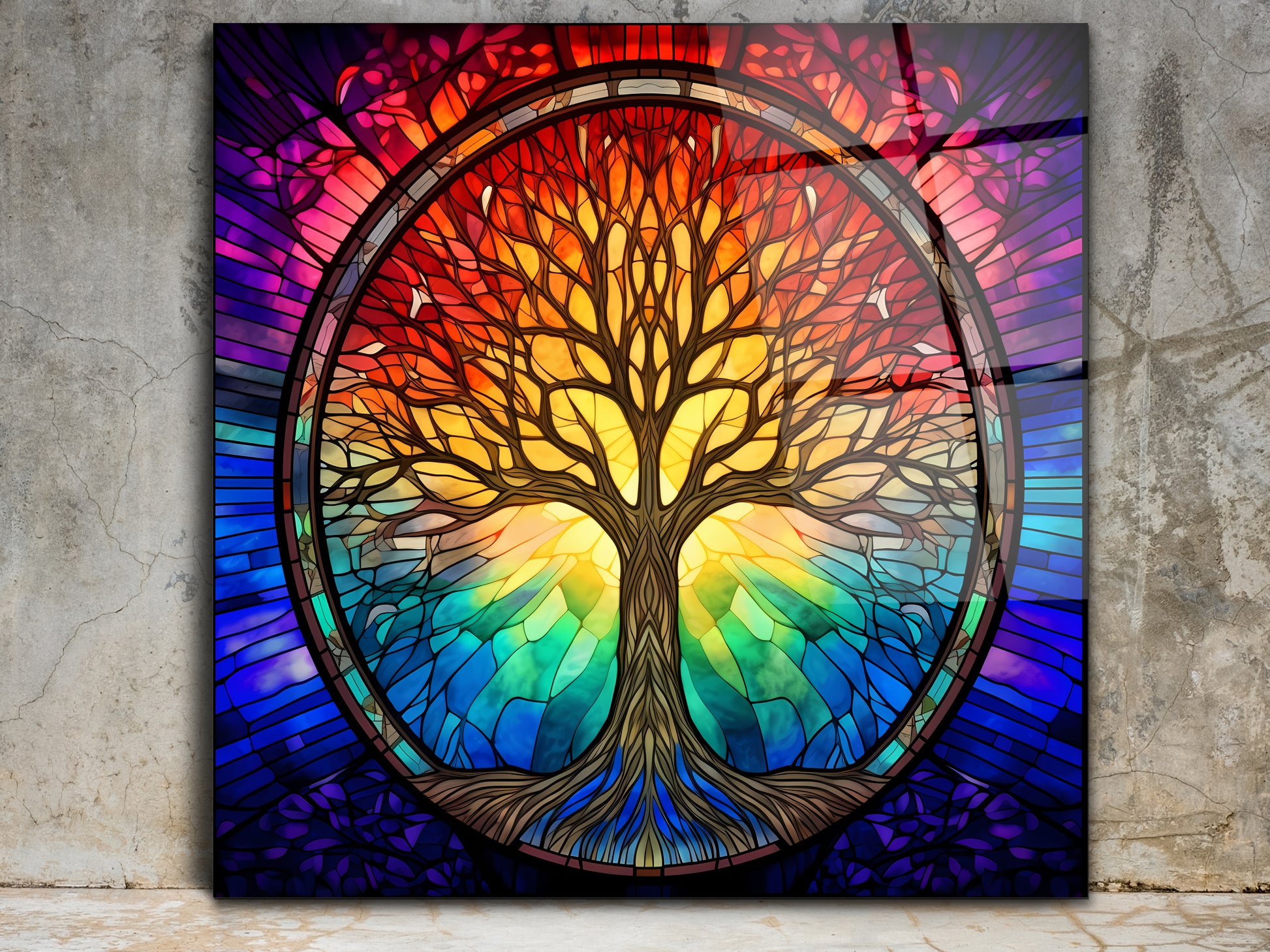 Hayat Ağacı Vitray Tasarım Cam Tablo – Spiritüel Duvar Dekoru