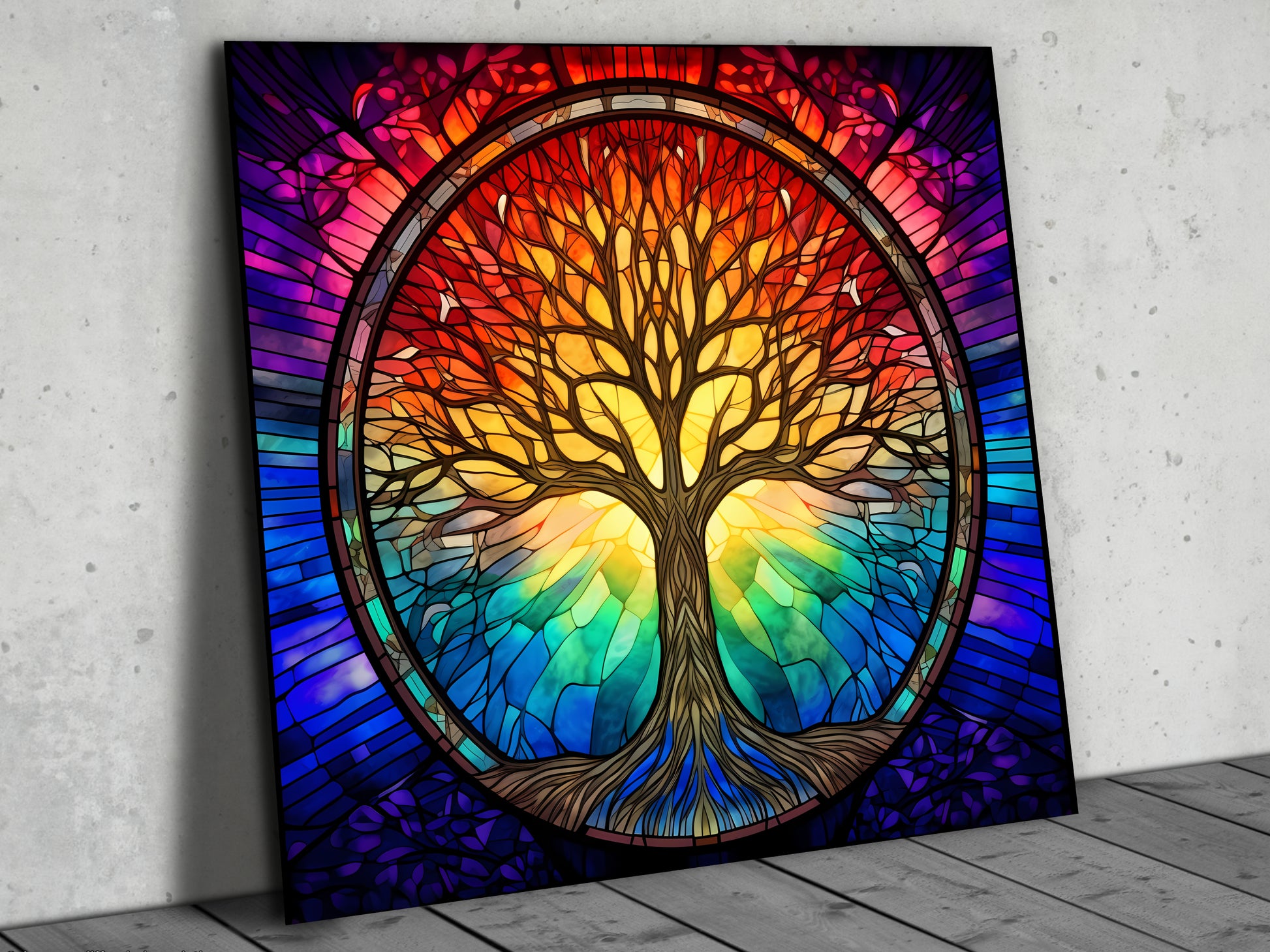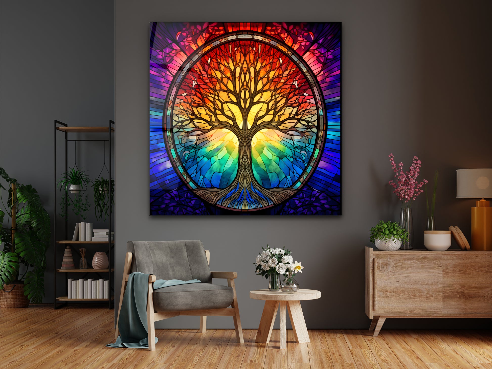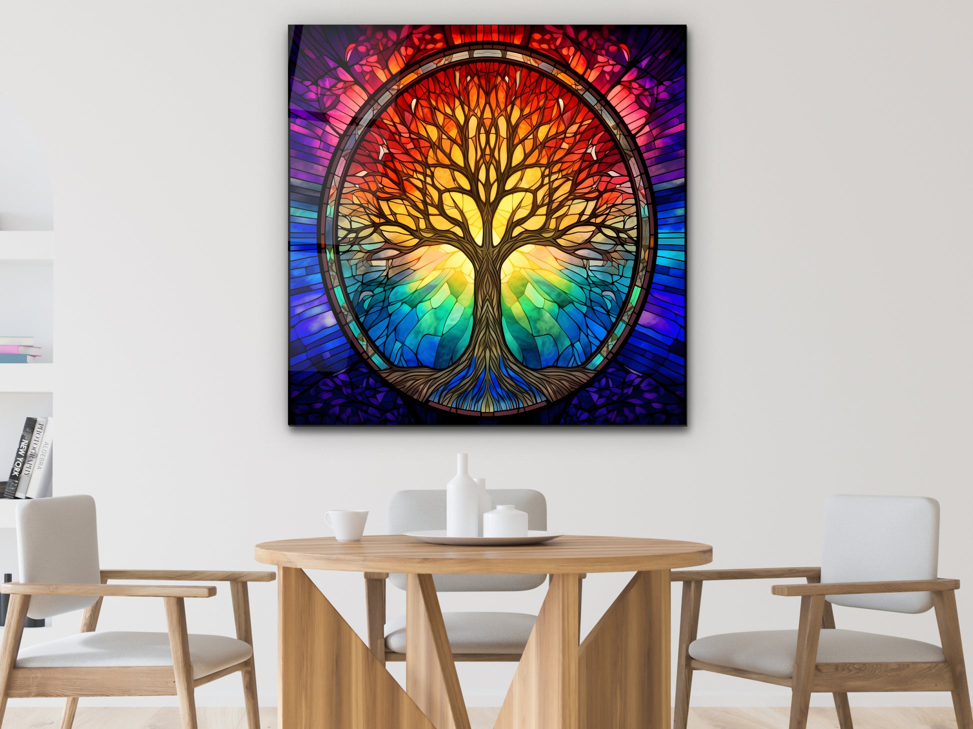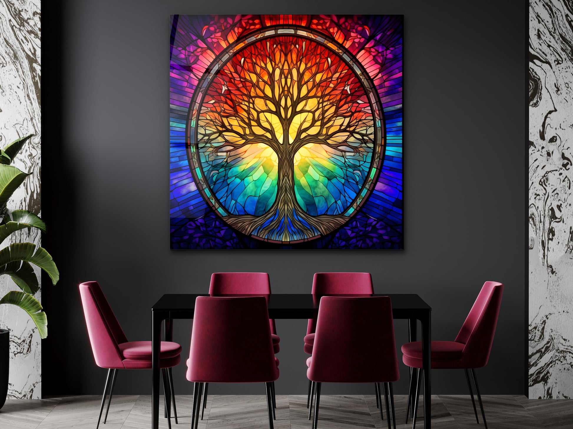 Hayat Ağacı Vitray Tasarım Cam Tablo – Spiritüel Duvar Dekoru