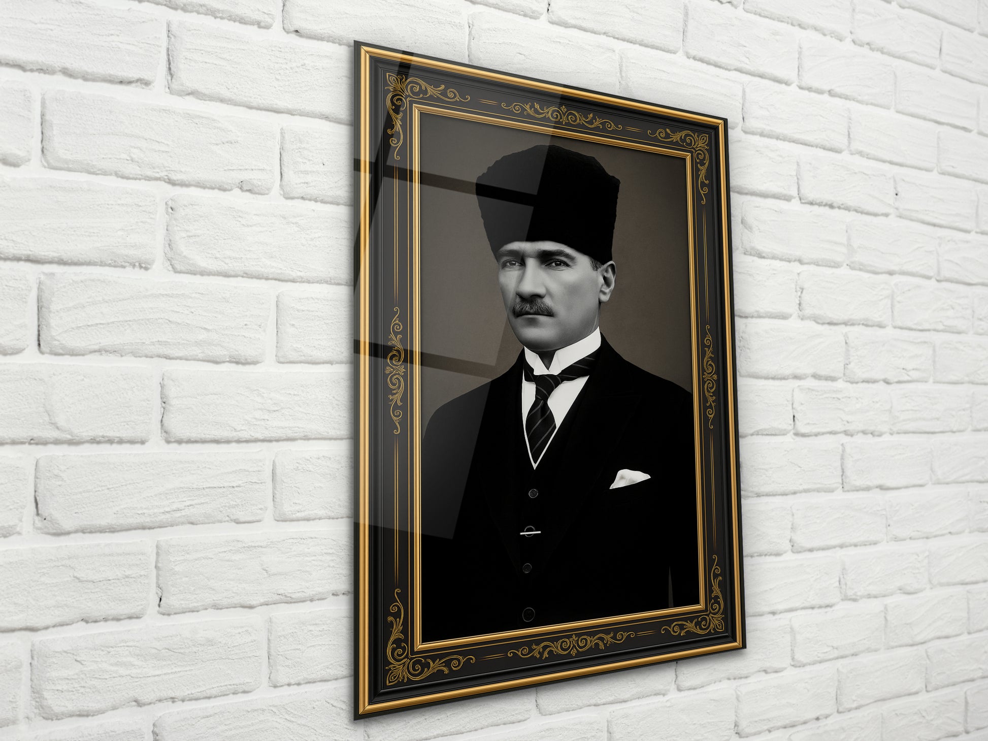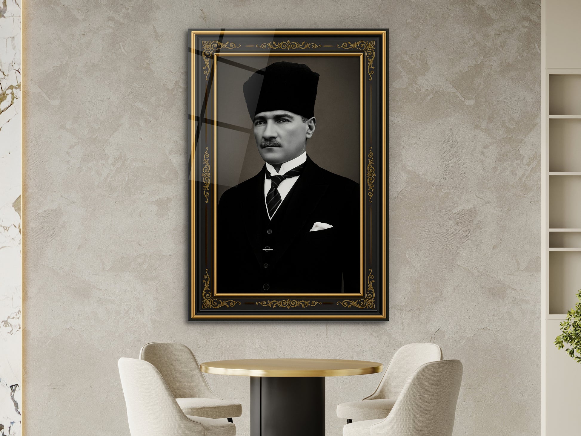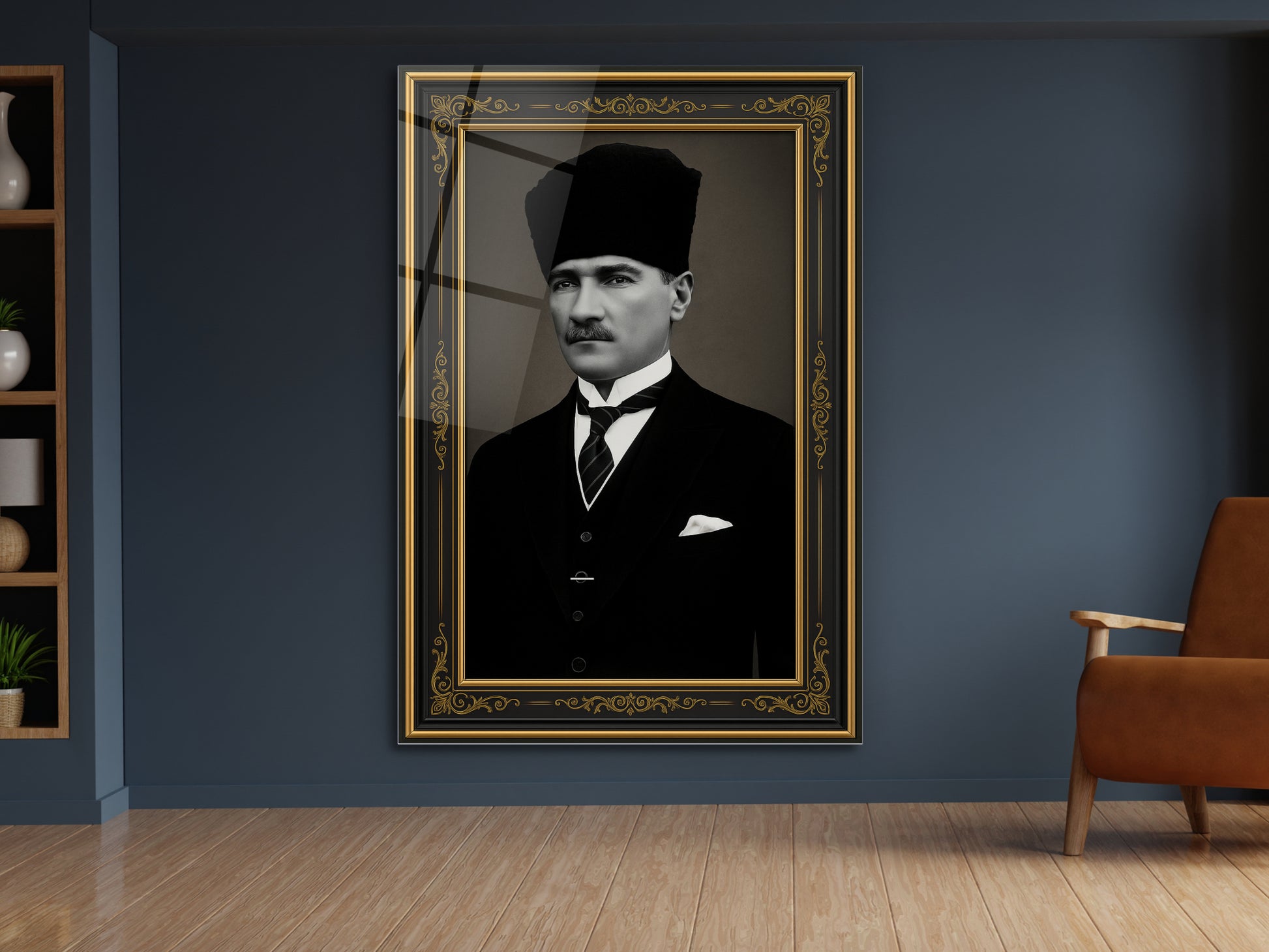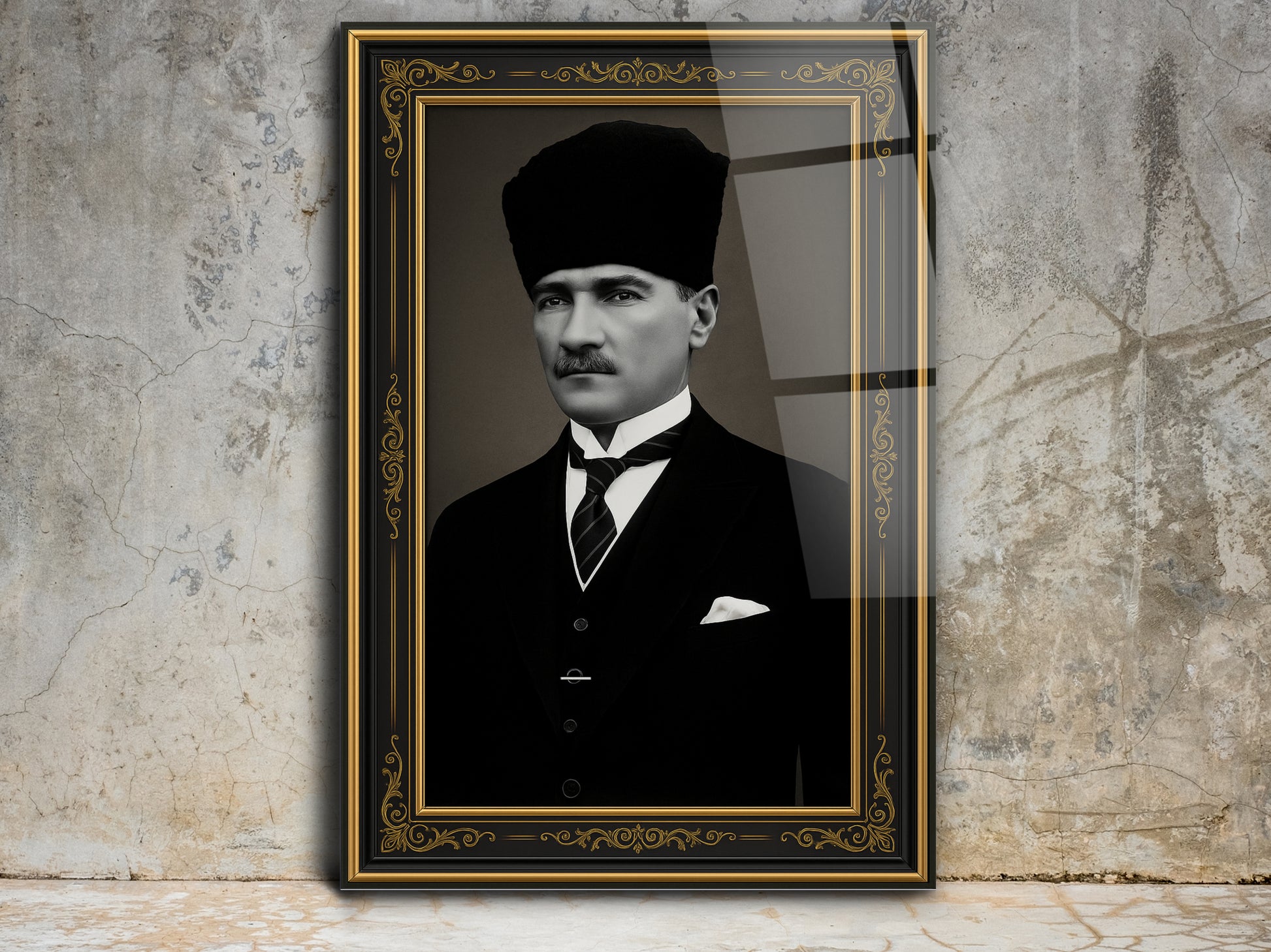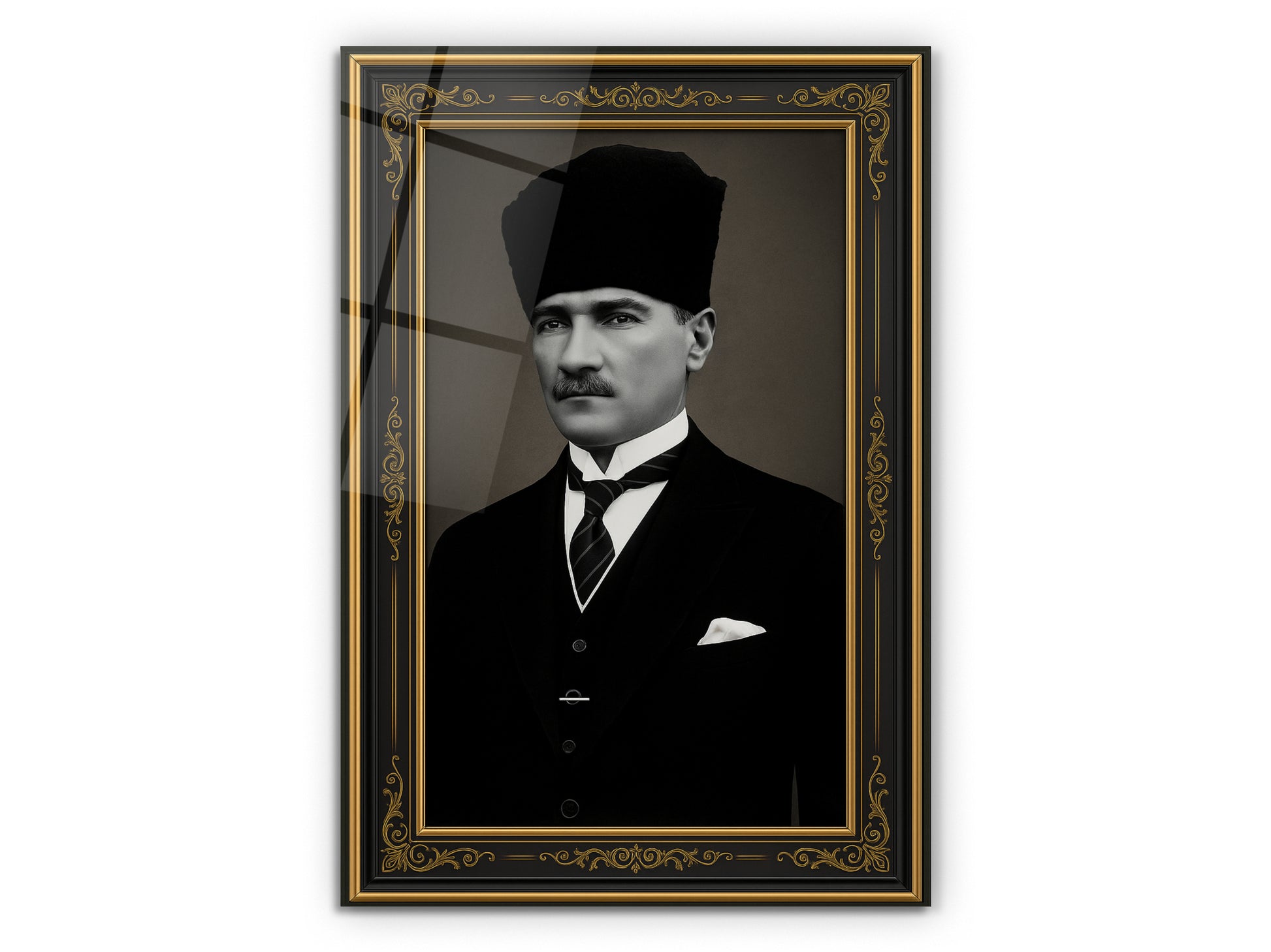 İmzalı Atatürk Portresi Cam Tablo - Atatürk Tablosu - Modern Ev ve Ofis Dekoru