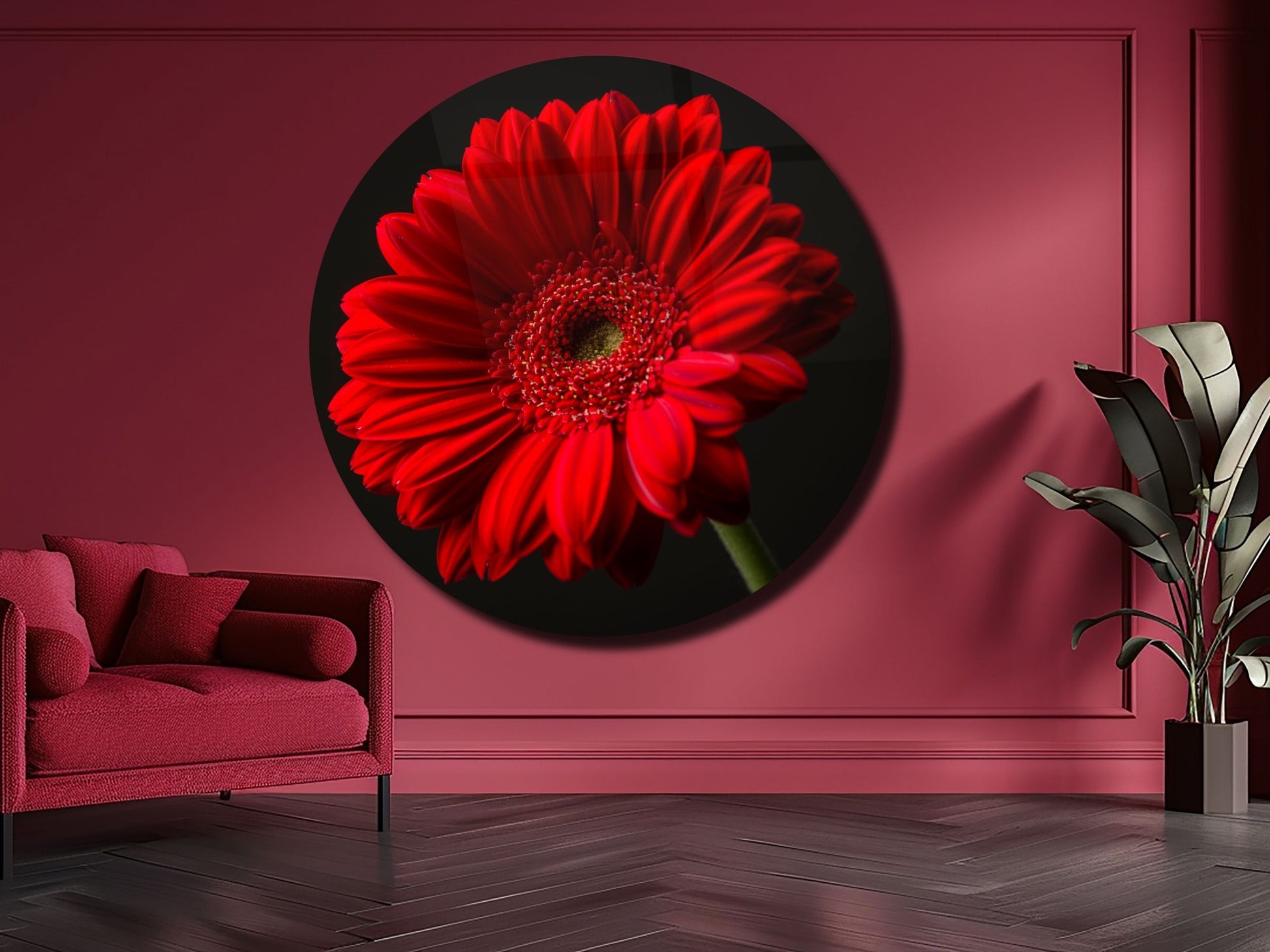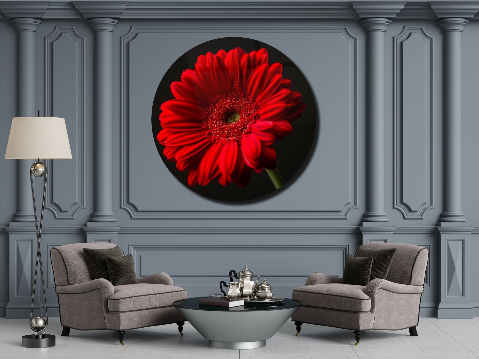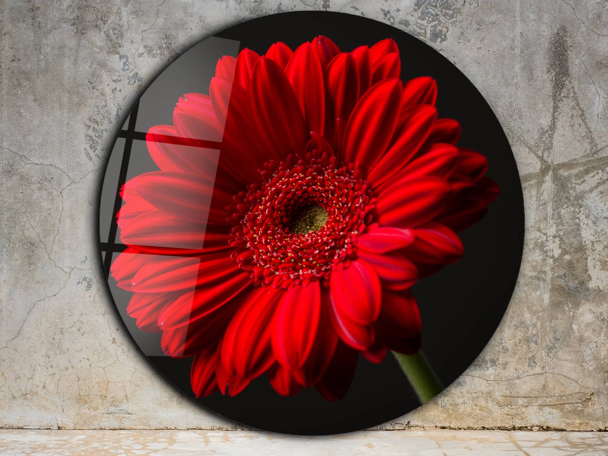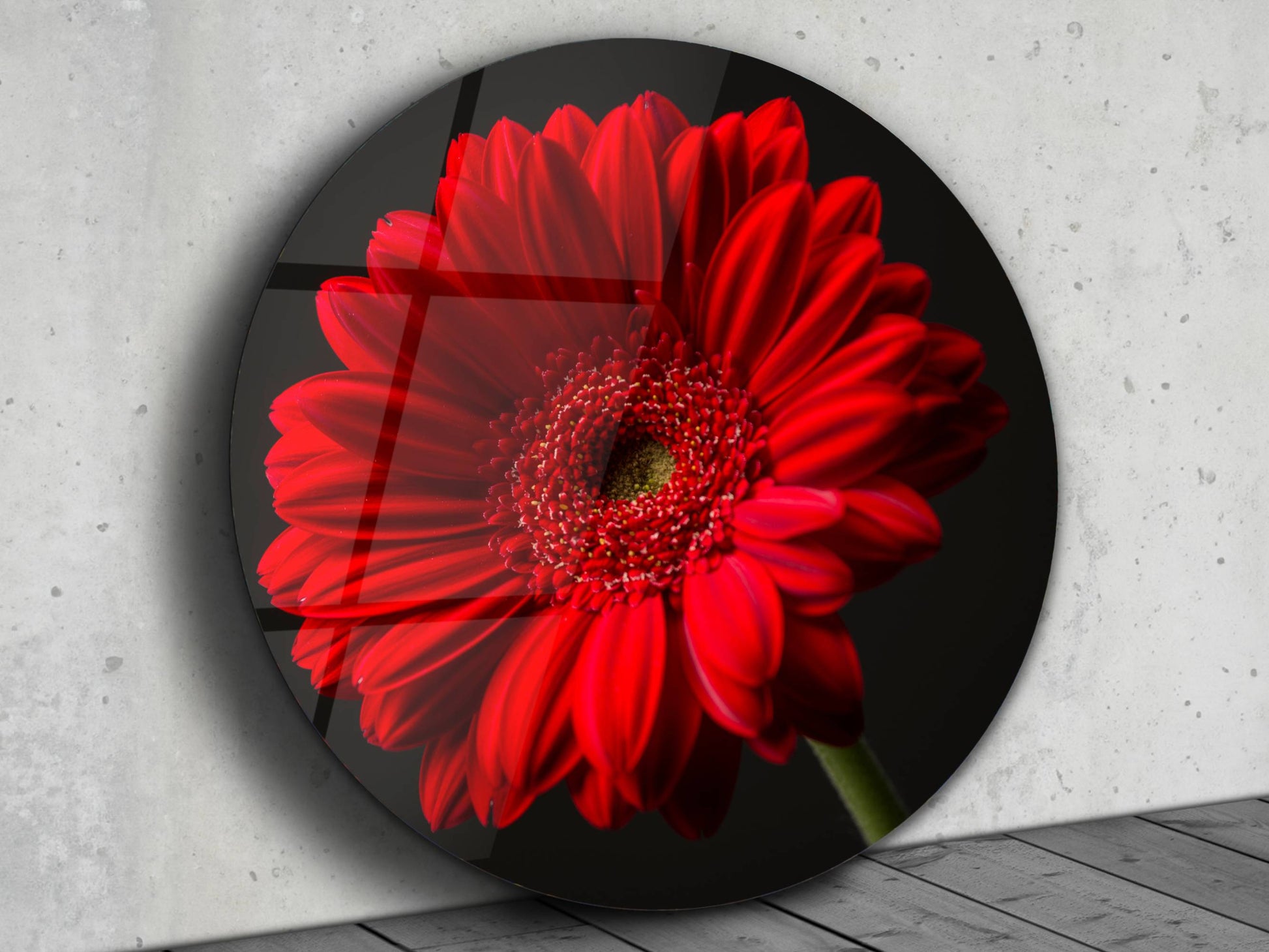 Kırmızı Karanfi Cam Tablo - Yuvarlak Modern Çiçek Duvar Dekoru
