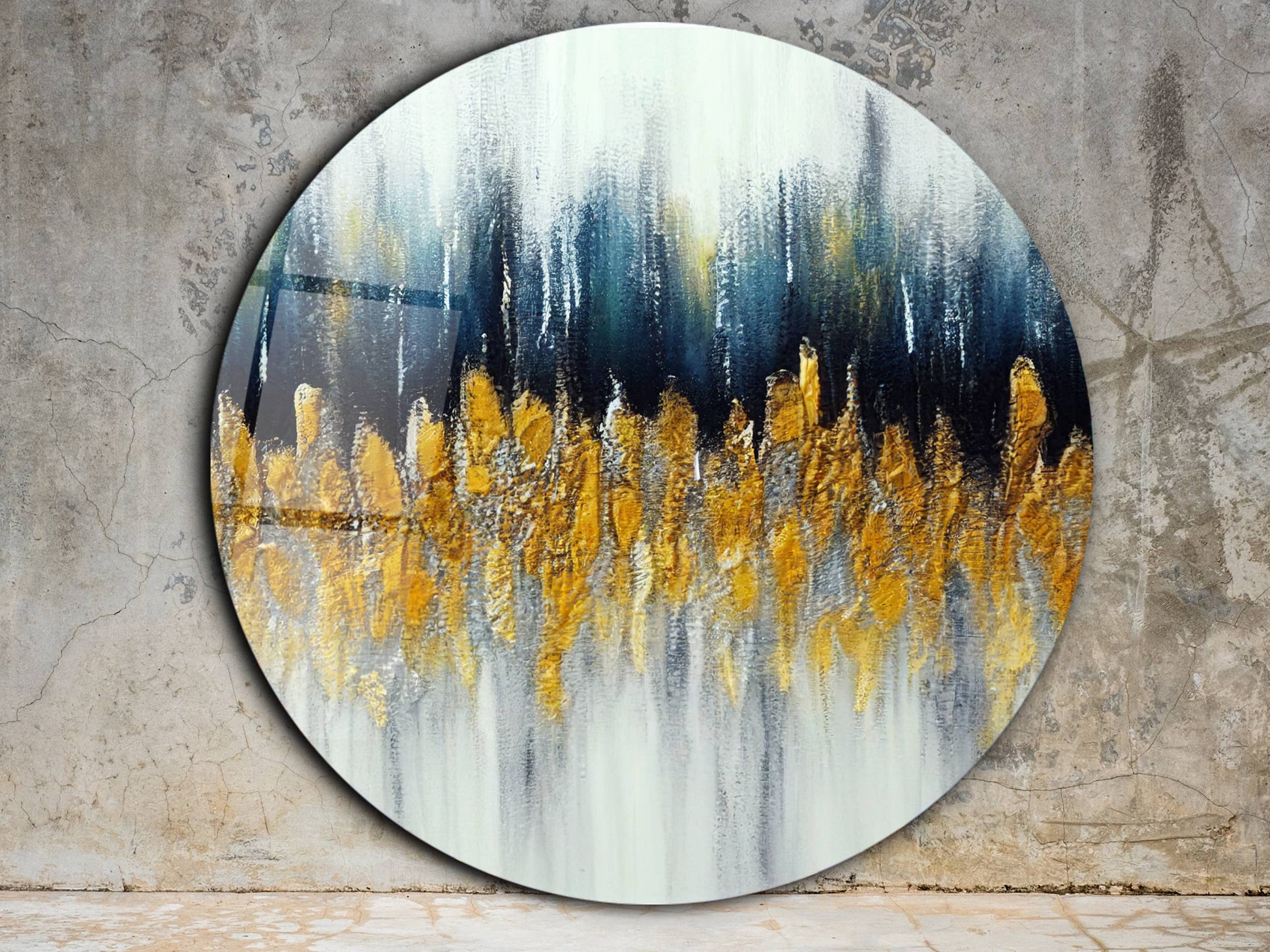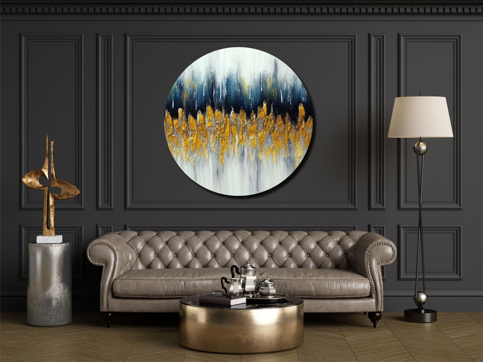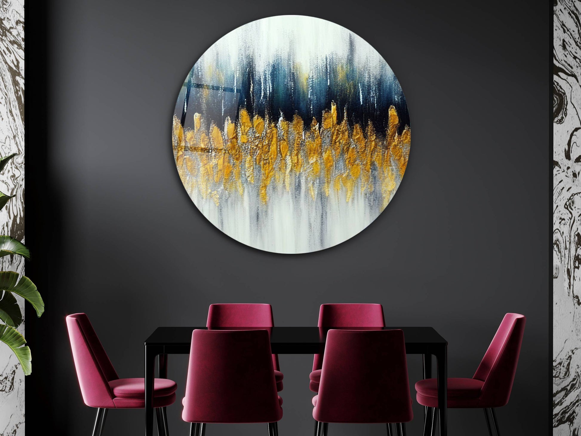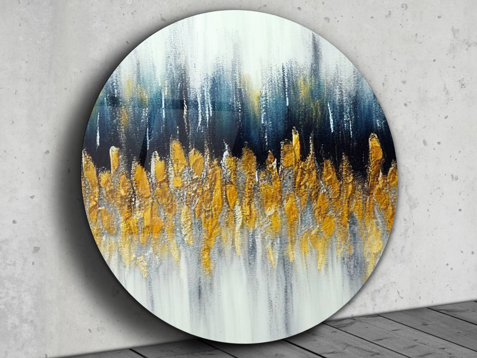 Lacivert ve Gold Soyut Cam Tablo – Modern Yuvarlak Tablo