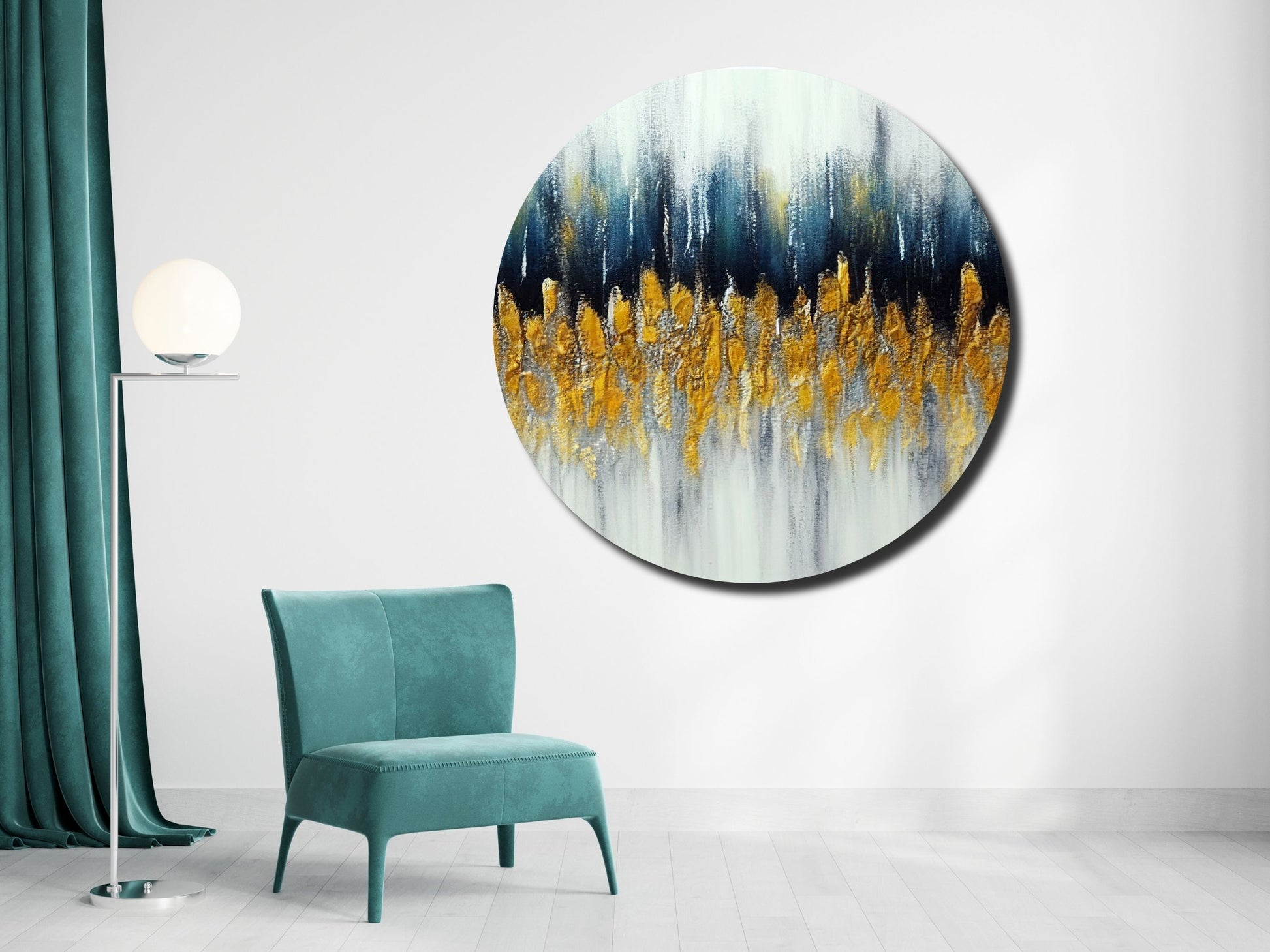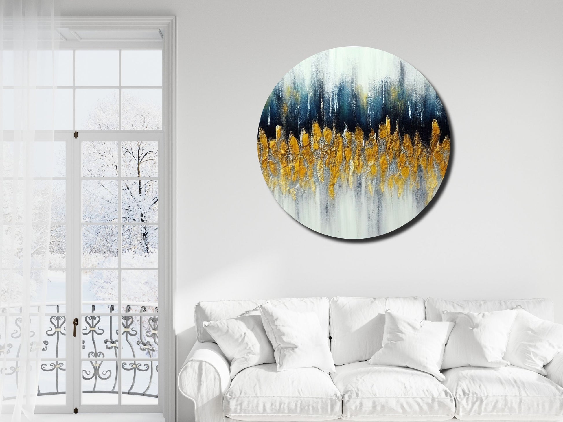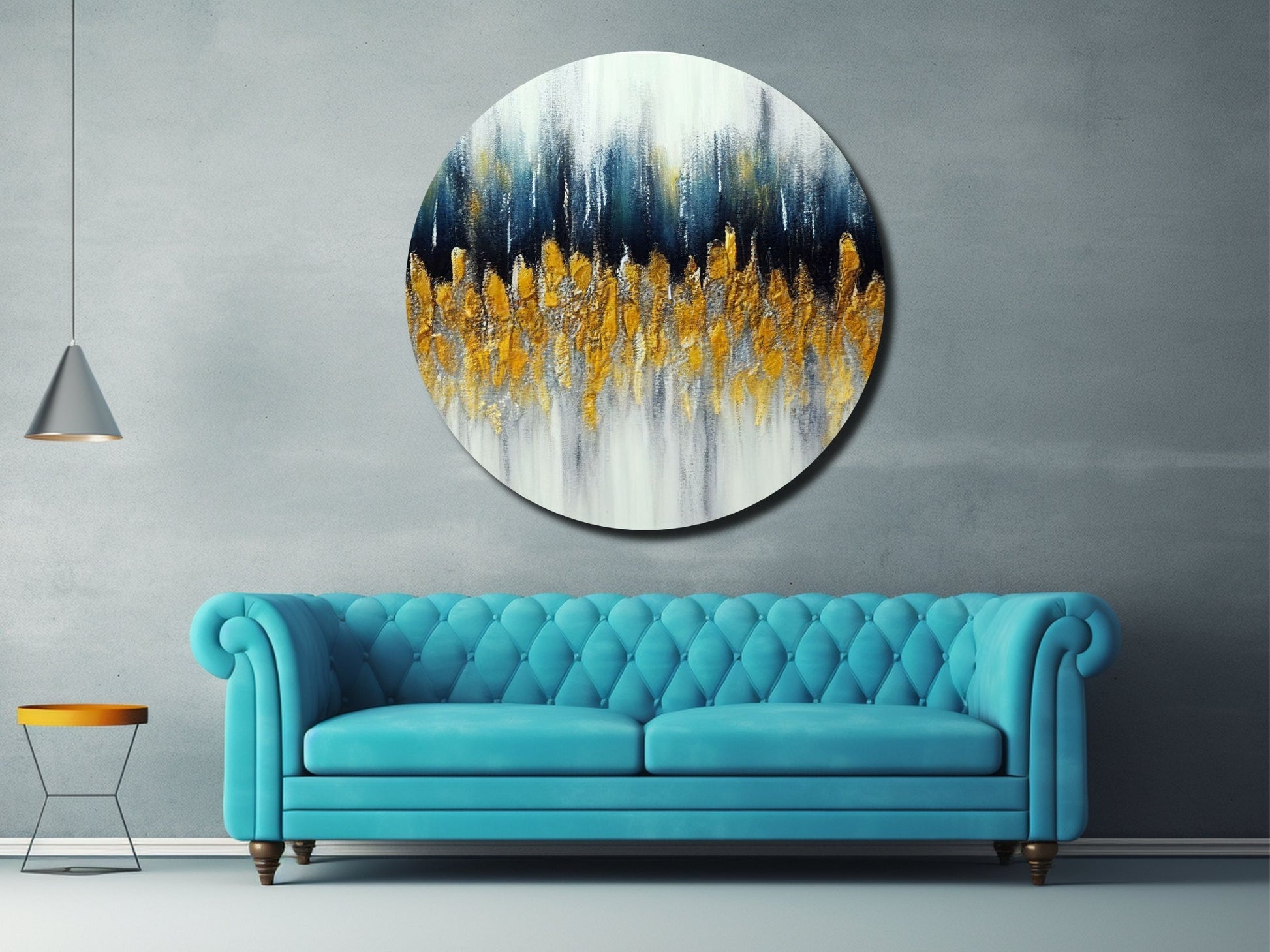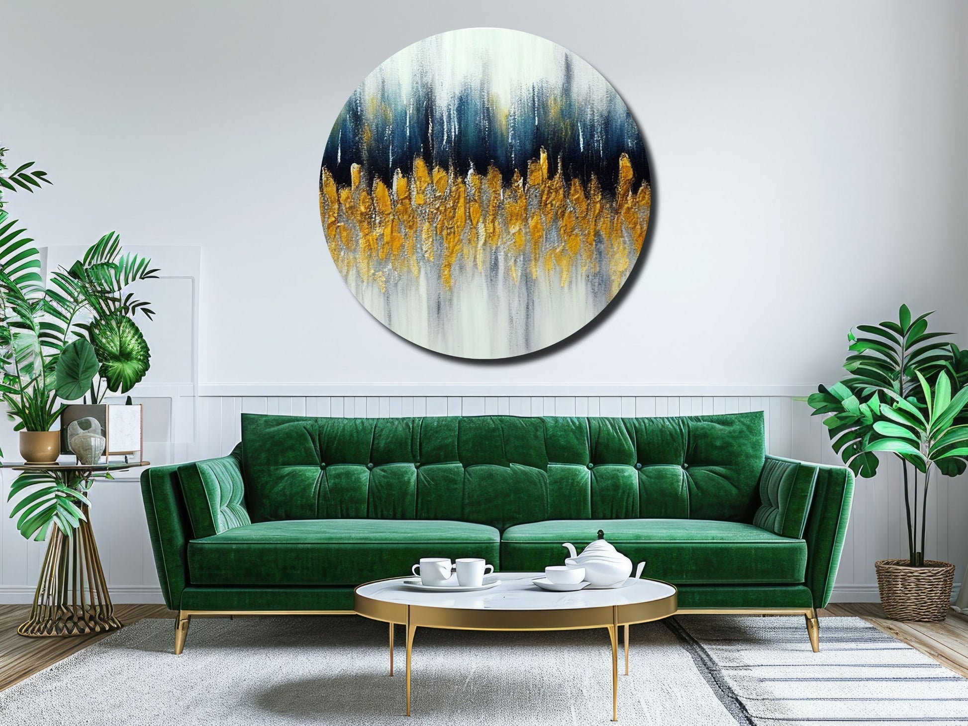 Lacivert ve Gold Soyut Cam Tablo – Modern Yuvarlak Tablo