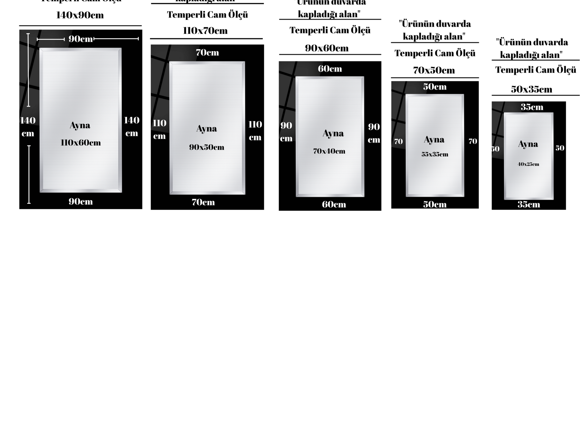 Ürünlerimiz, standart cama göre 10 kata kadar dayanıklı olan 4 mm kalınlığında temperli cam üzerine üretilir. Ortasında yer alan yüksek kaliteli bizoteli ayna(Eğimli kenarlı), net ve şık bir yansıma sağlar.