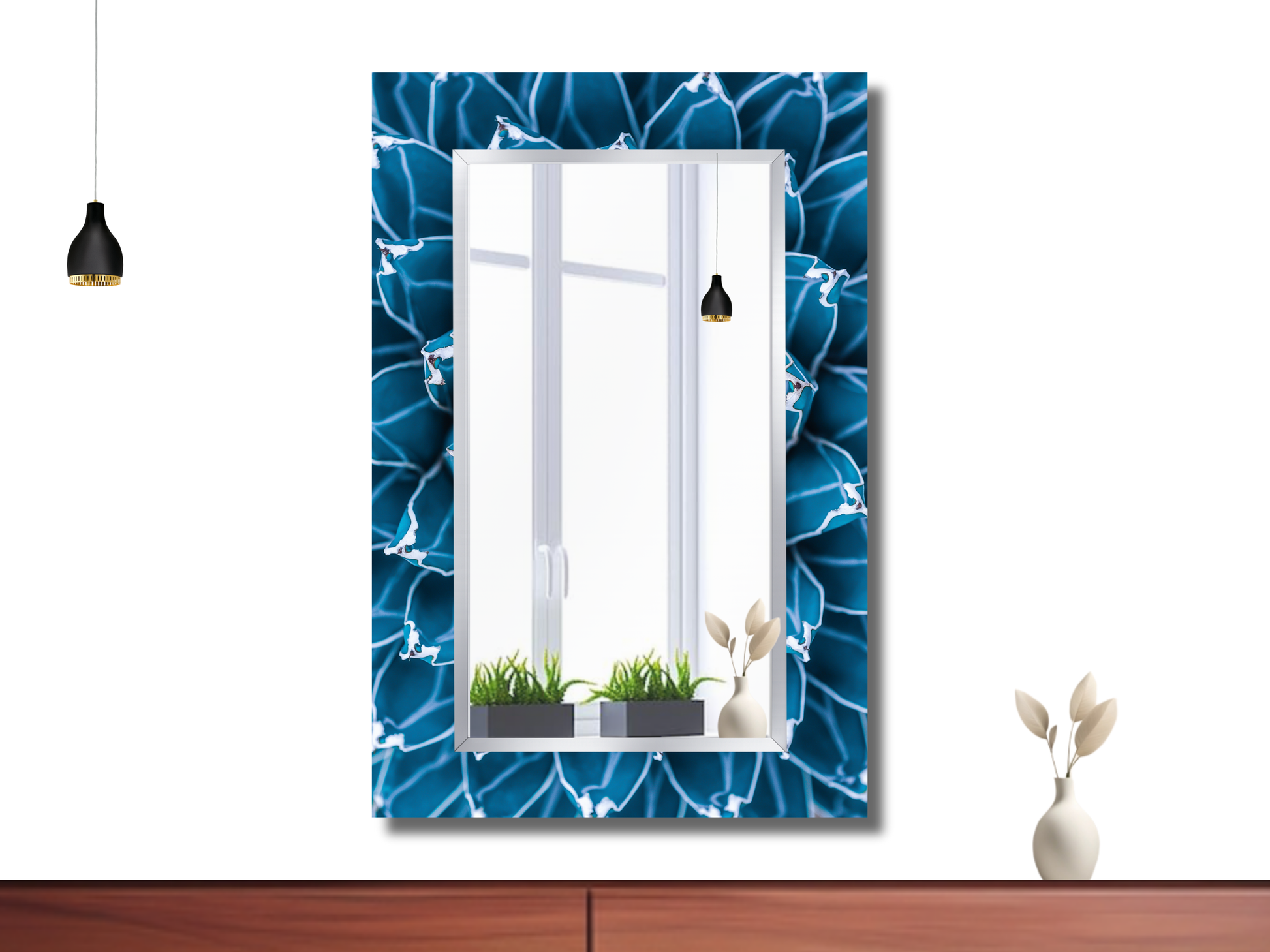 Mavi Kaktüs Desenli Ayna - Modern Tasarım Boy Aynası - Banyo Aynası - Yatak Odası Aynası