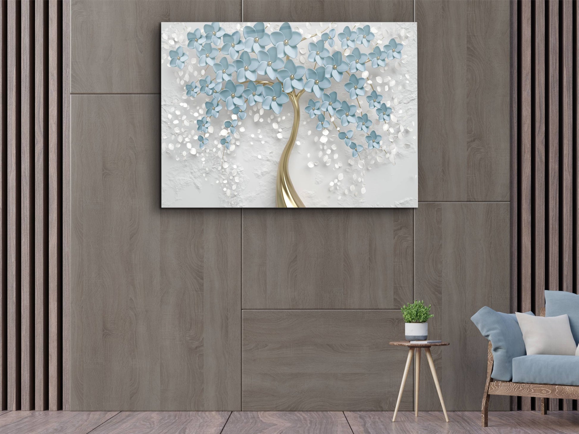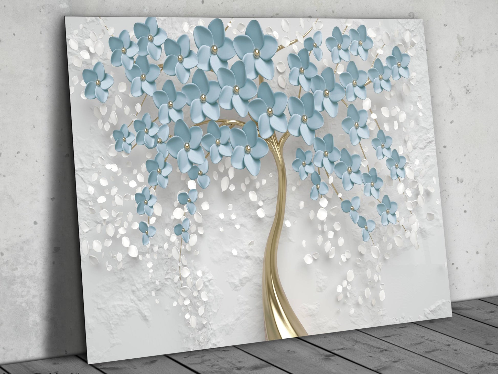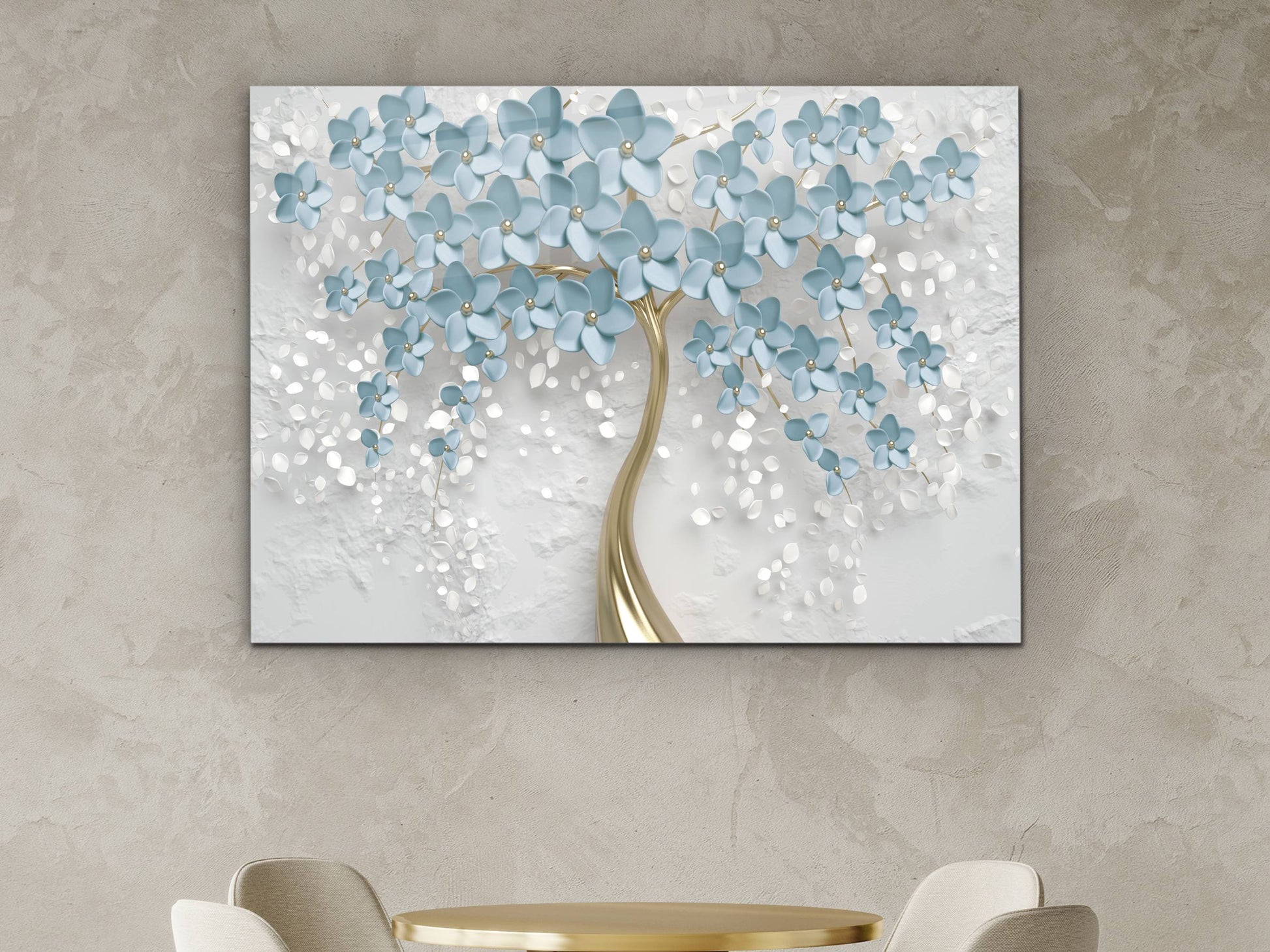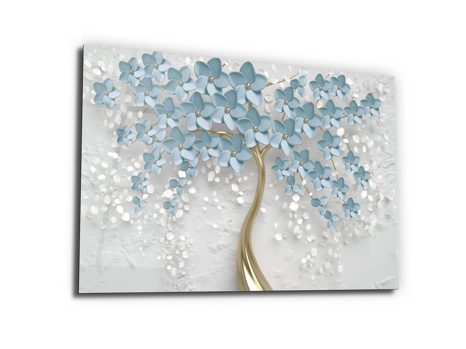 Mavi Soyut Ağaç Cam Tablo - Dekoratif Tablo
