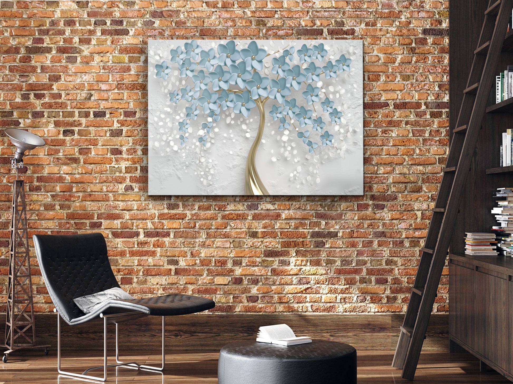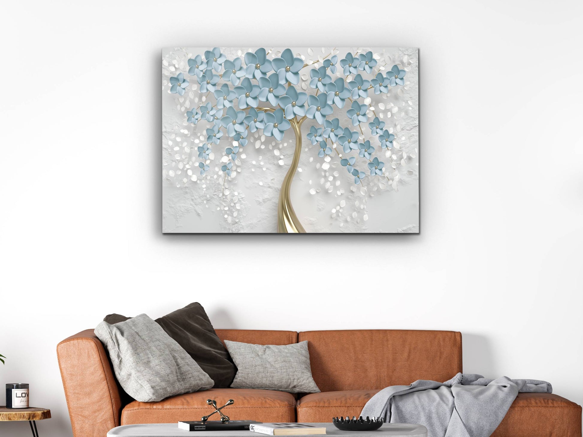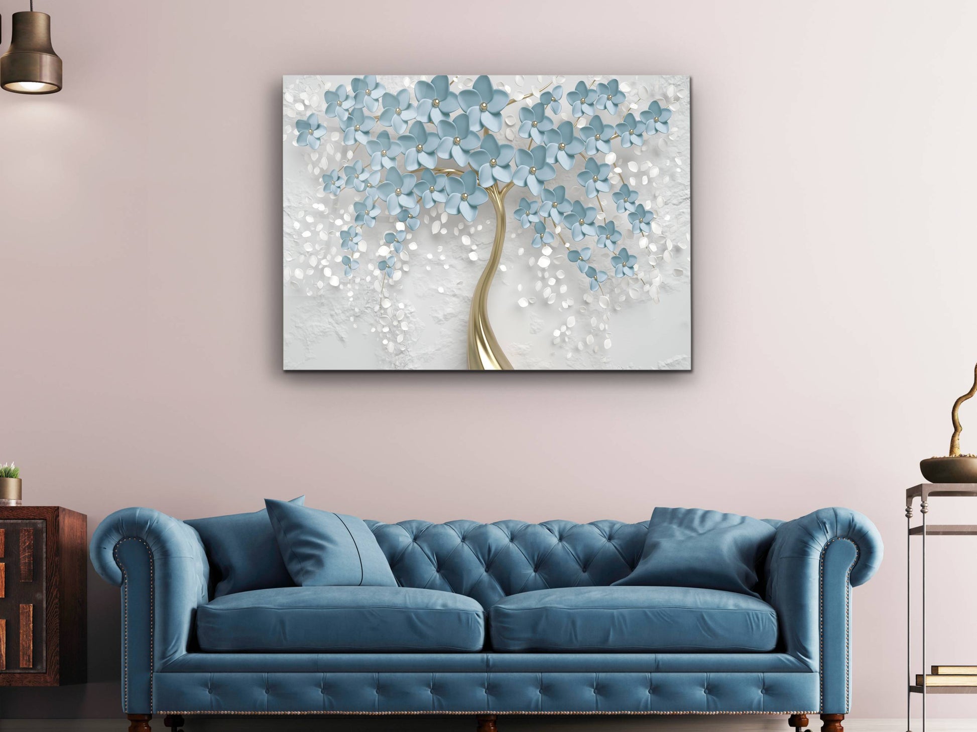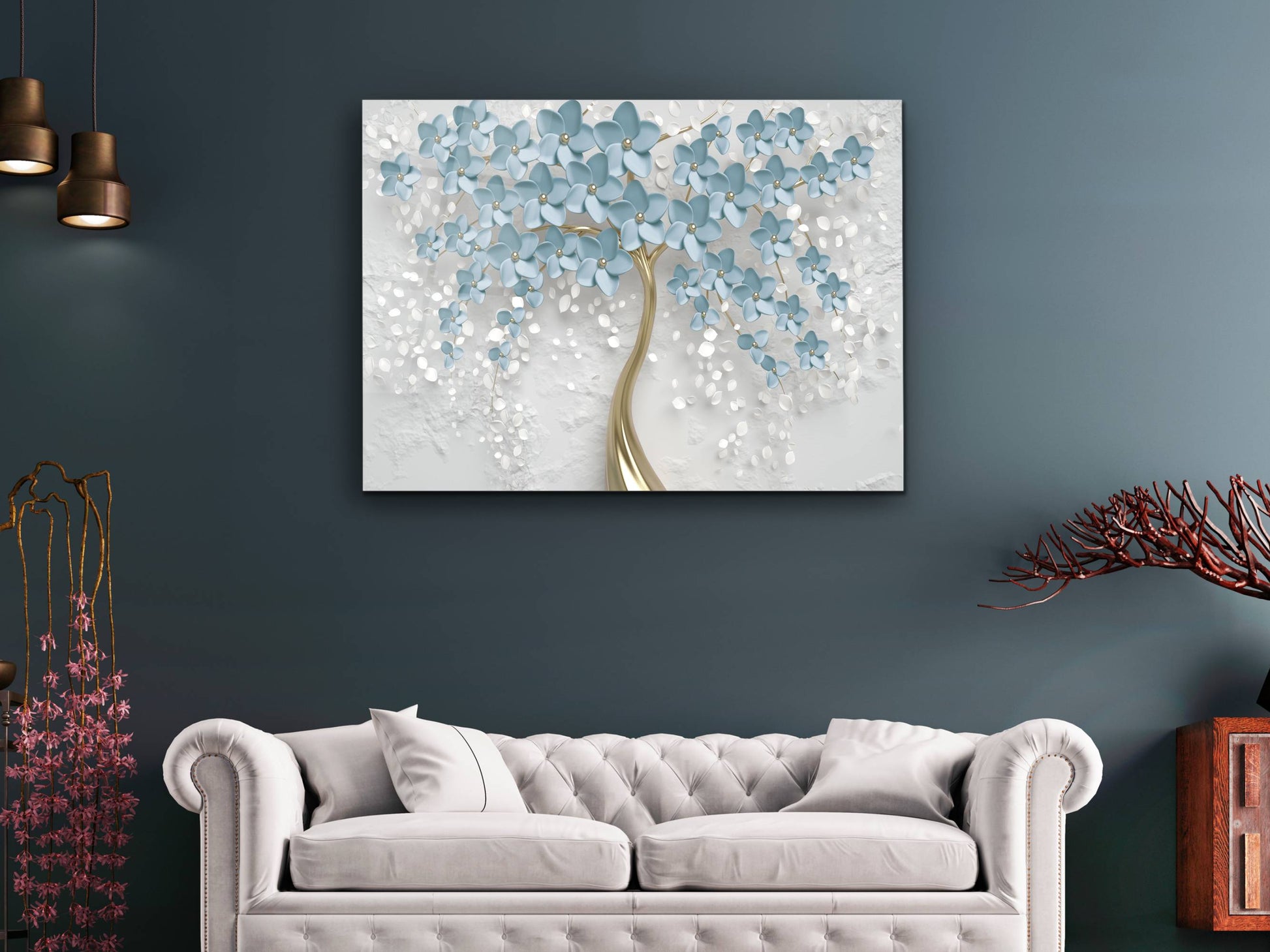 Mavi Soyut Ağaç Cam Tablo - Dekoratif Tablo