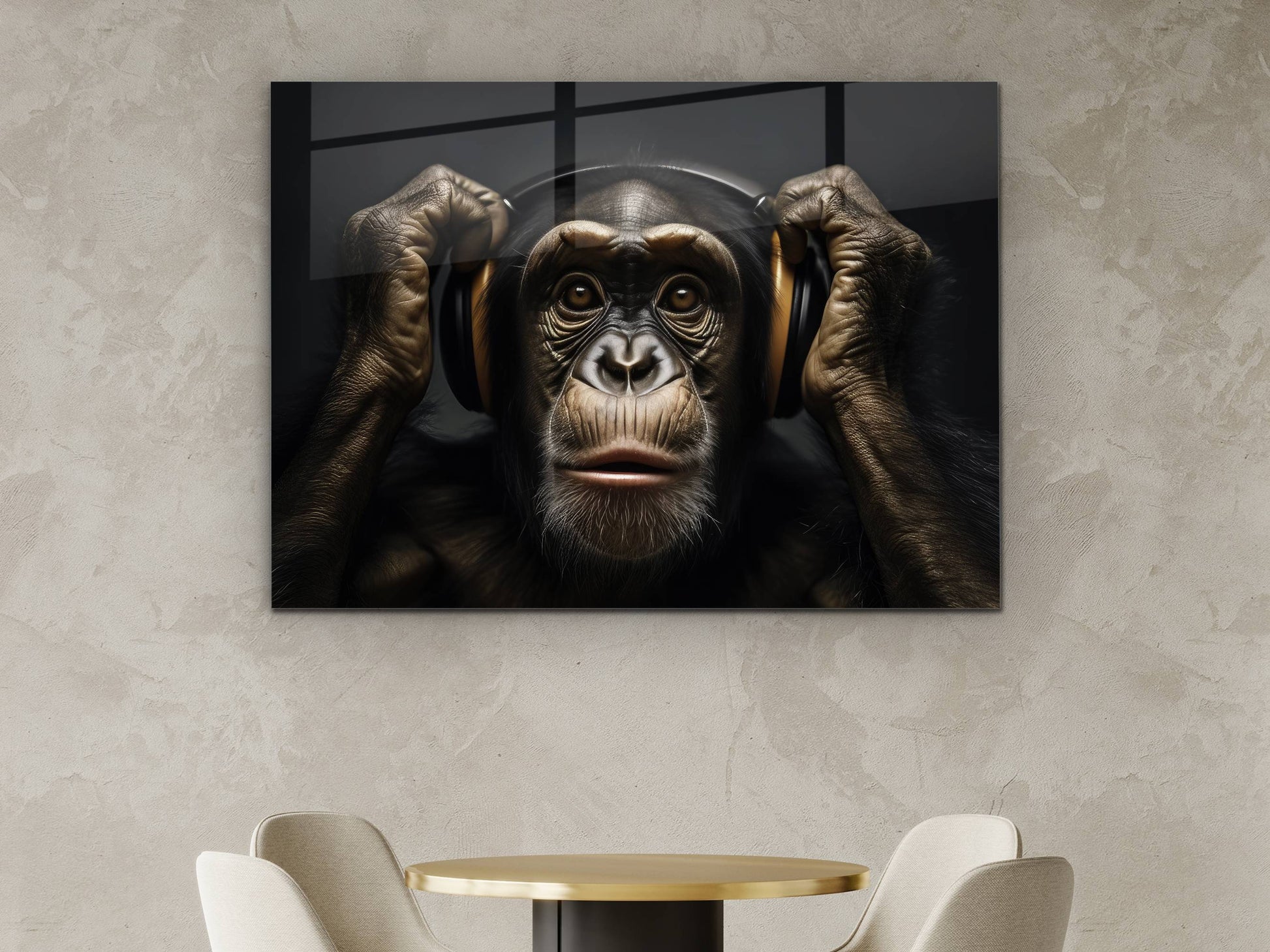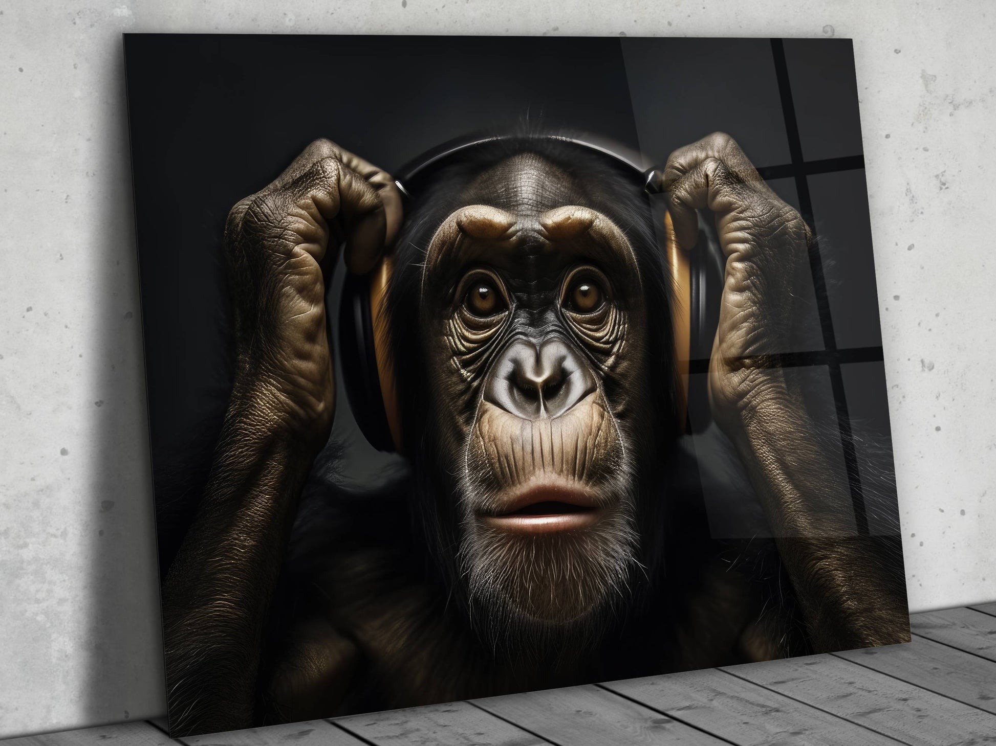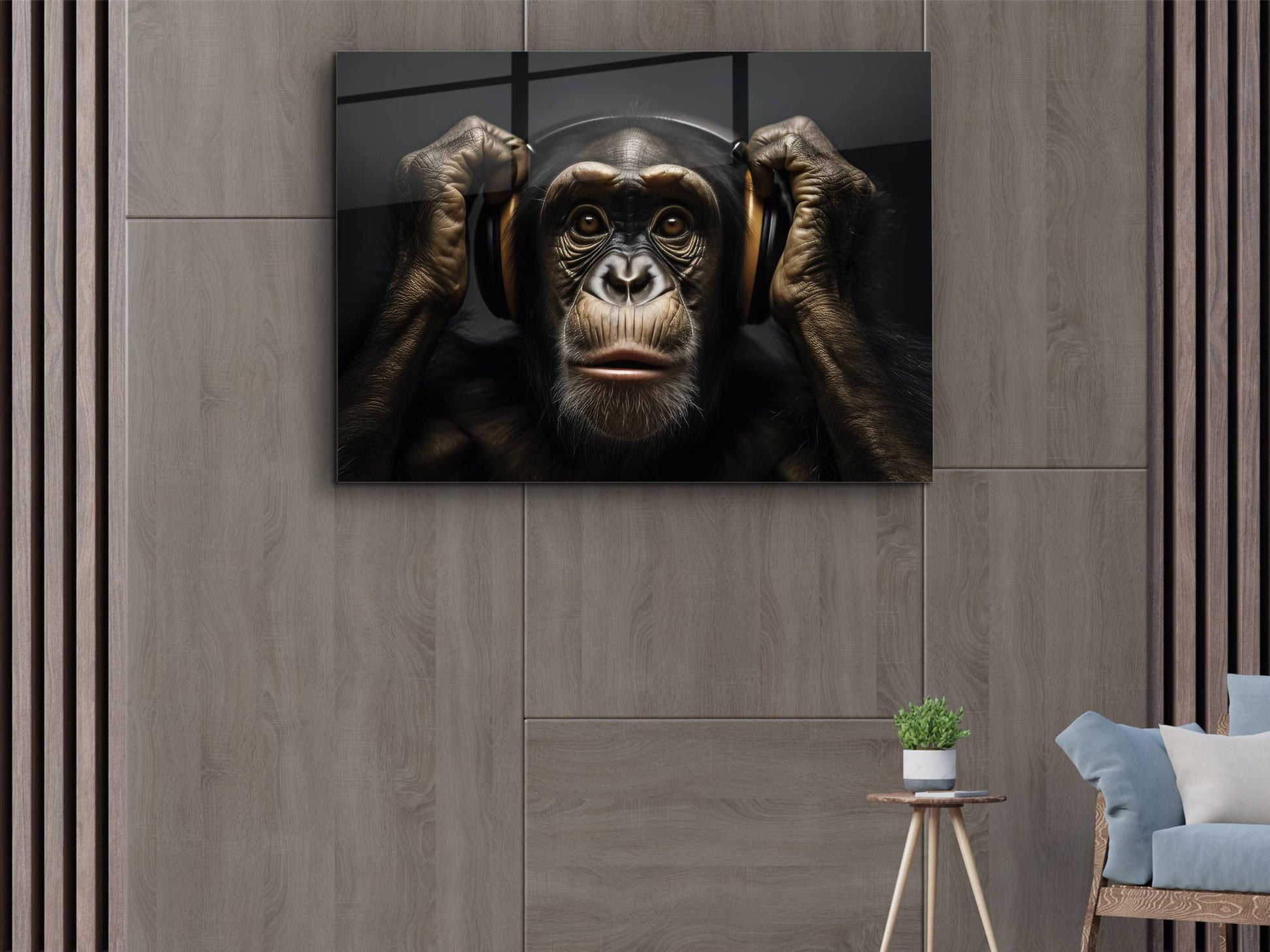 Maymun Cam Tablo – Hayvan Duvar Tablosu - Ev Ofis Dekoru