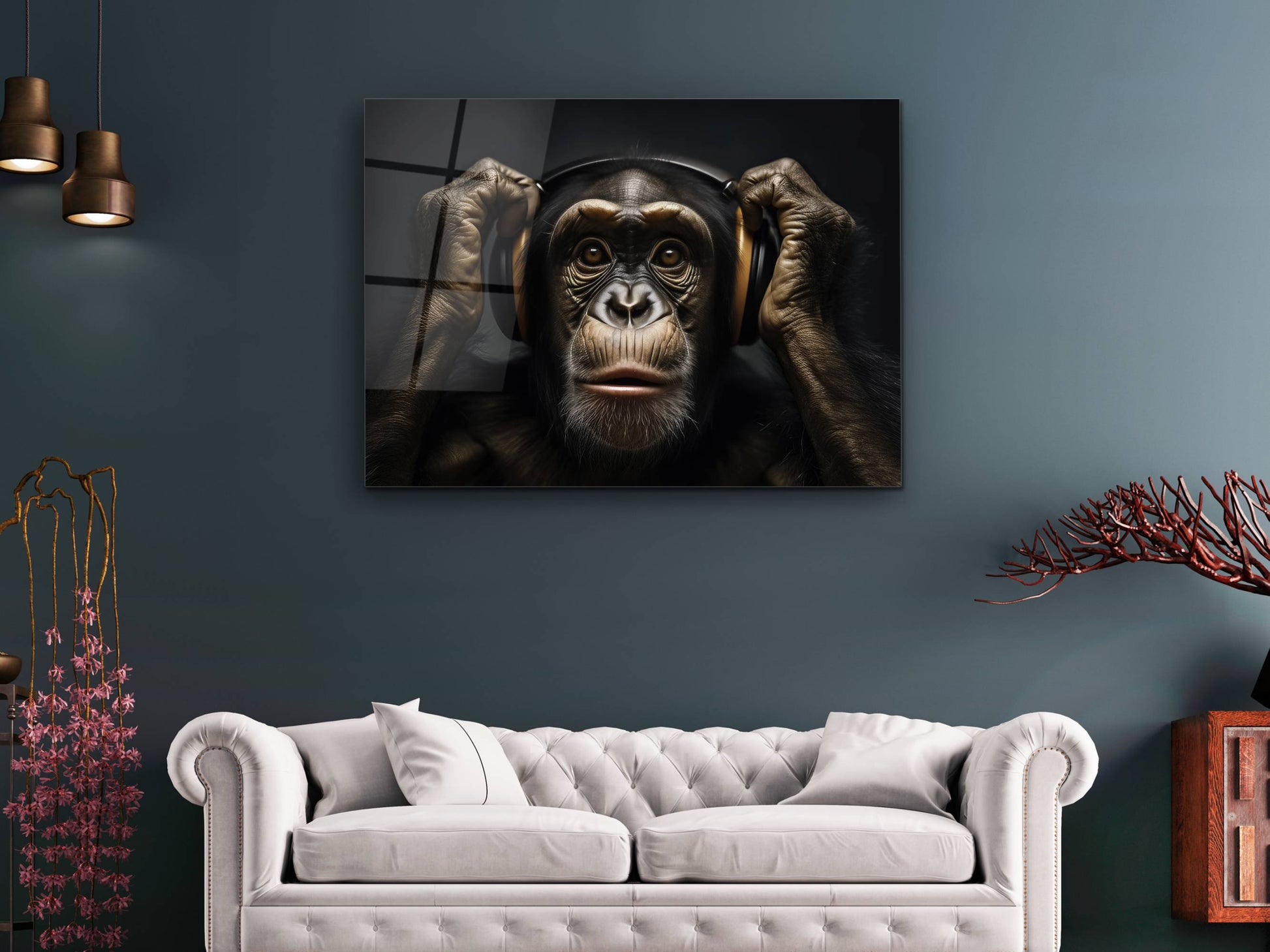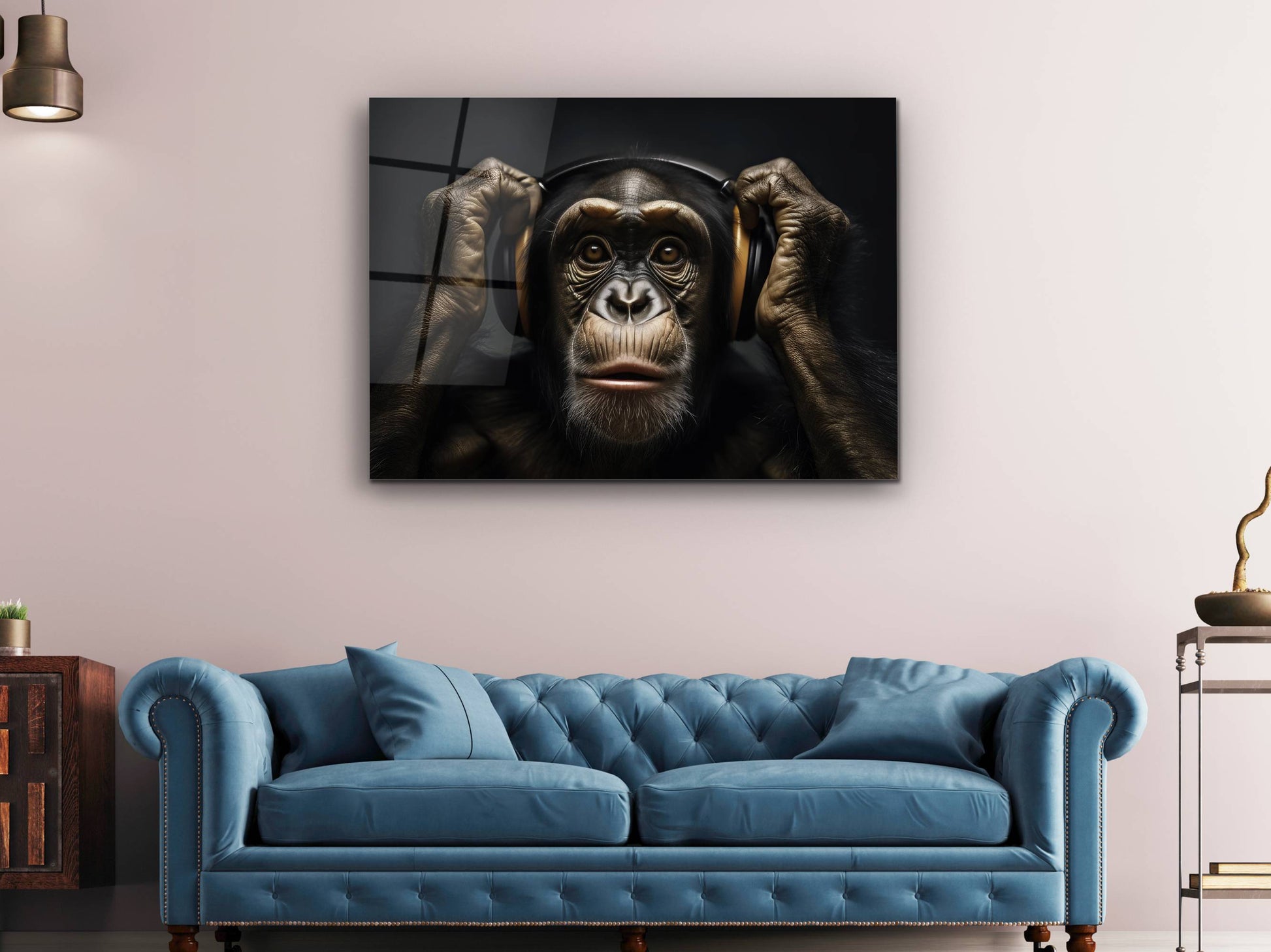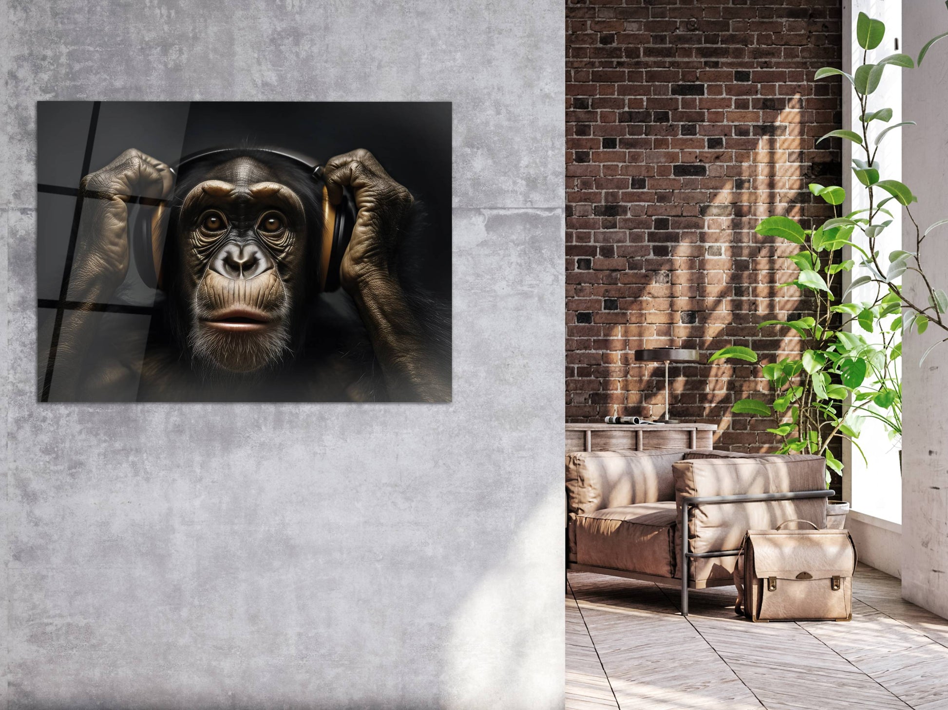 Maymun Cam Tablo – Hayvan Duvar Tablosu - Ev Ofis Dekoru