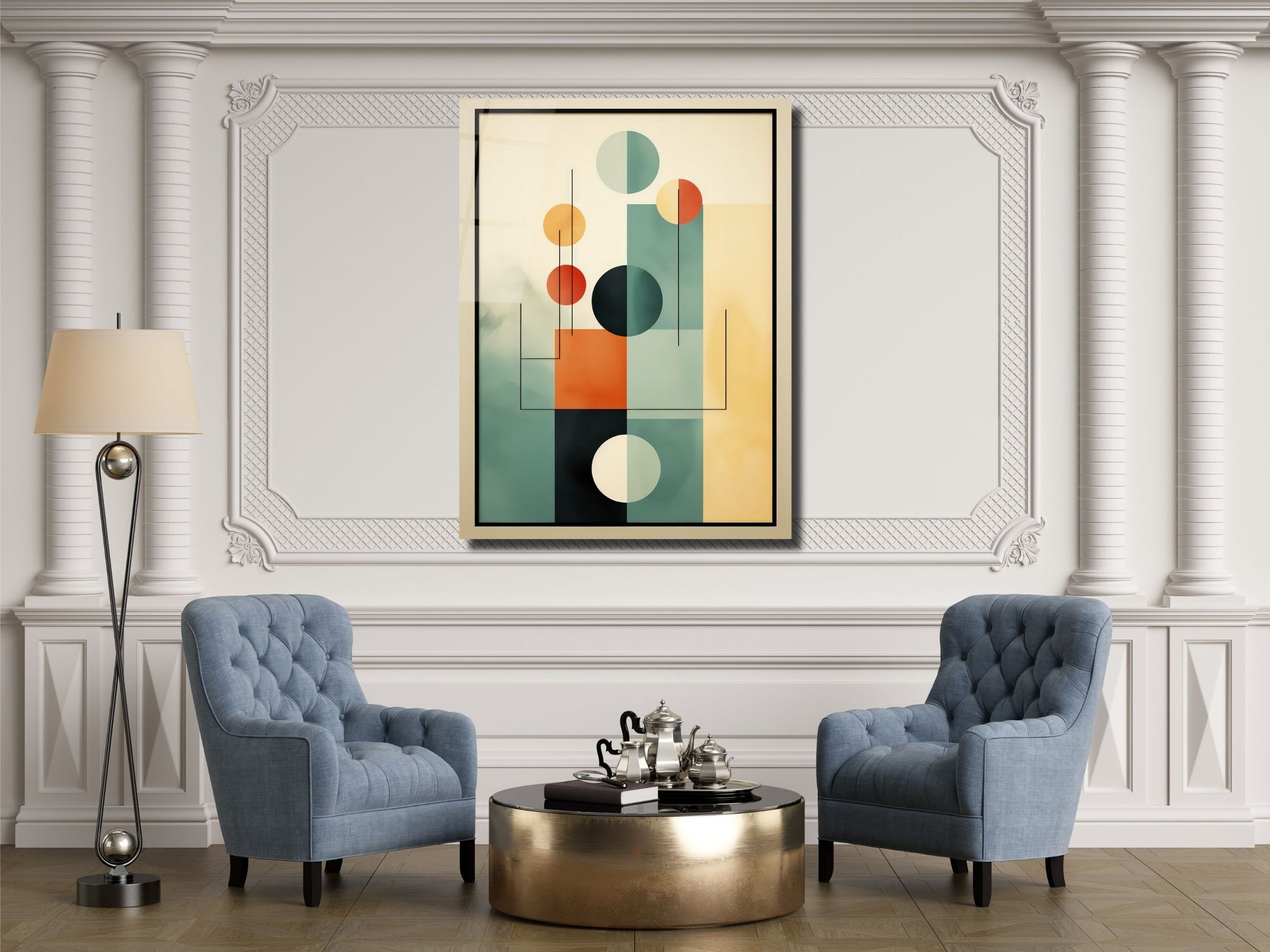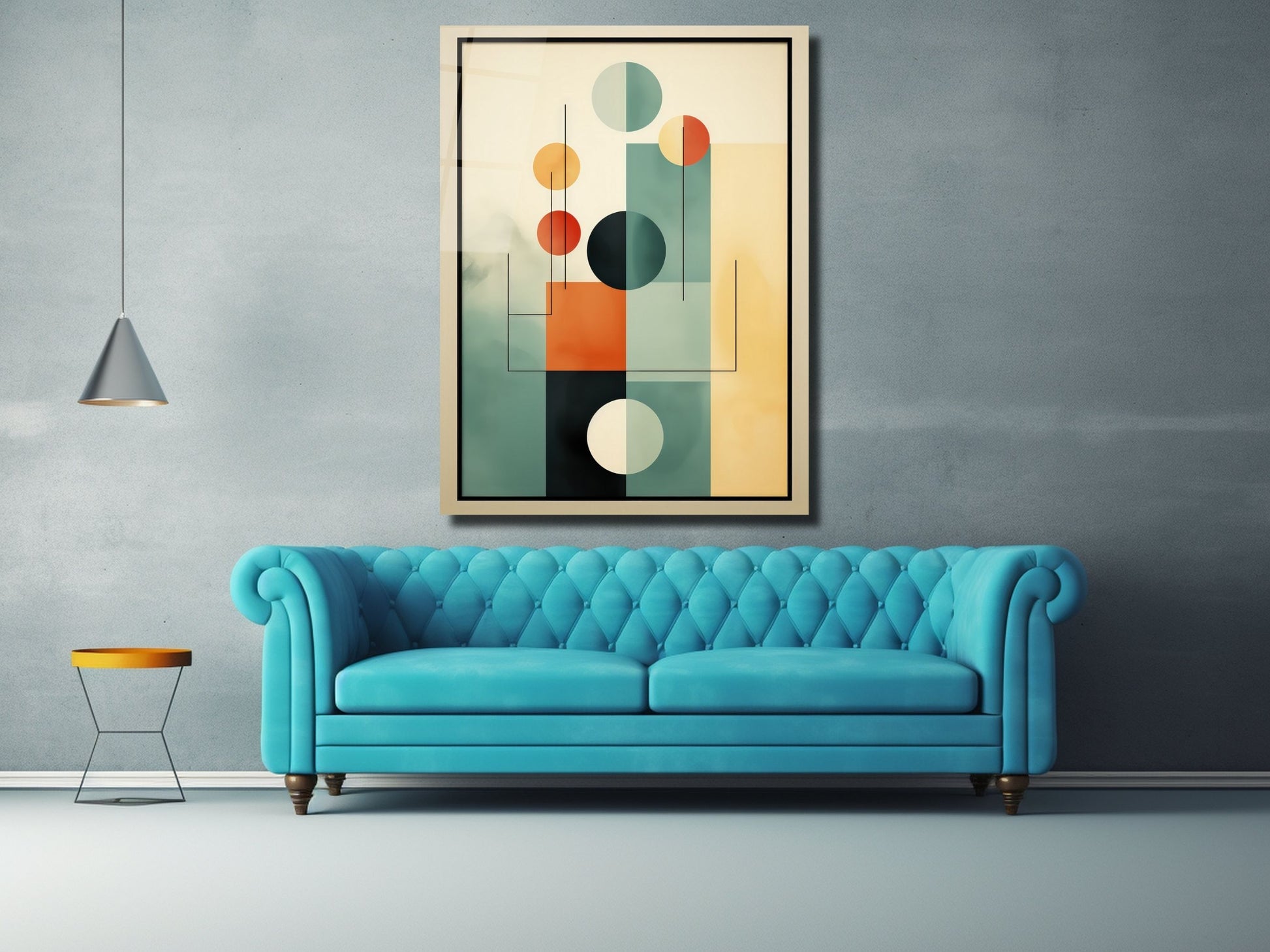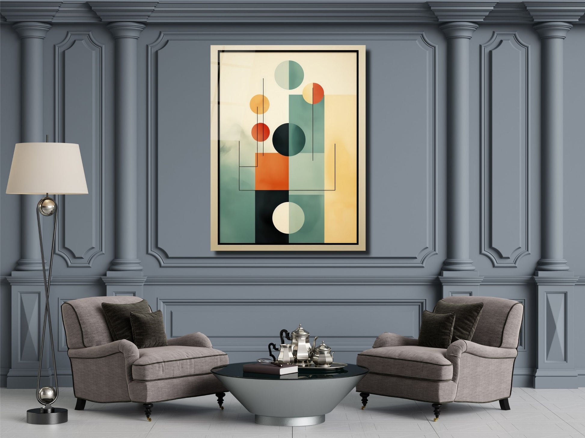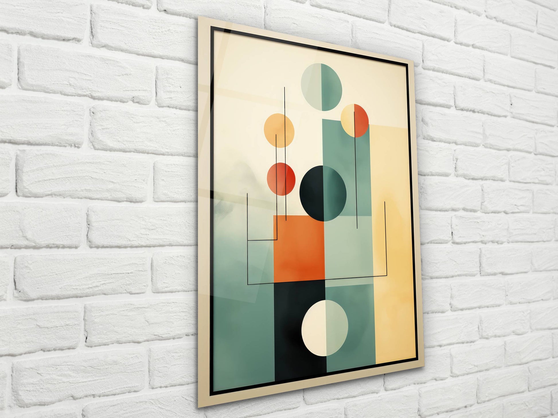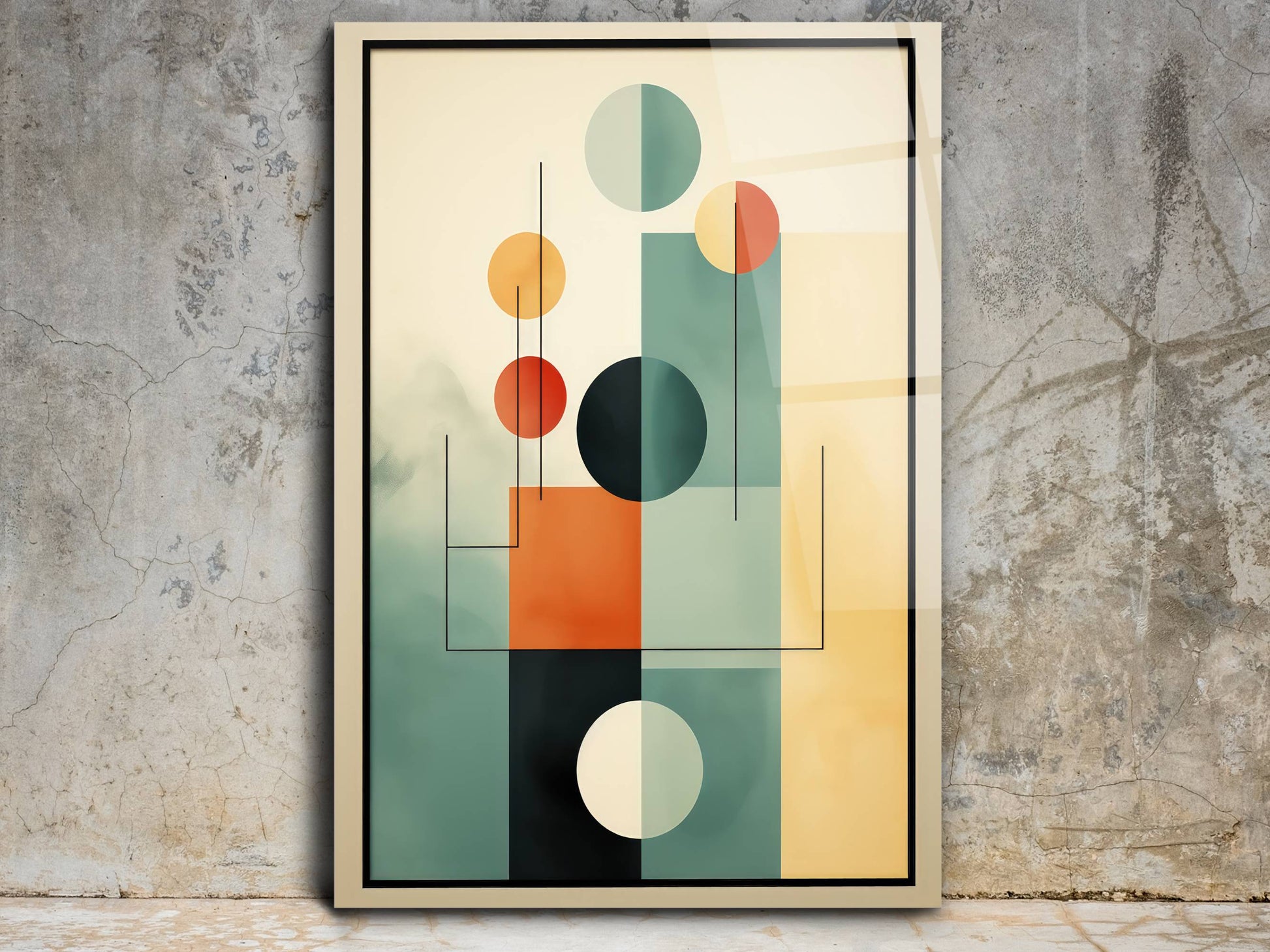 Modern Geometrik Cam Tablo – Renkli Soyut Duvar Tablosu