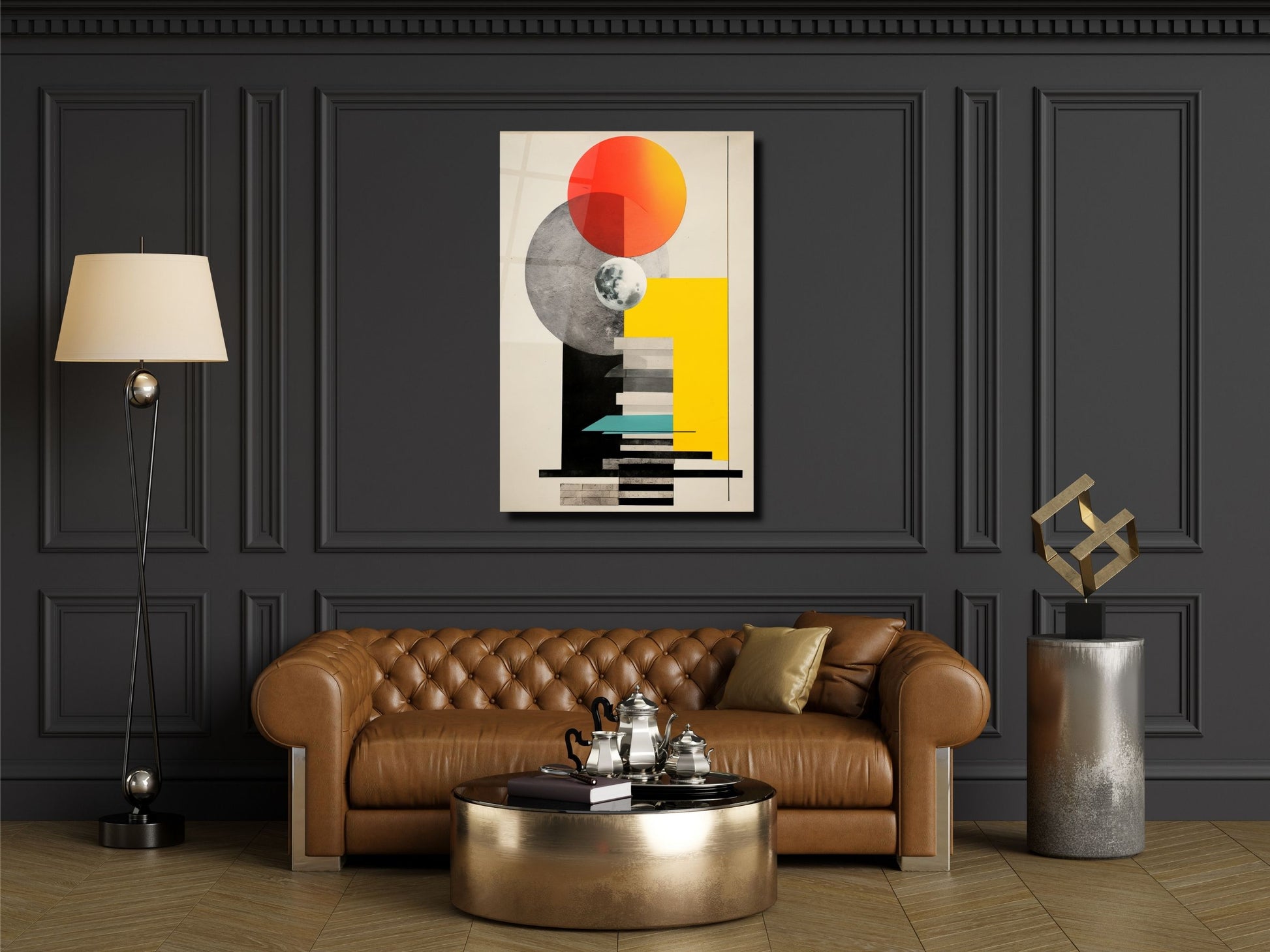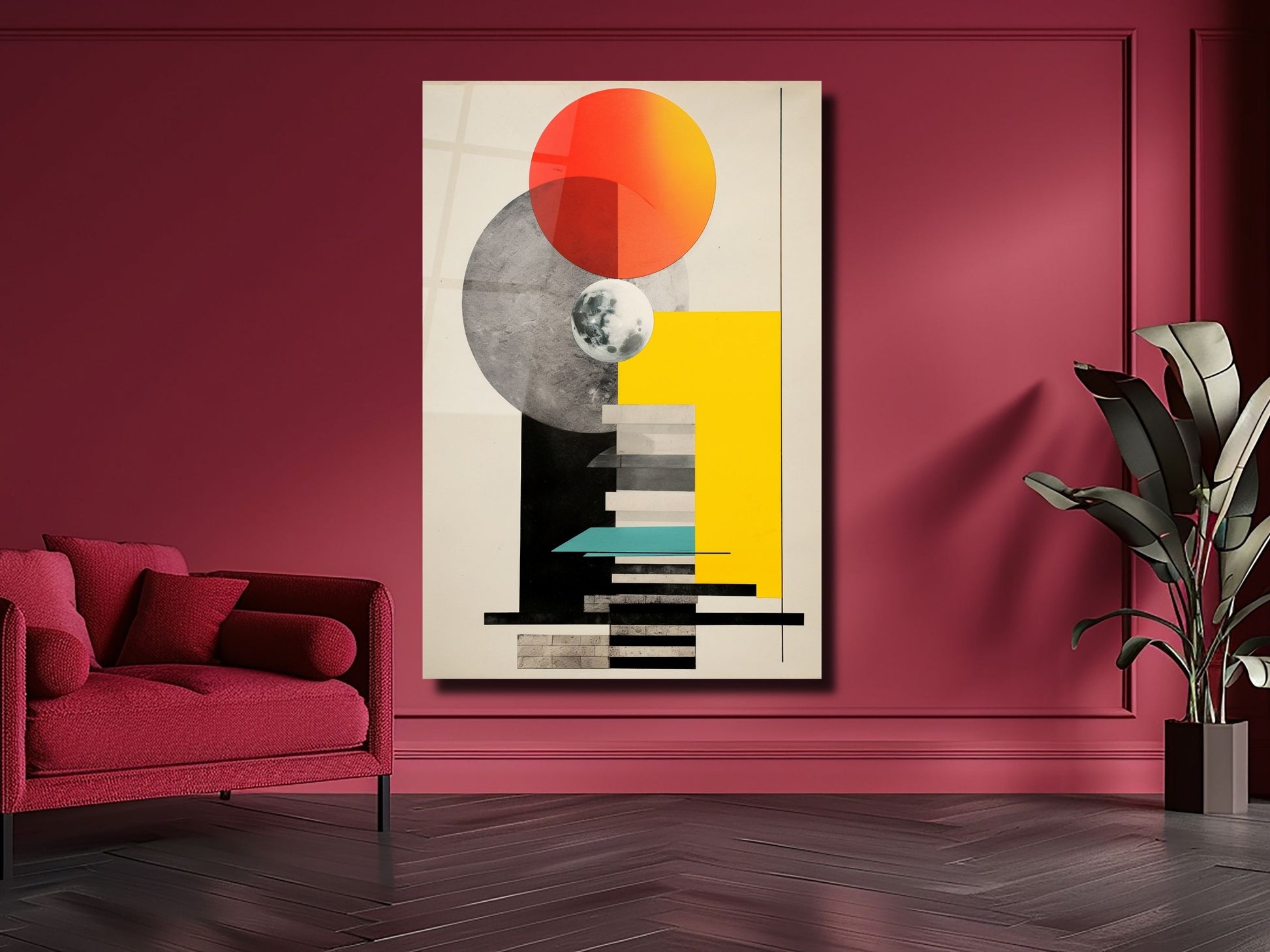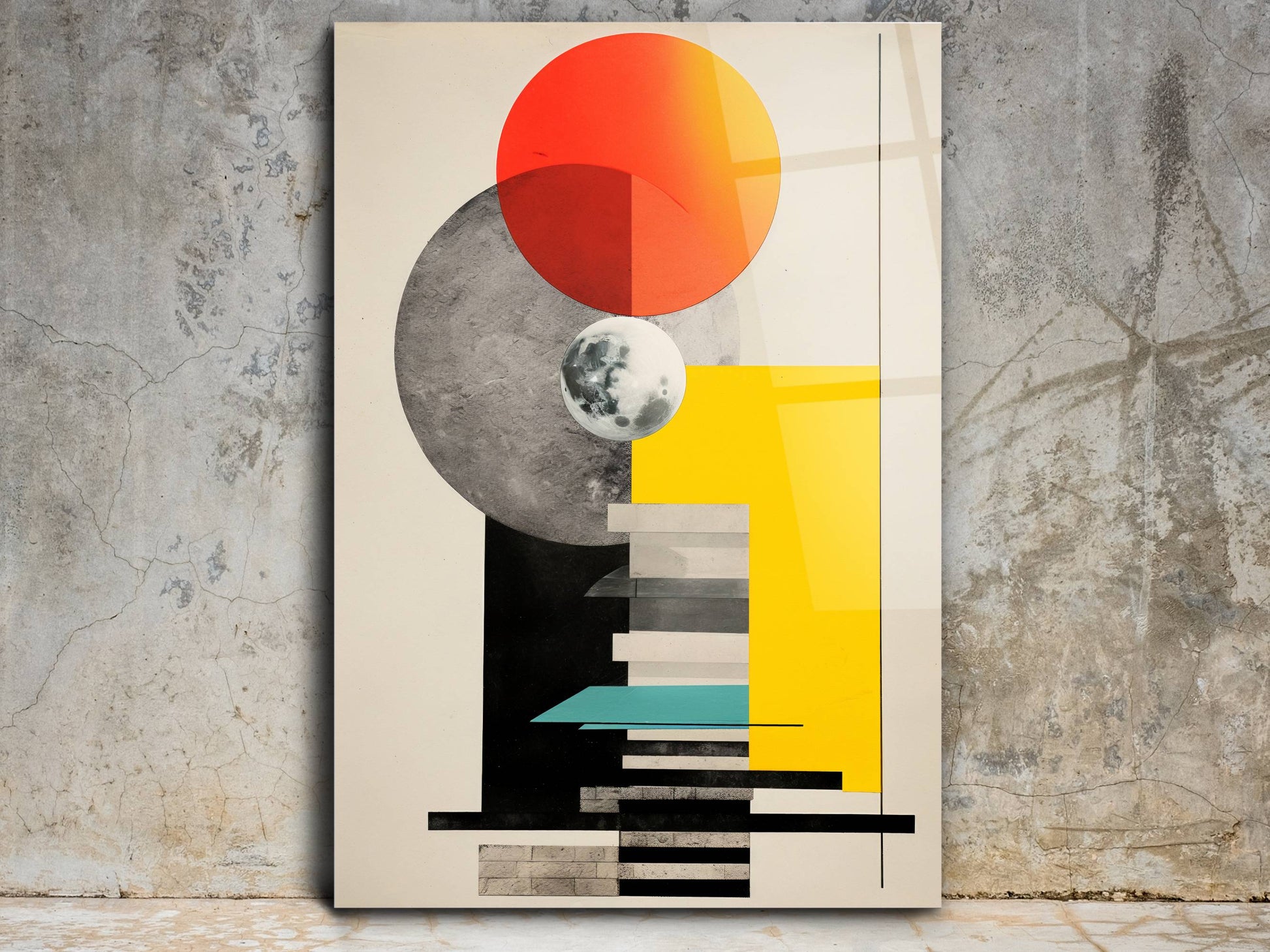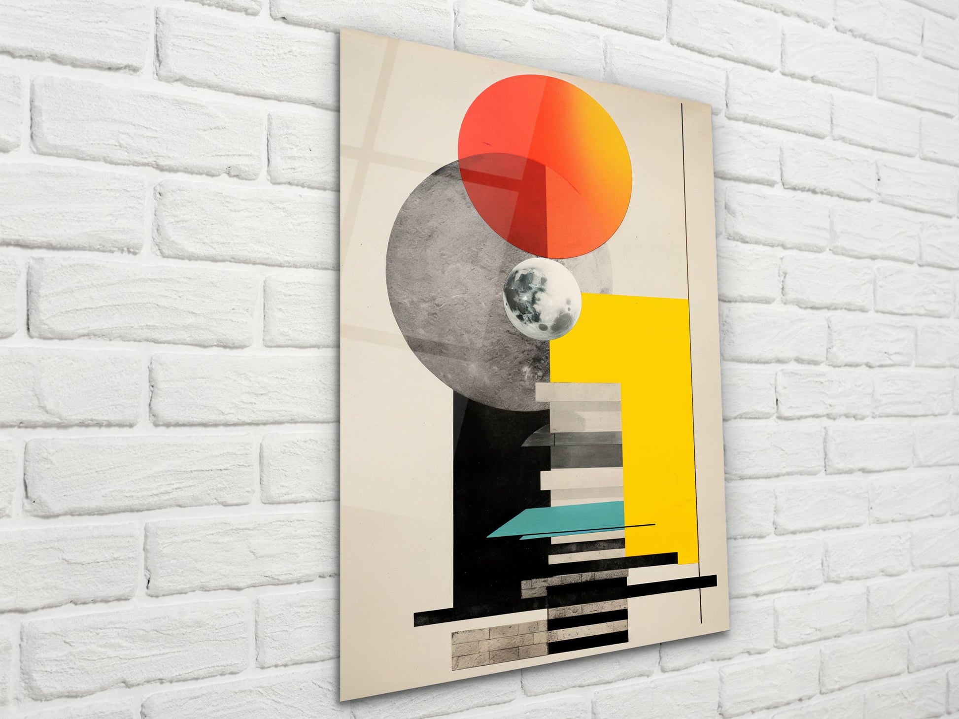Modern Geometrik Güneş ve Ay Cam Tablo – Soyut ve Sanatsal Ev Dekorasyonu