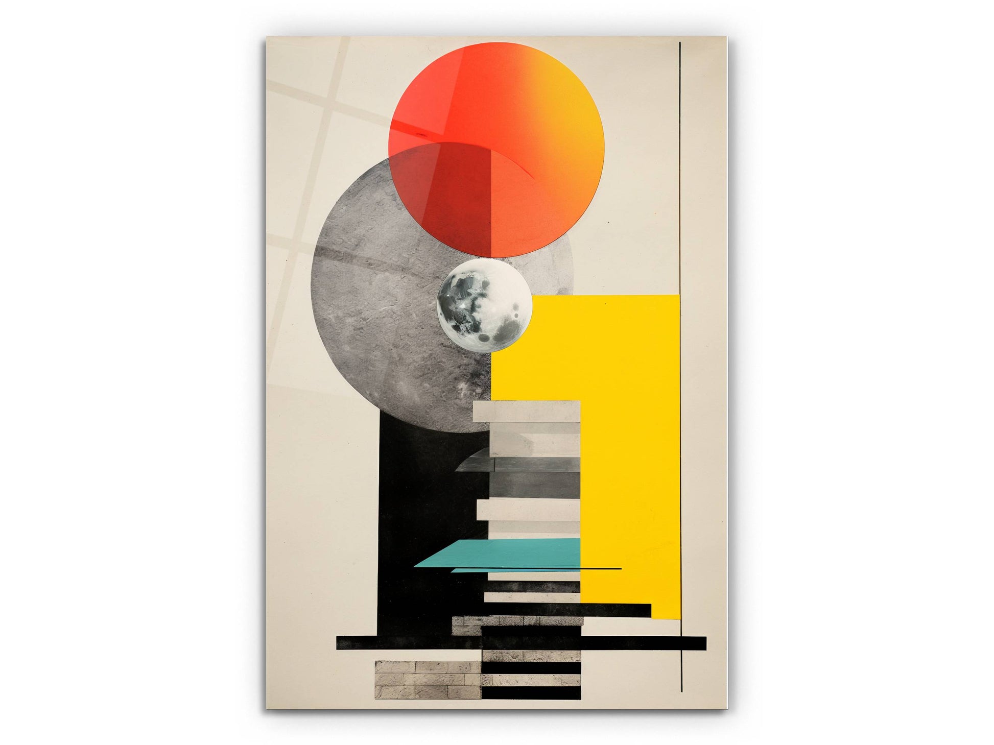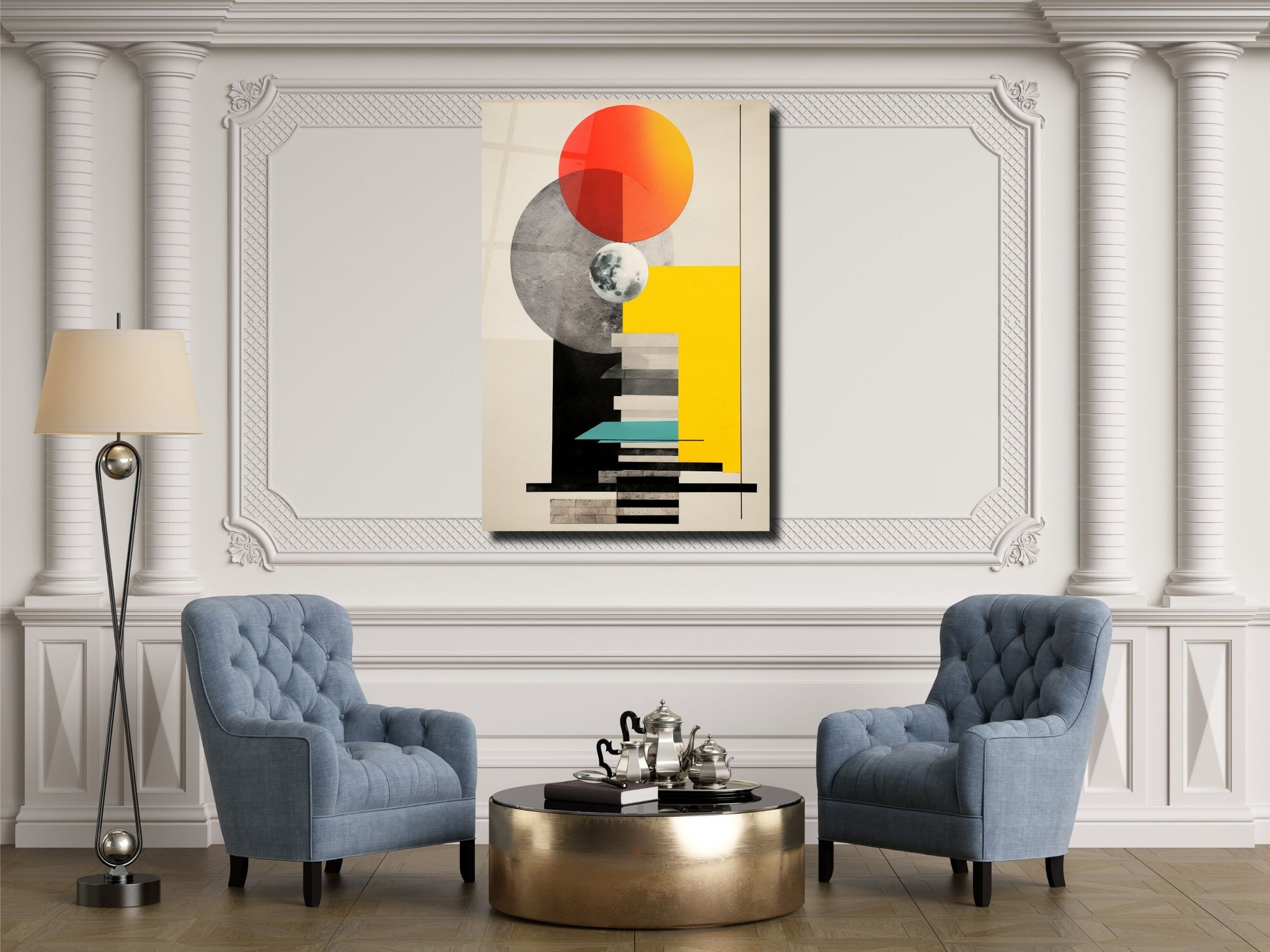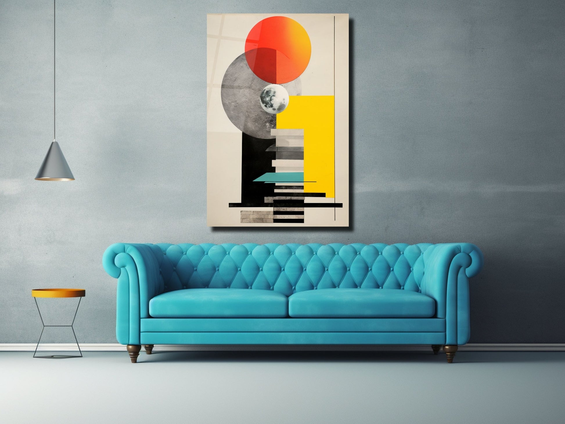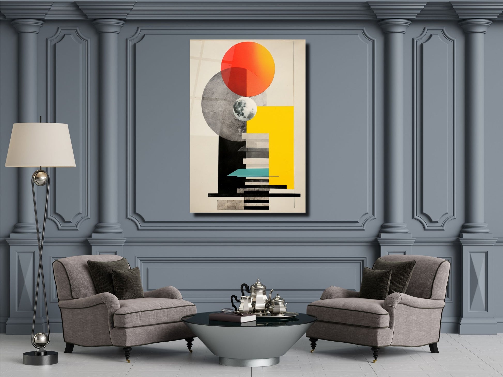Modern Geometrik Güneş ve Ay Cam Tablo – Soyut ve Sanatsal Ev Dekorasyonu