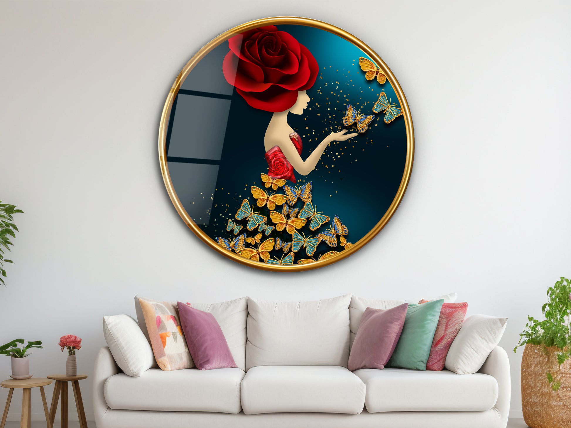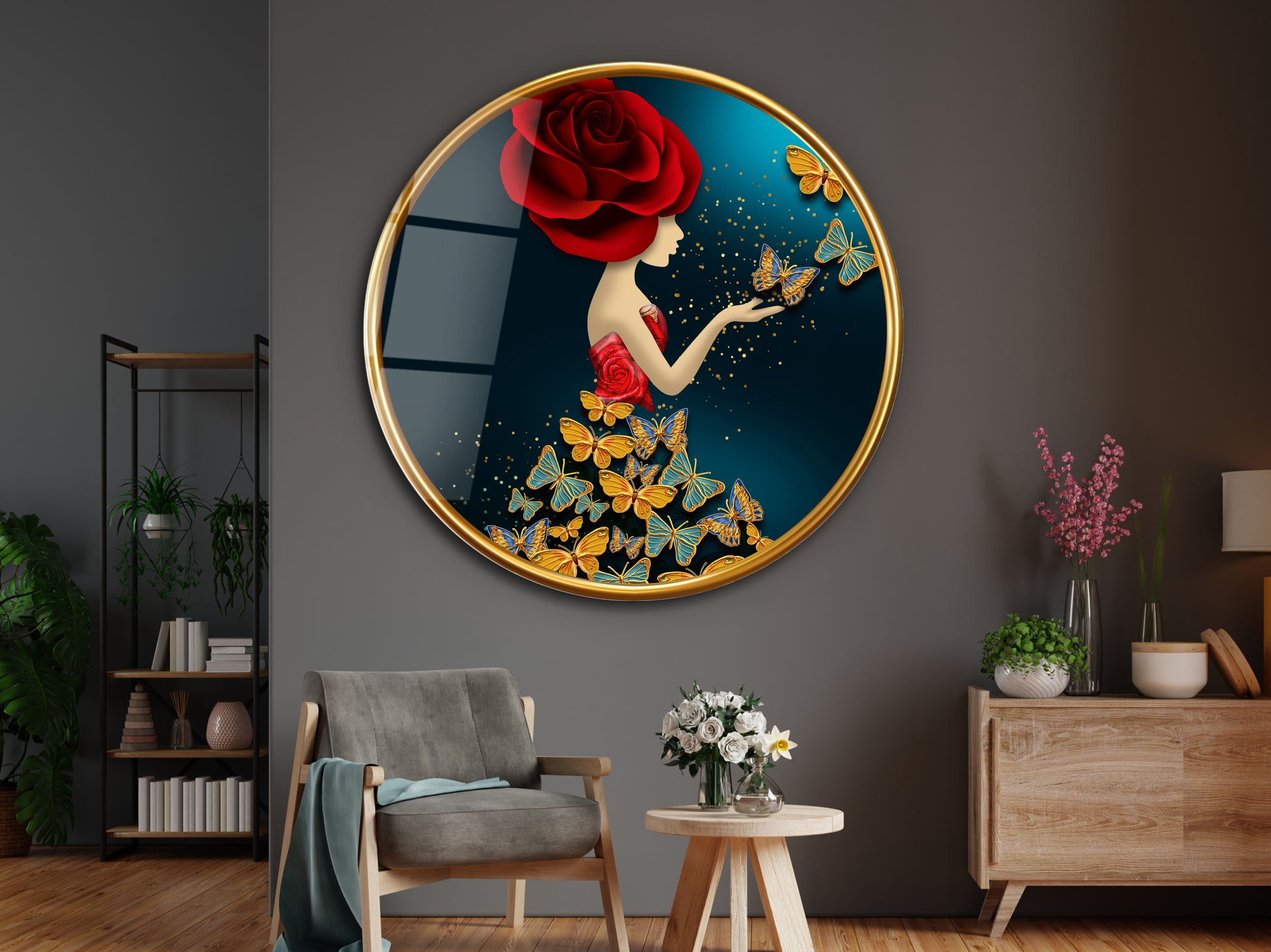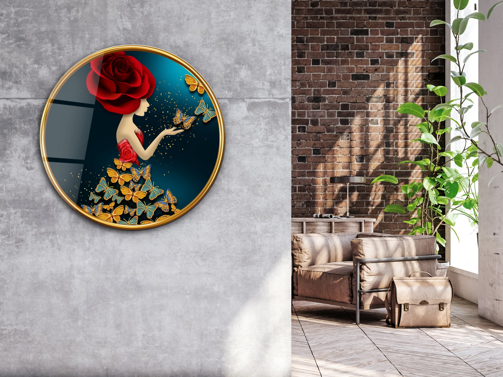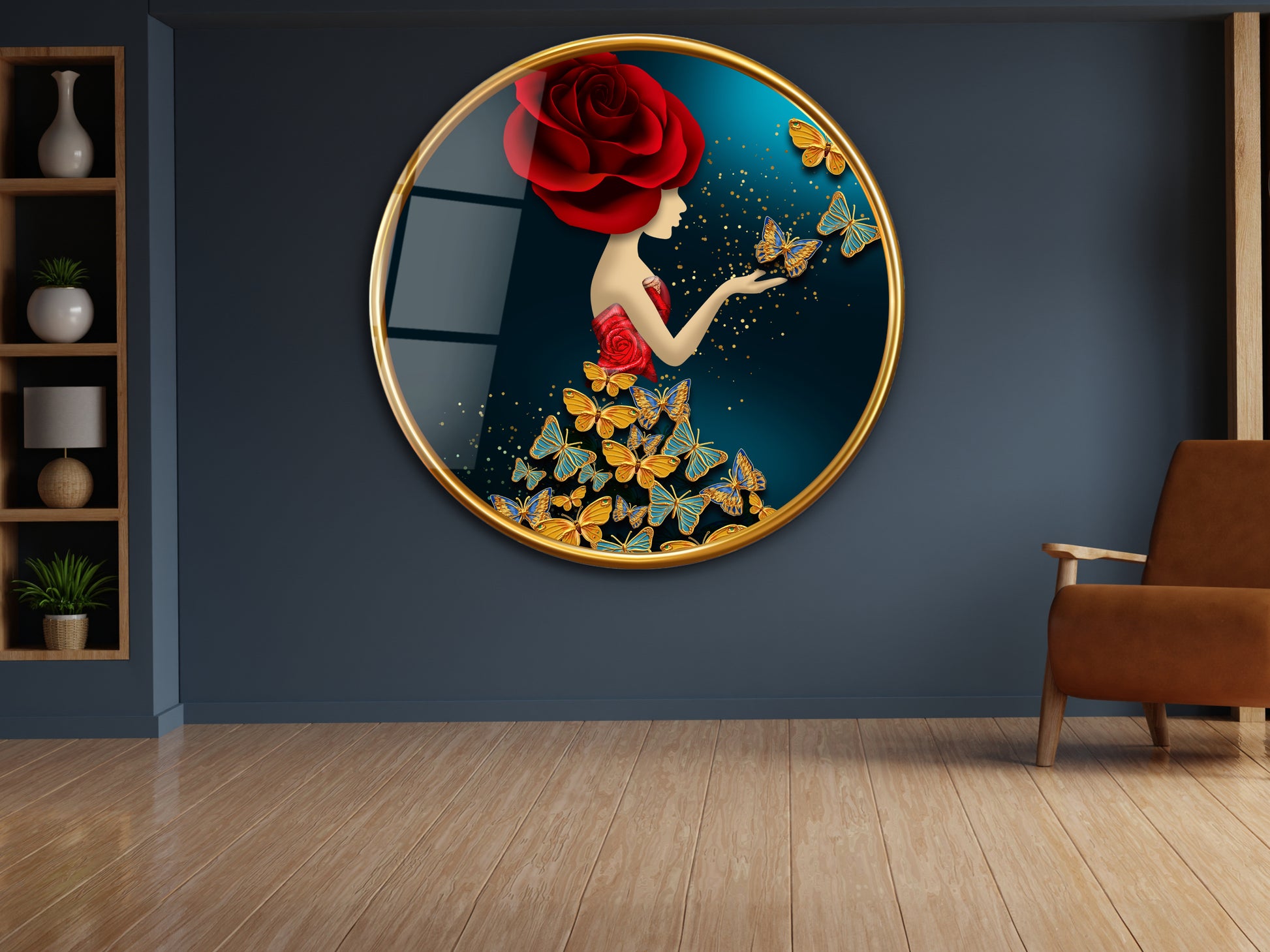 Modern Soyut Cam Tablo – Ev ve Ofis Duvar Dekoru Çiçek Kelebek Kadın